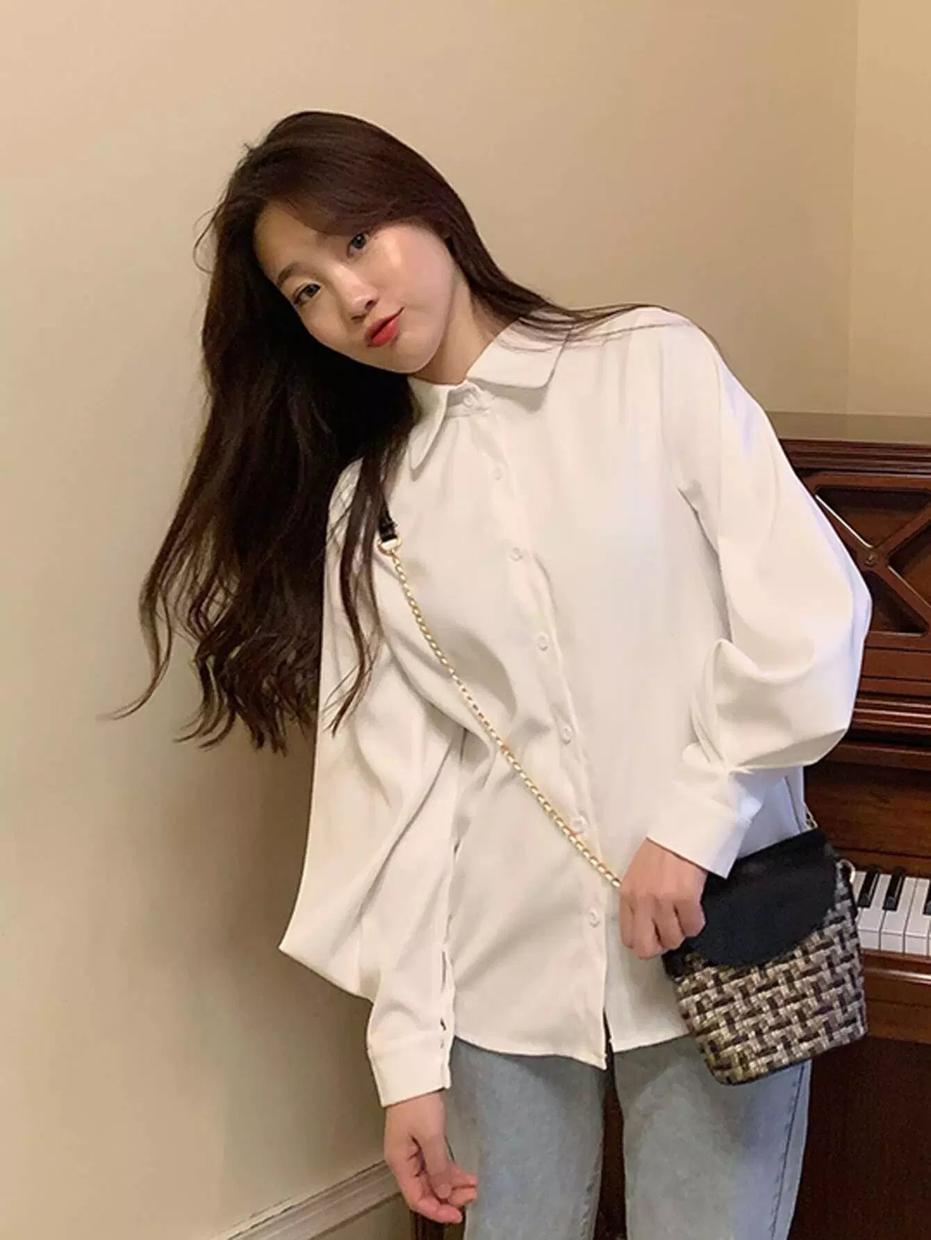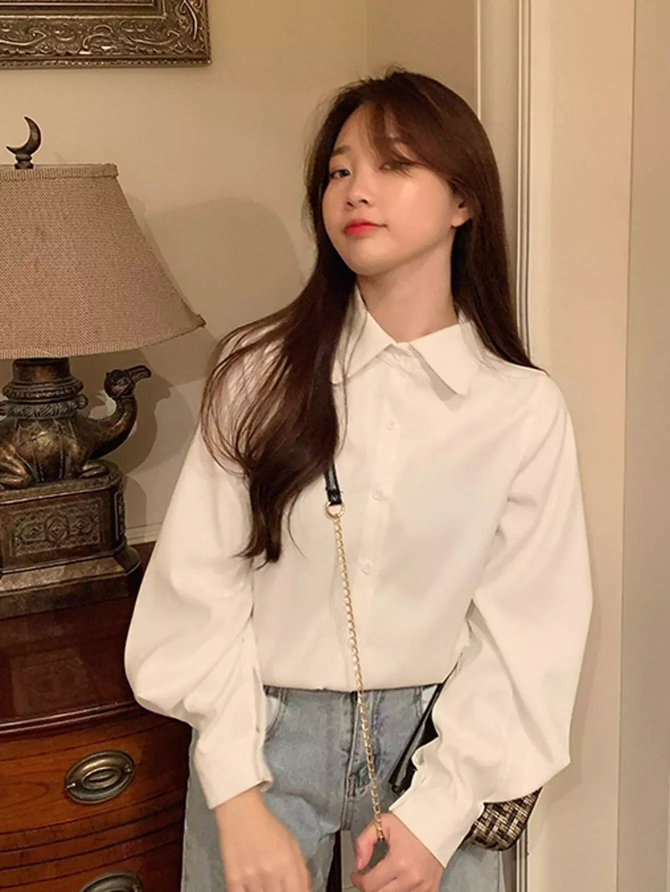 قميص سادة بأكمام أسقف وأزرار أمامية