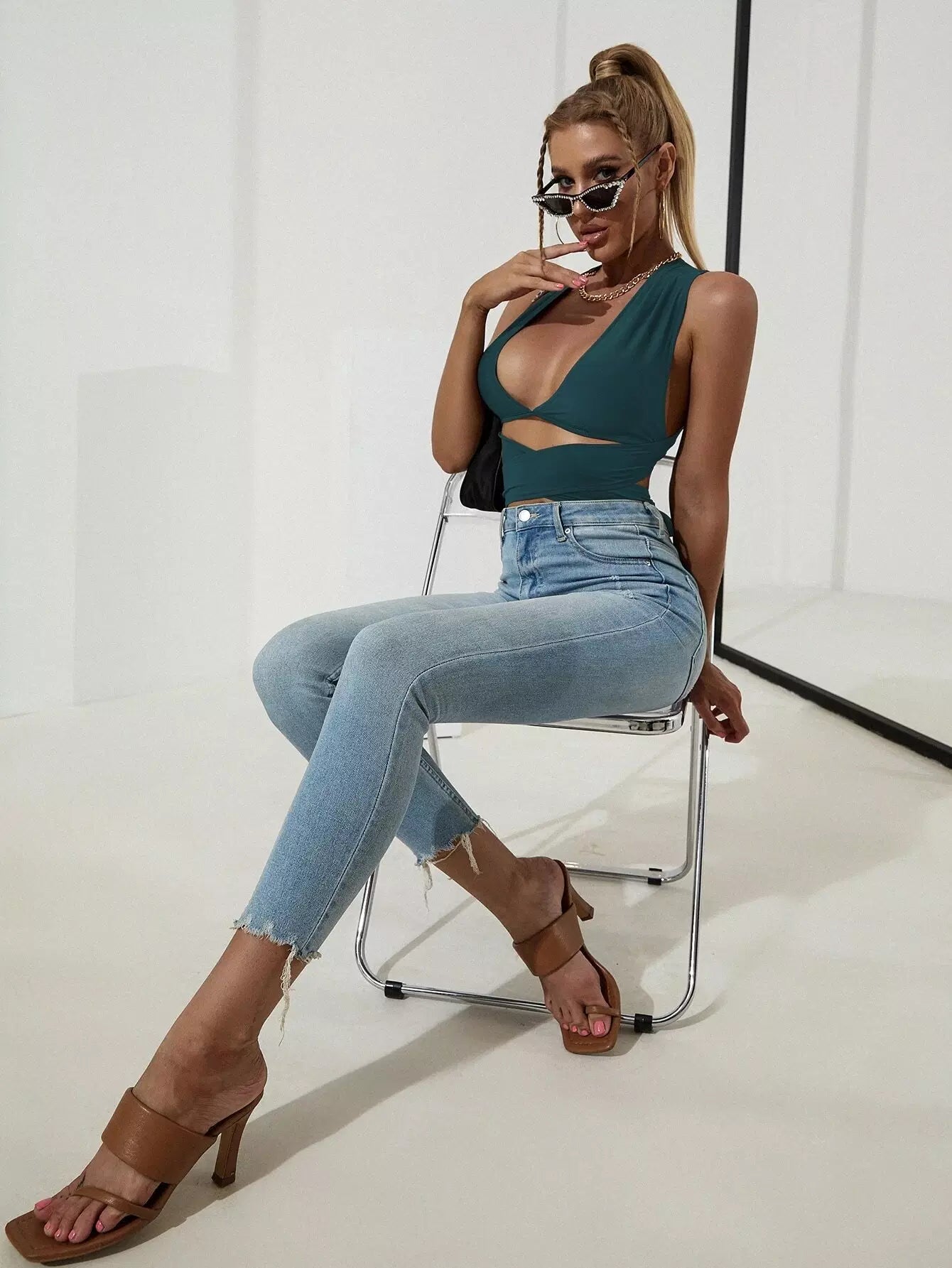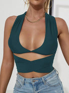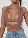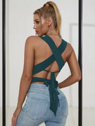 بلوزة سادة برباط على شكل صليب متقاطع على الظهر