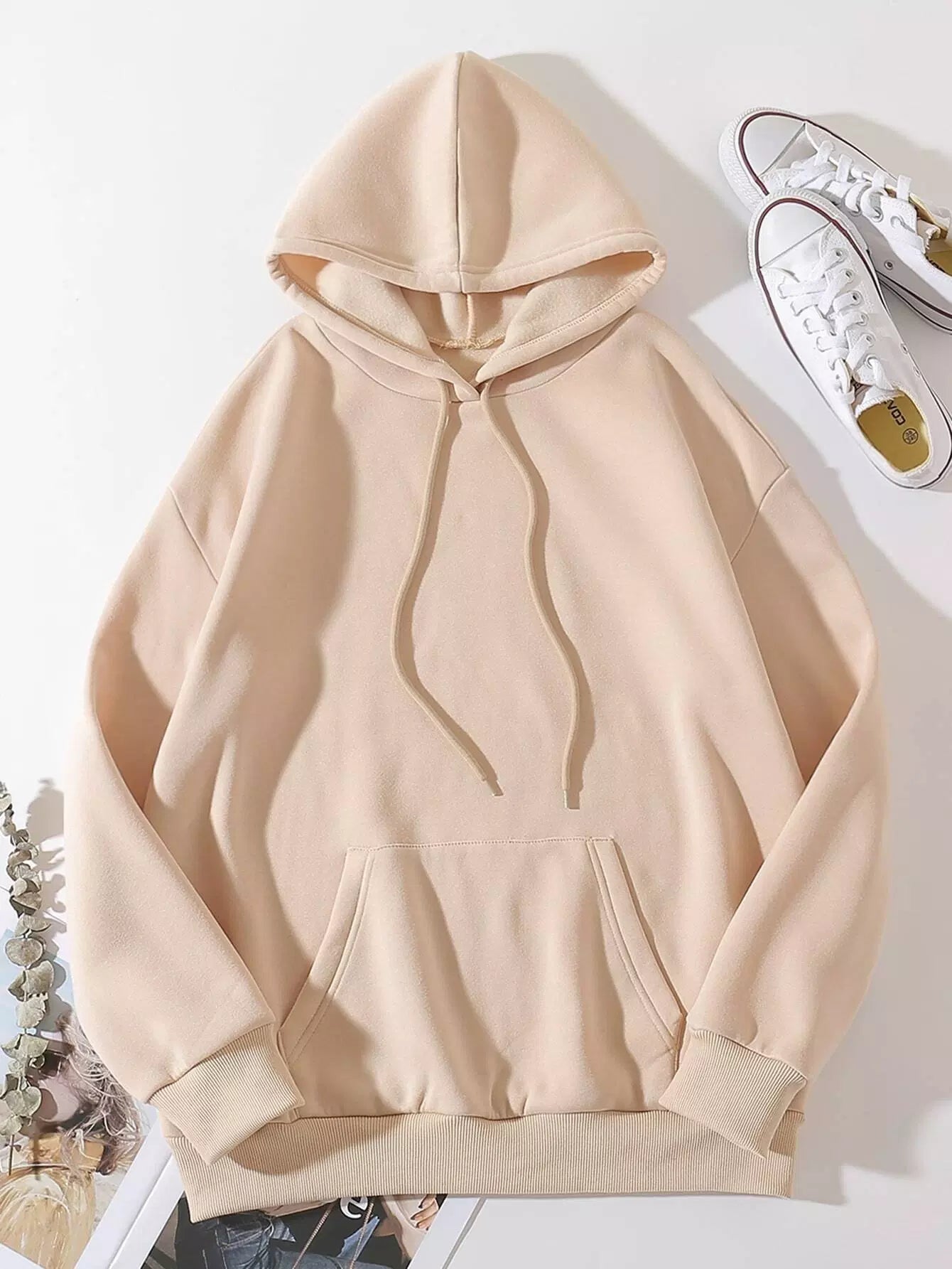 هودي سادة بكتف منسدل بجيب كنغرو سادة