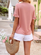 تي شيرت بأكمام مزينة بالكشكش