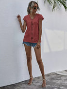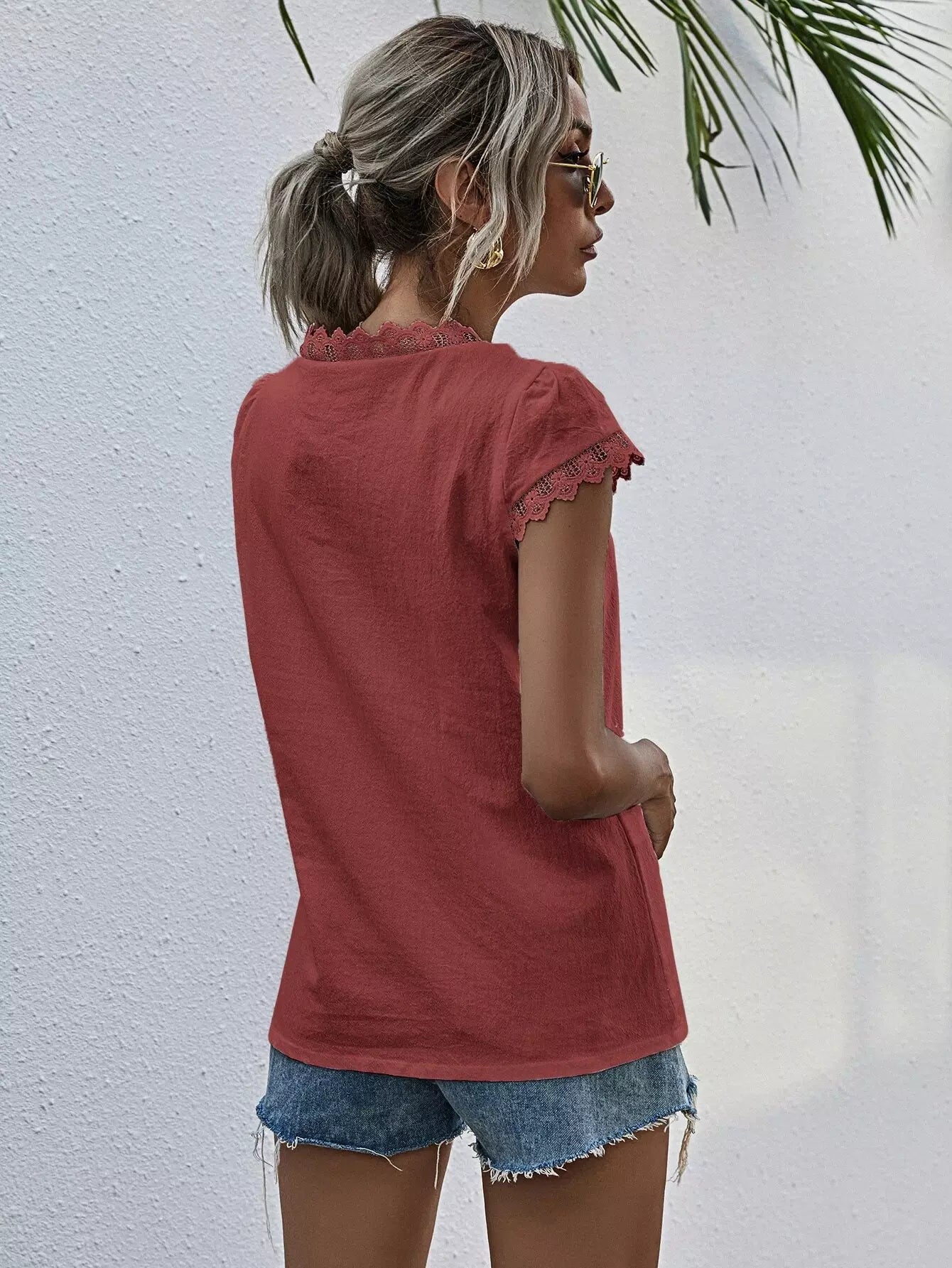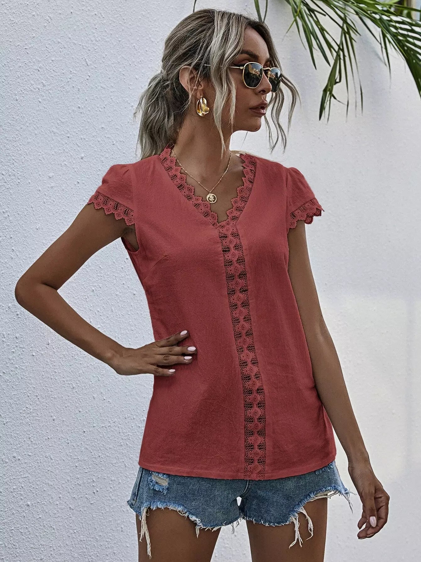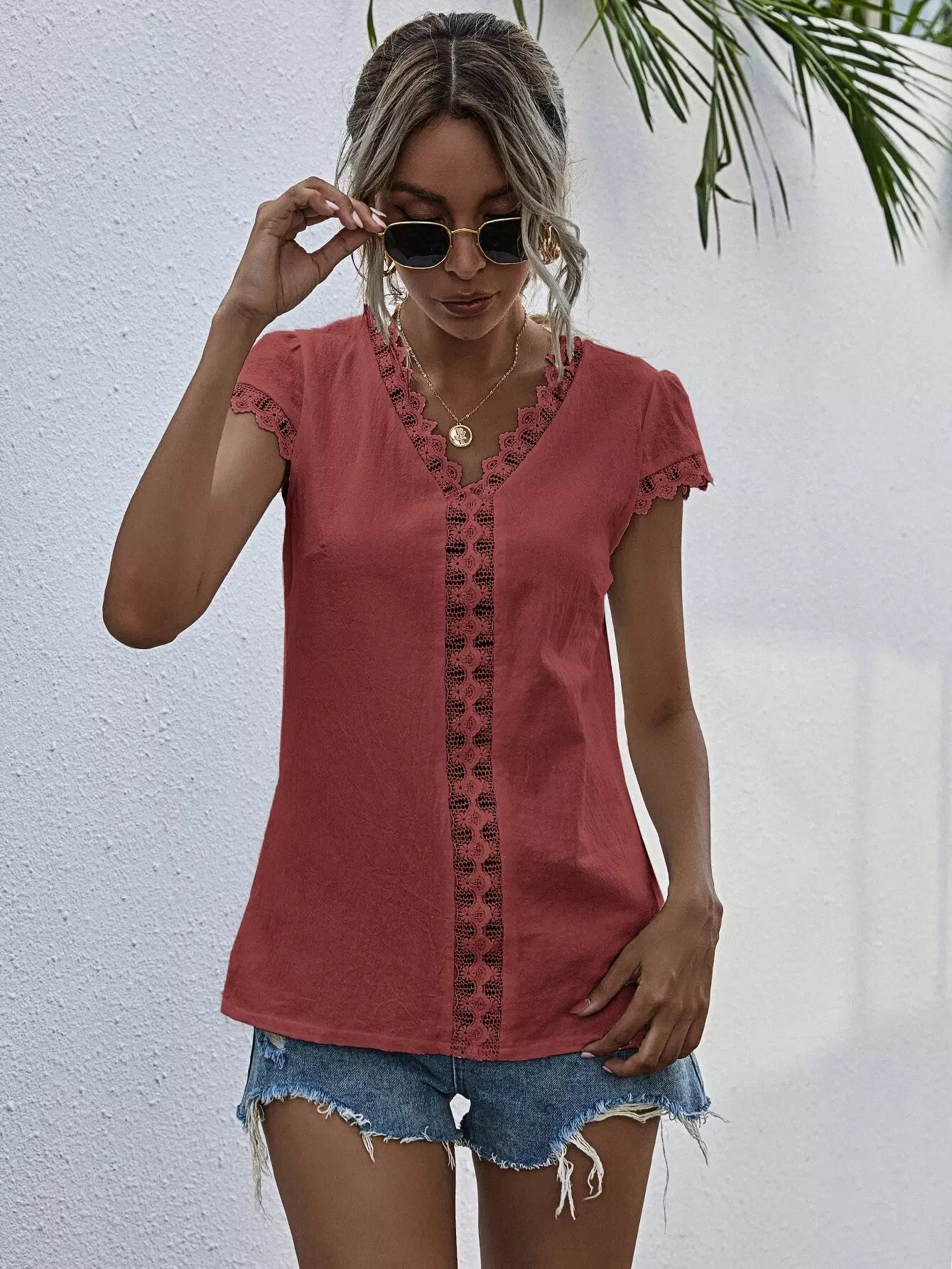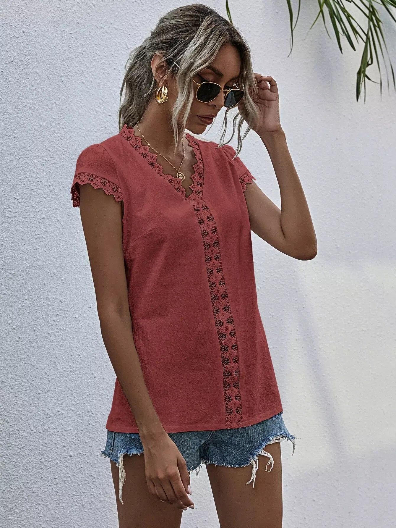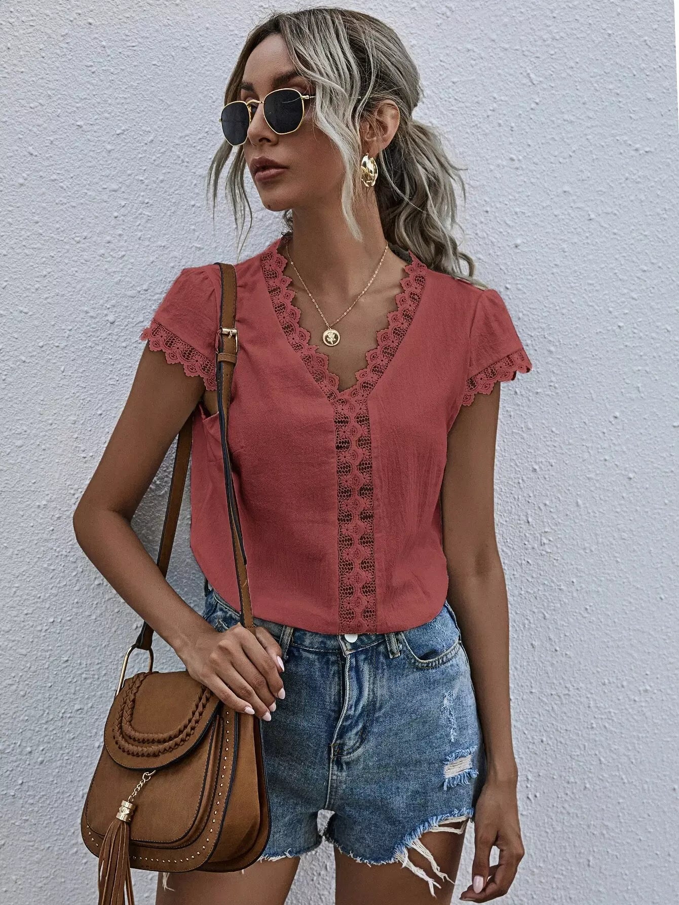النساء - بلوزة مزخرفة بدانتيل غيبور سادة