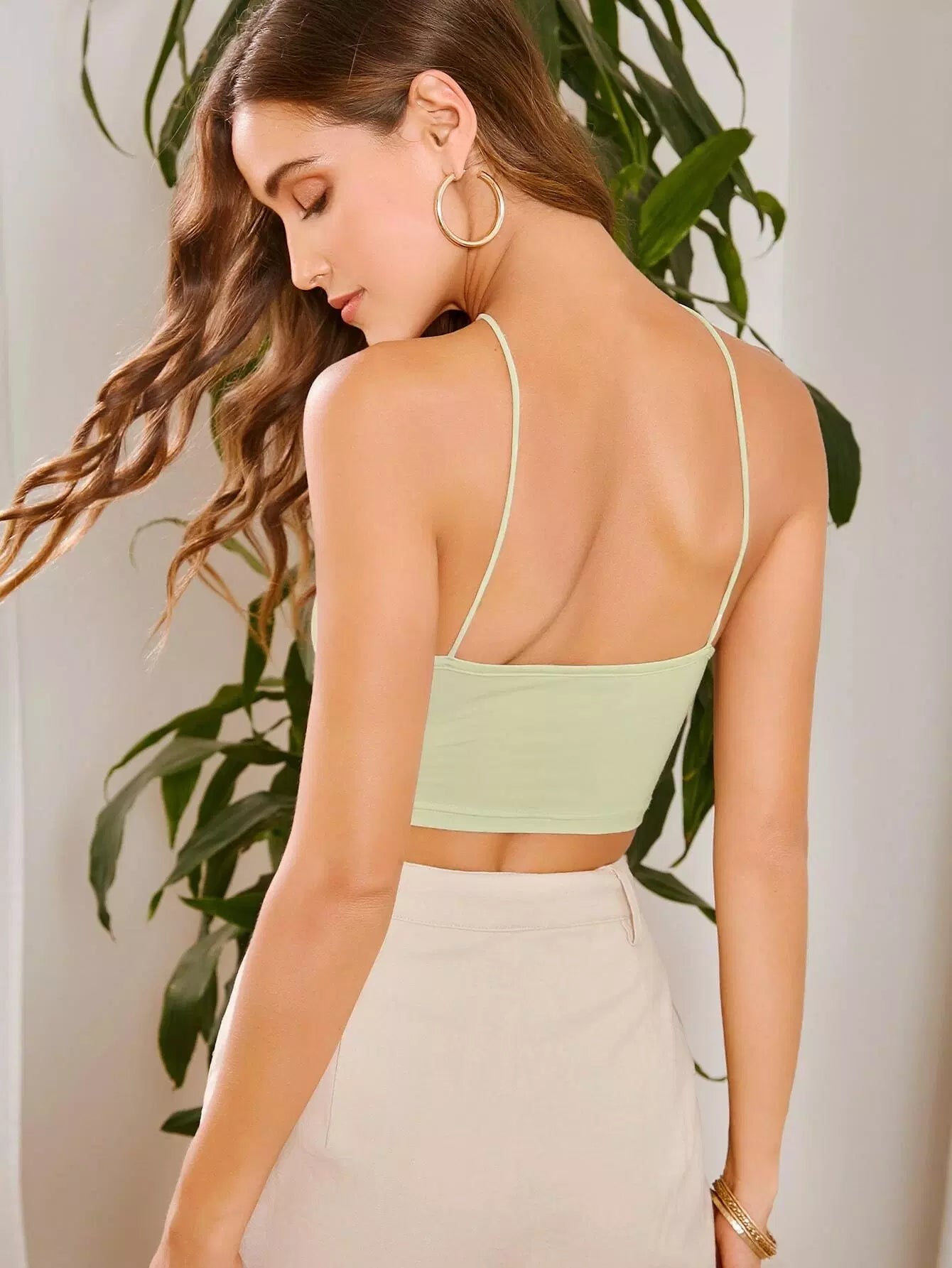بلوزة قصيرة قصيرة سادة ذات رسن سادة