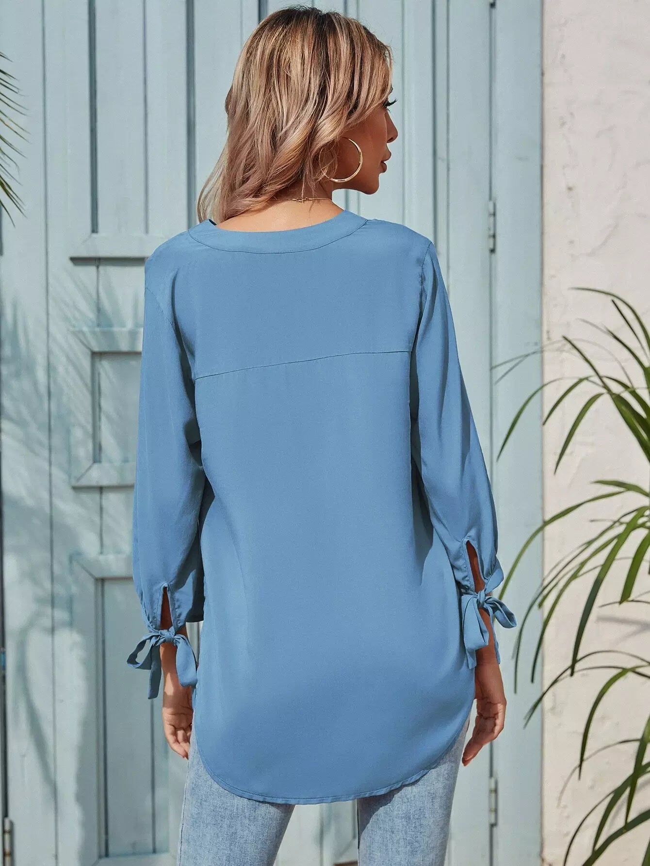 بلوزة سادة بأكمام طويلة ومنخفضة