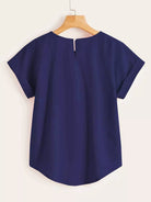 بلوزة سادة بأكمام سادة بأكمام منخفضة عالية منخفضة
