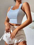 تانك قصير بدون أكمام من دون أكمام بأربطة من الخلف سادة
