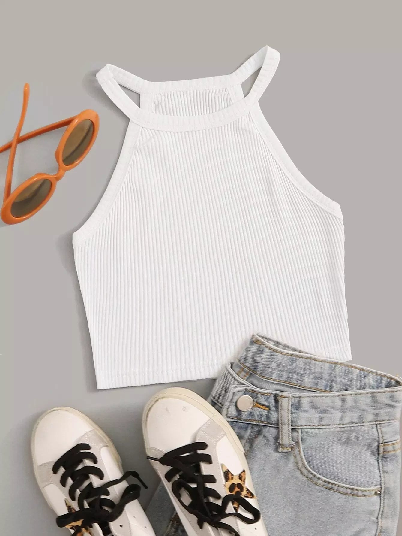 بلوزة سادة بحياكة ضلع محبوكة على شكل رسن