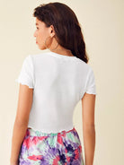 للنساء - تي شيرت سادة مضلع بحافة الخس
