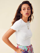 تي شيرت بحواف مضلعة مضلعة سادة على شكل خس