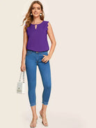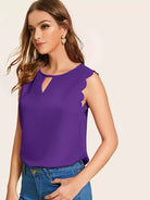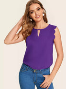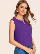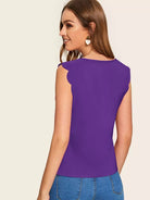 بلوزة سادة بحواف من الإسكالوب بحافة بيكابو