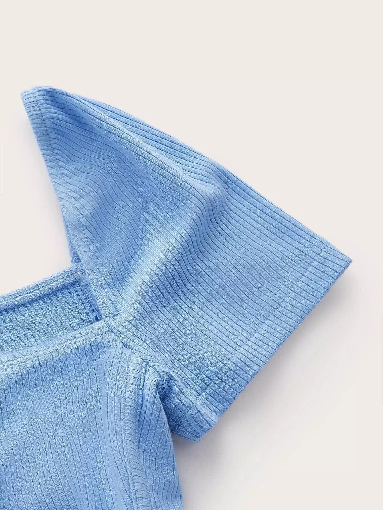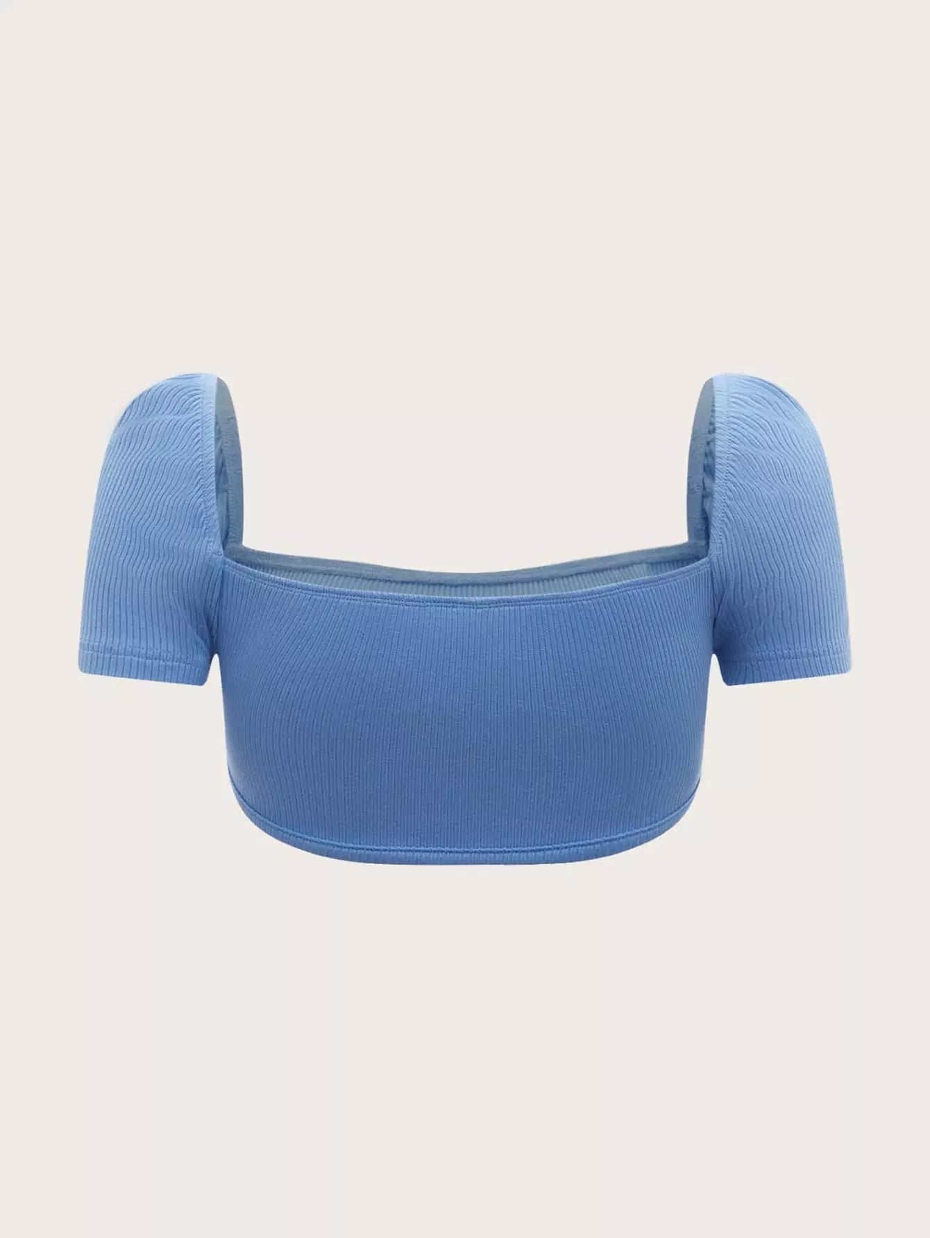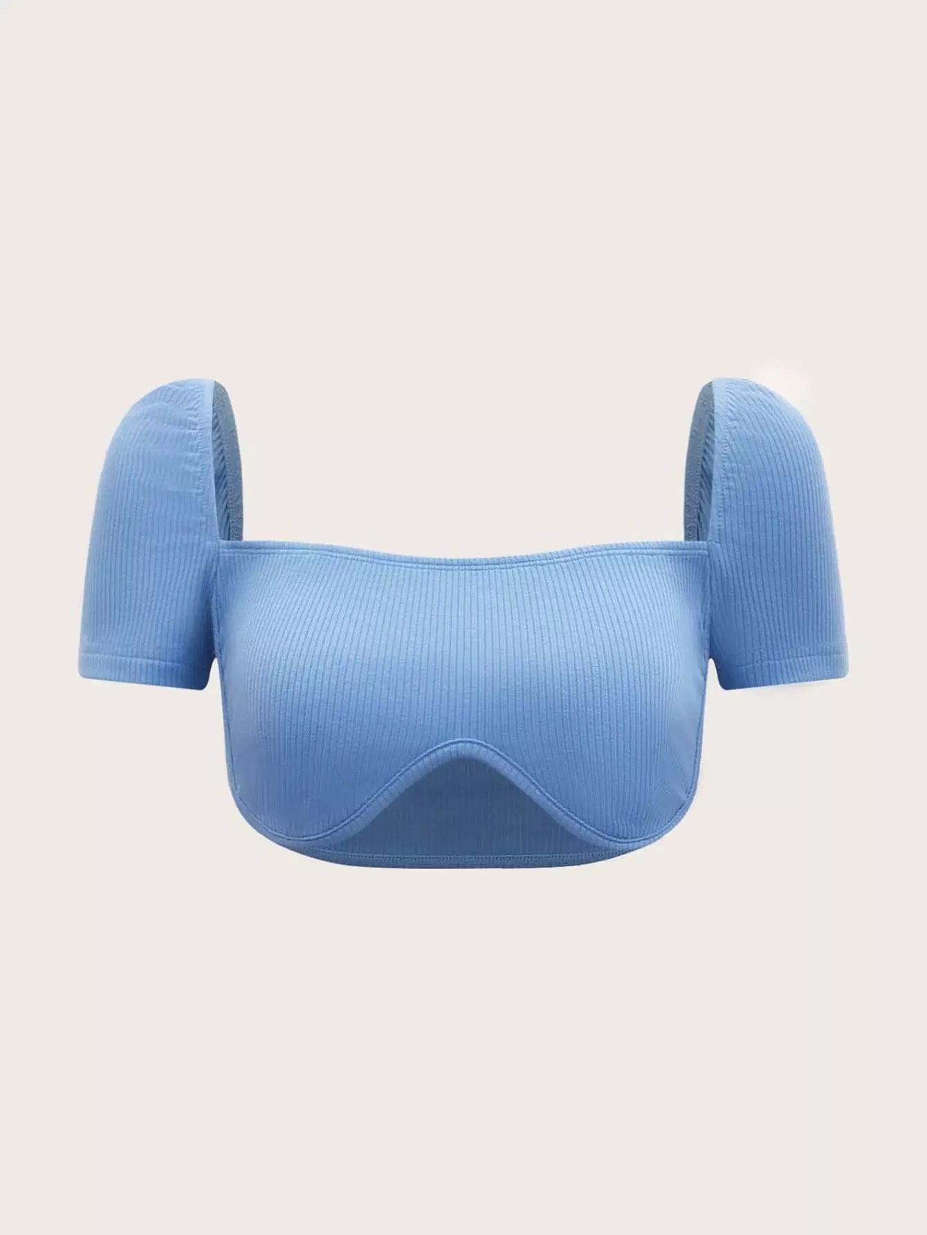 بلوزة برقبة مربعة برقبة مربعة مضلعة ومحبوكة ومضلعة