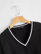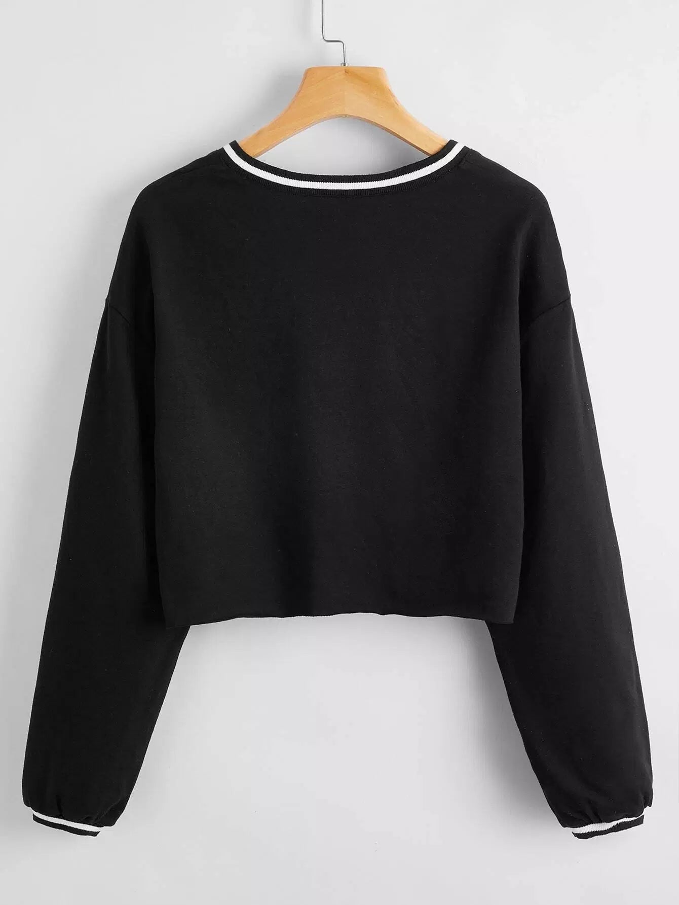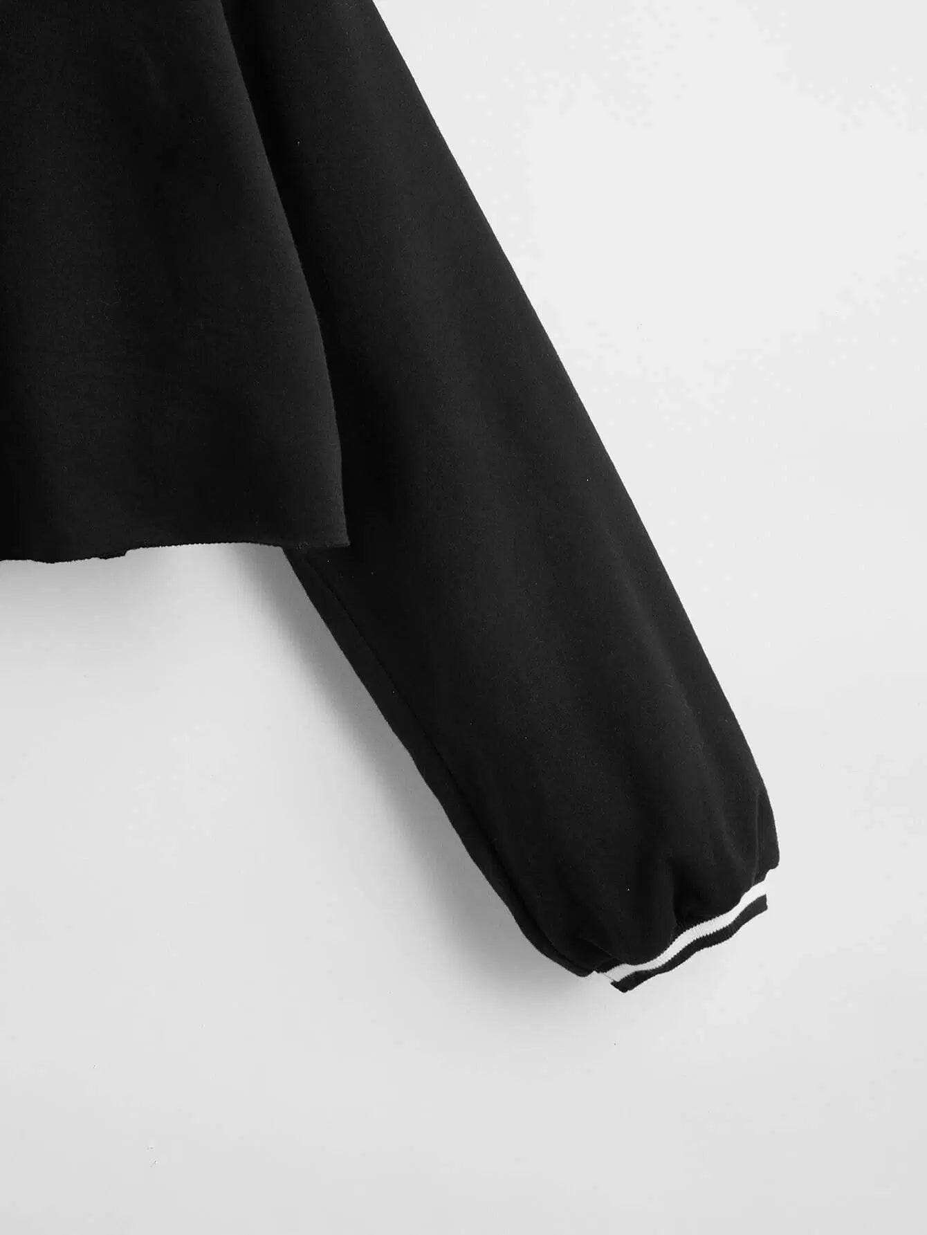 بلوفر قصير منسدل على الكتف مع حواف مخططة