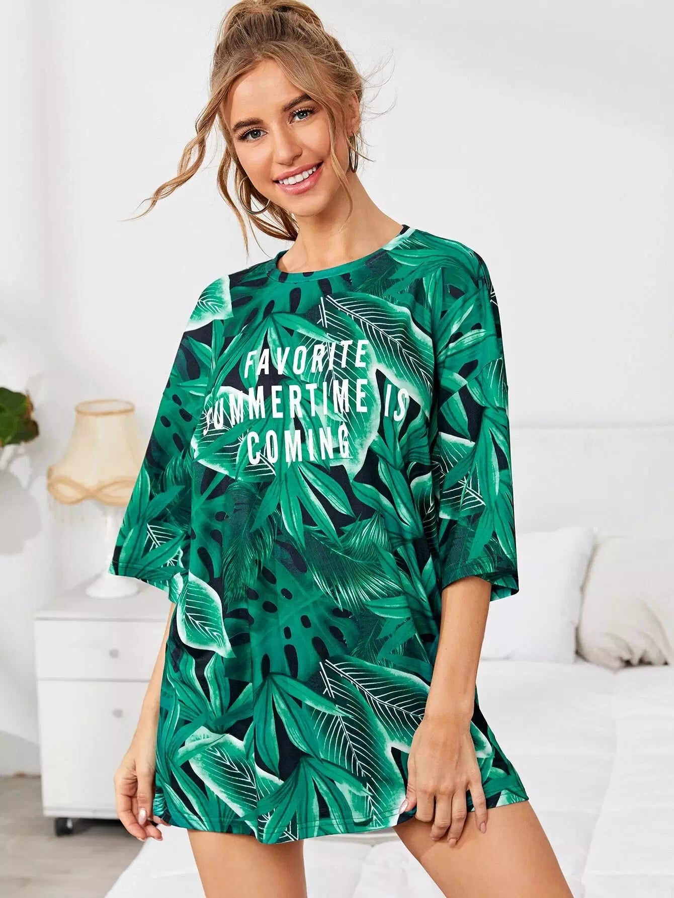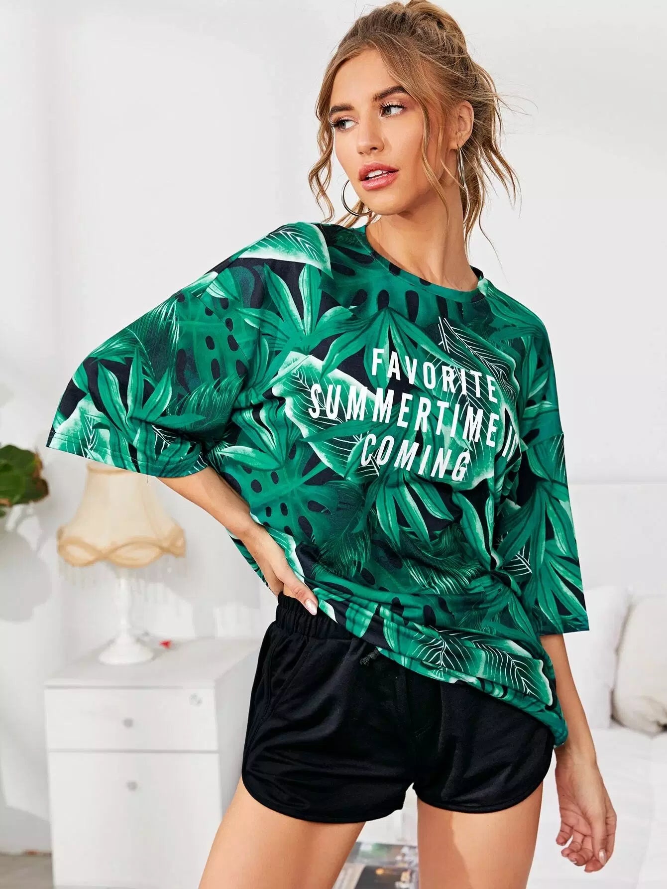 تي شيرت أوراق الشجر الاستوائية الجرافيكية الصيفية قادمة