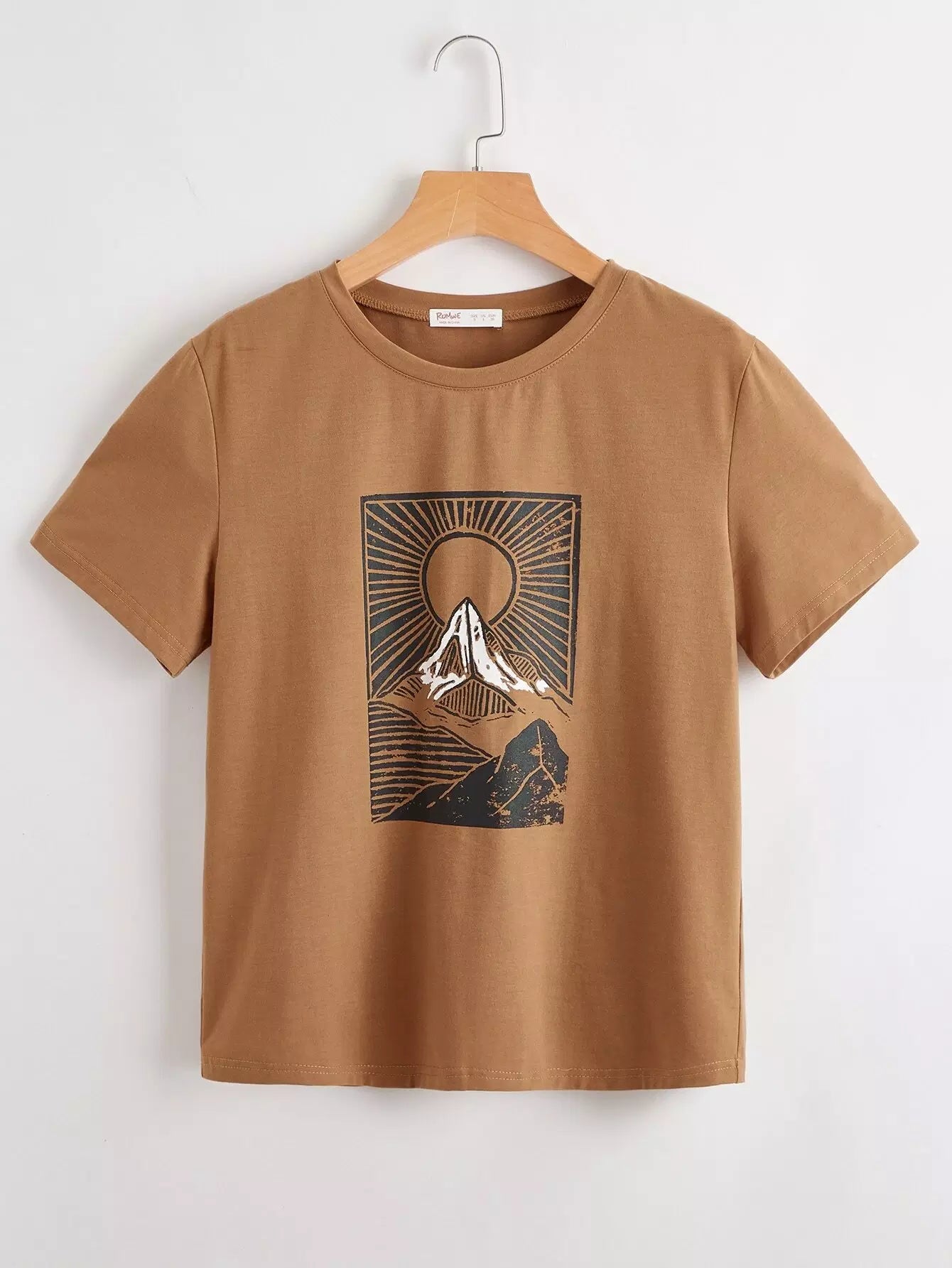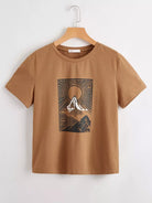 تي شيرت برسومات الشمس والجبل