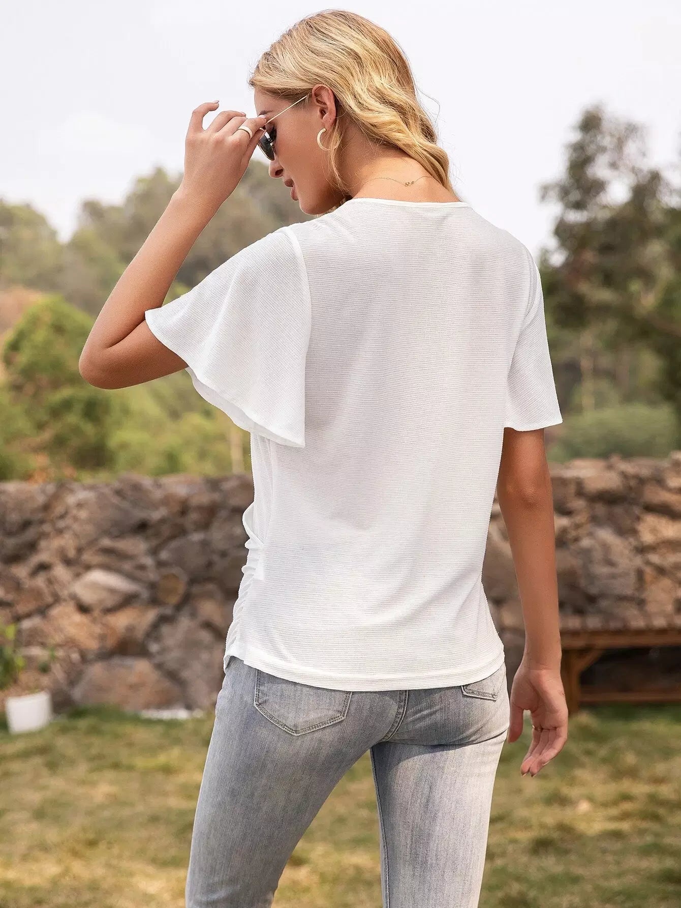 تي شيرت بأكمام على شكل فراشة من الأمام