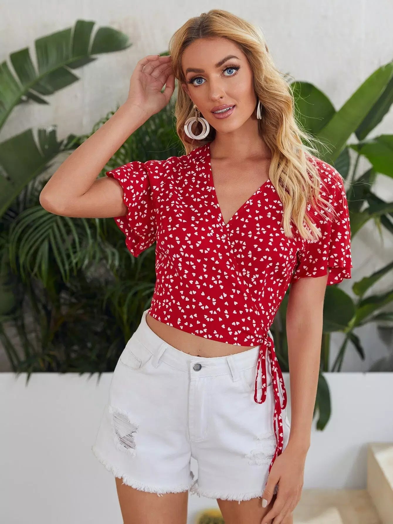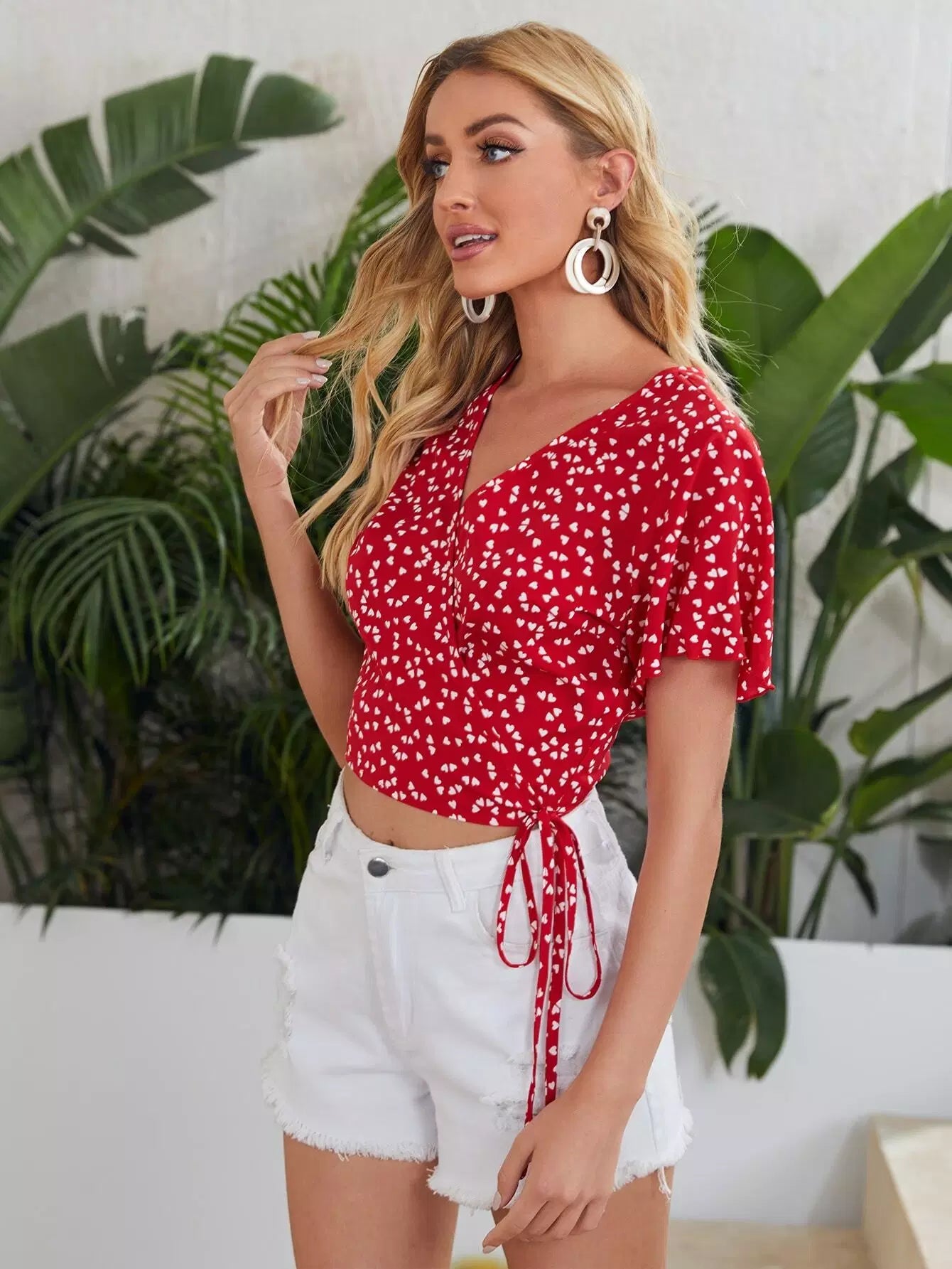 بلوزة سوربليس ملفوفة بعقدة جانبية على شكل قلب