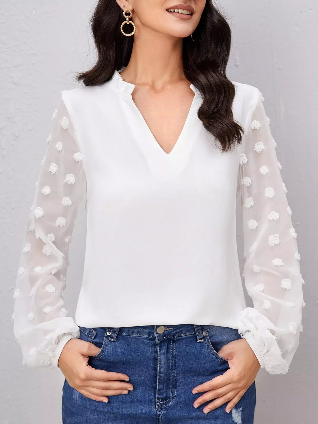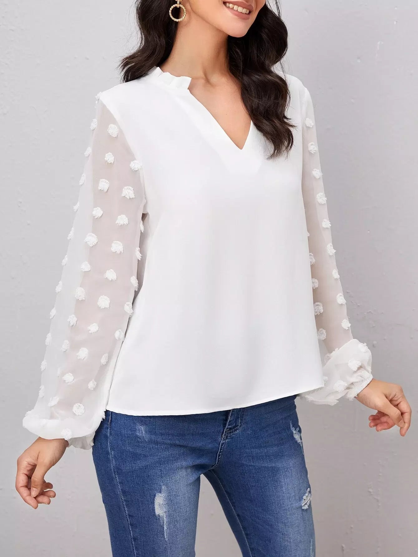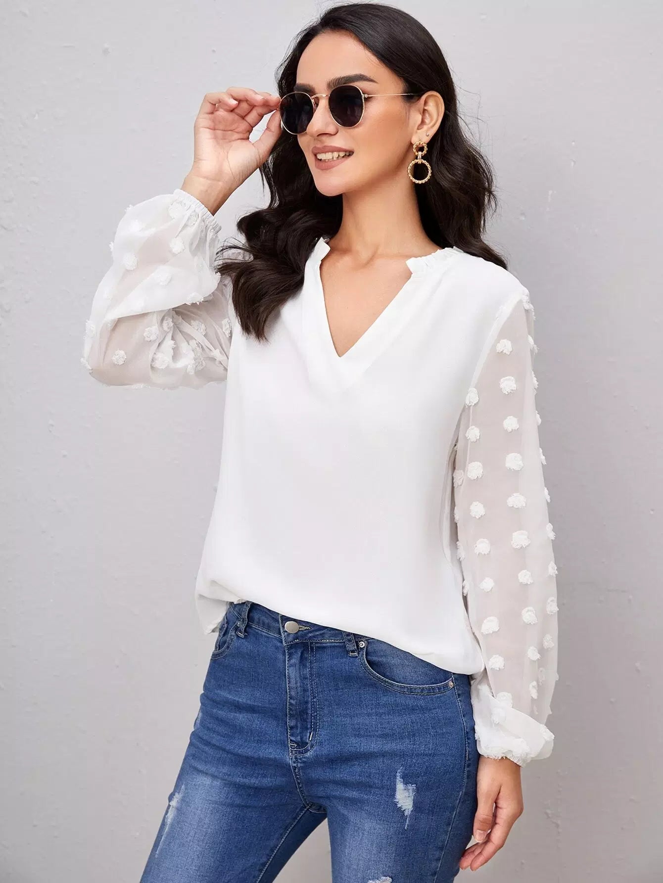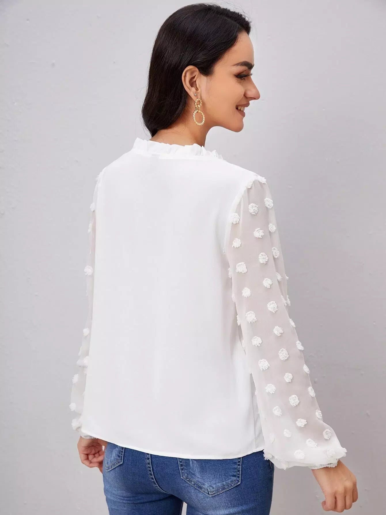 بلوزة بأكمام منقطة سويسرية بأكمام أسقف مكشكشة