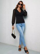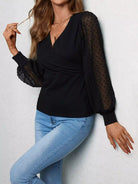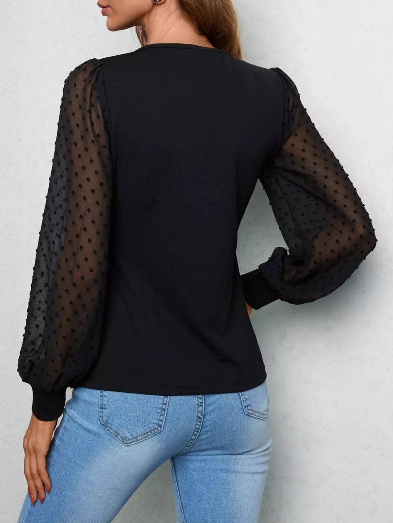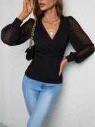 تي شيرت بأكمام فانوس منقط سويسري