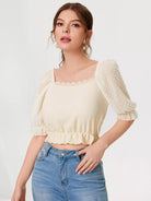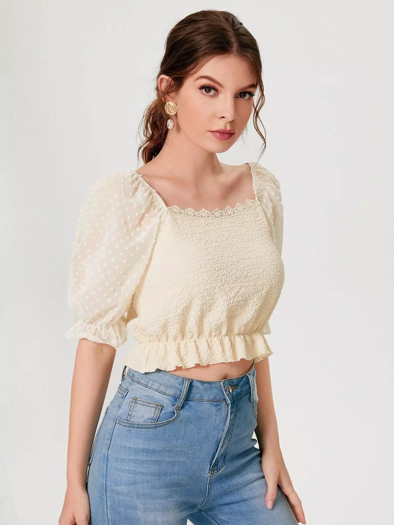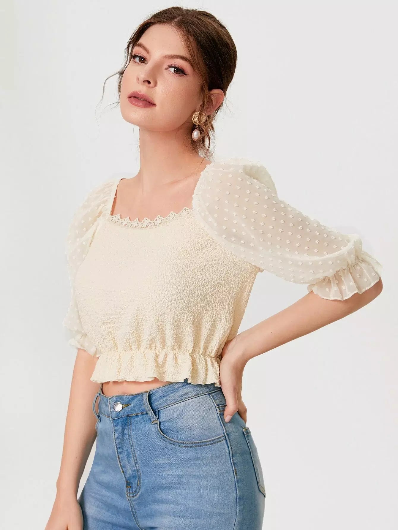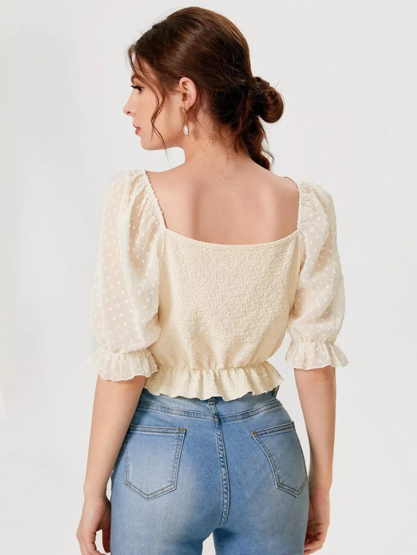 بلوزة قصيرة مكشكشة ذات حافة مكشكشة سويسرية منقطة