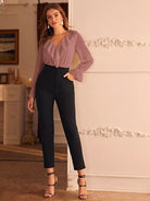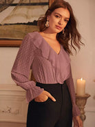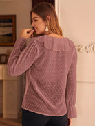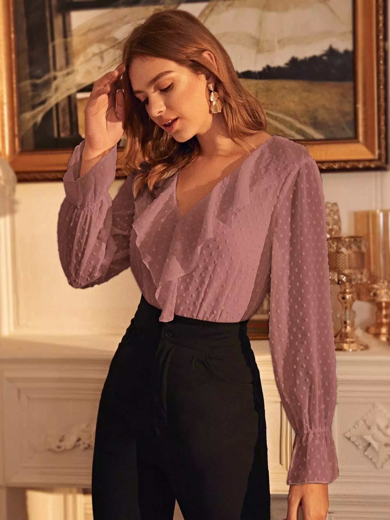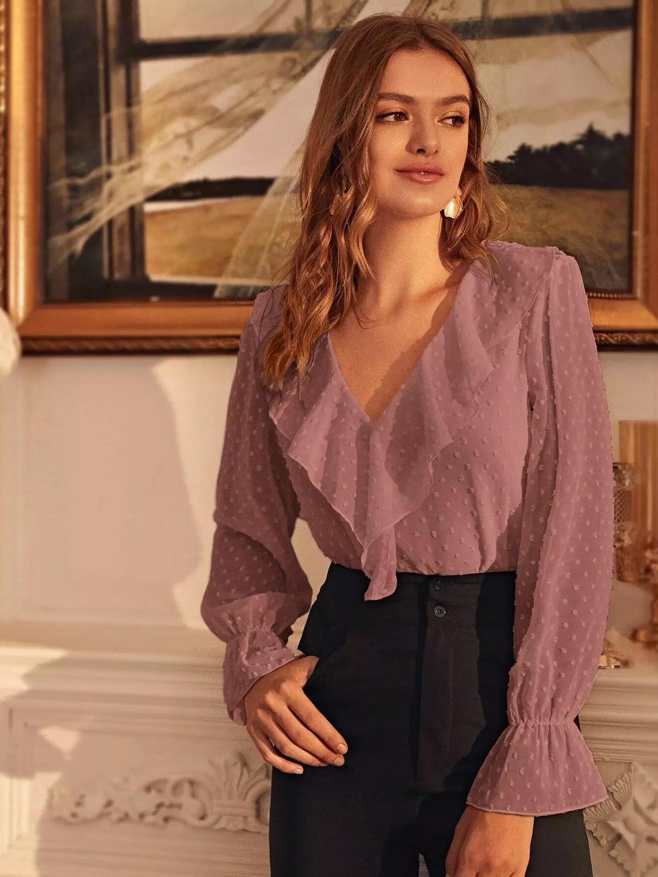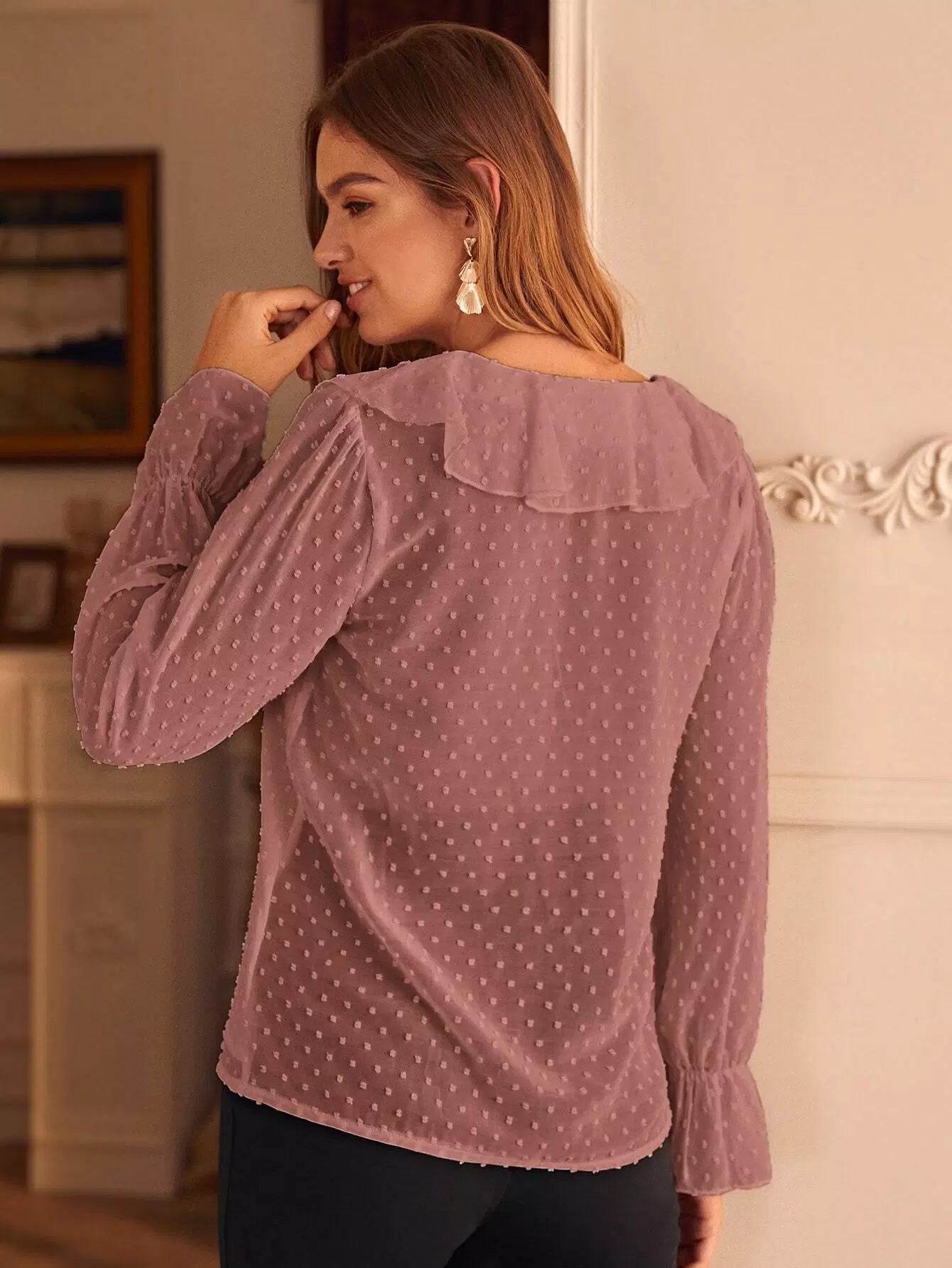 بلوزة شيفون منقّطة سويسرية مكشكشة بحواف مكشكشة