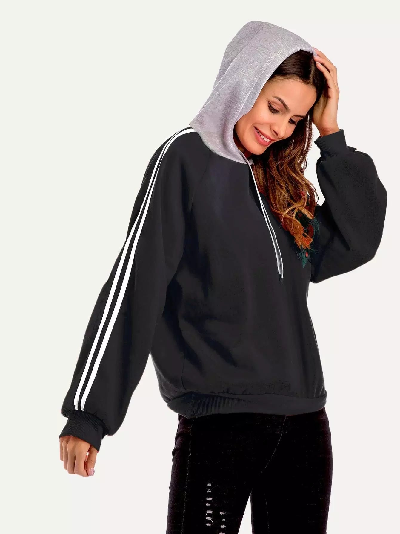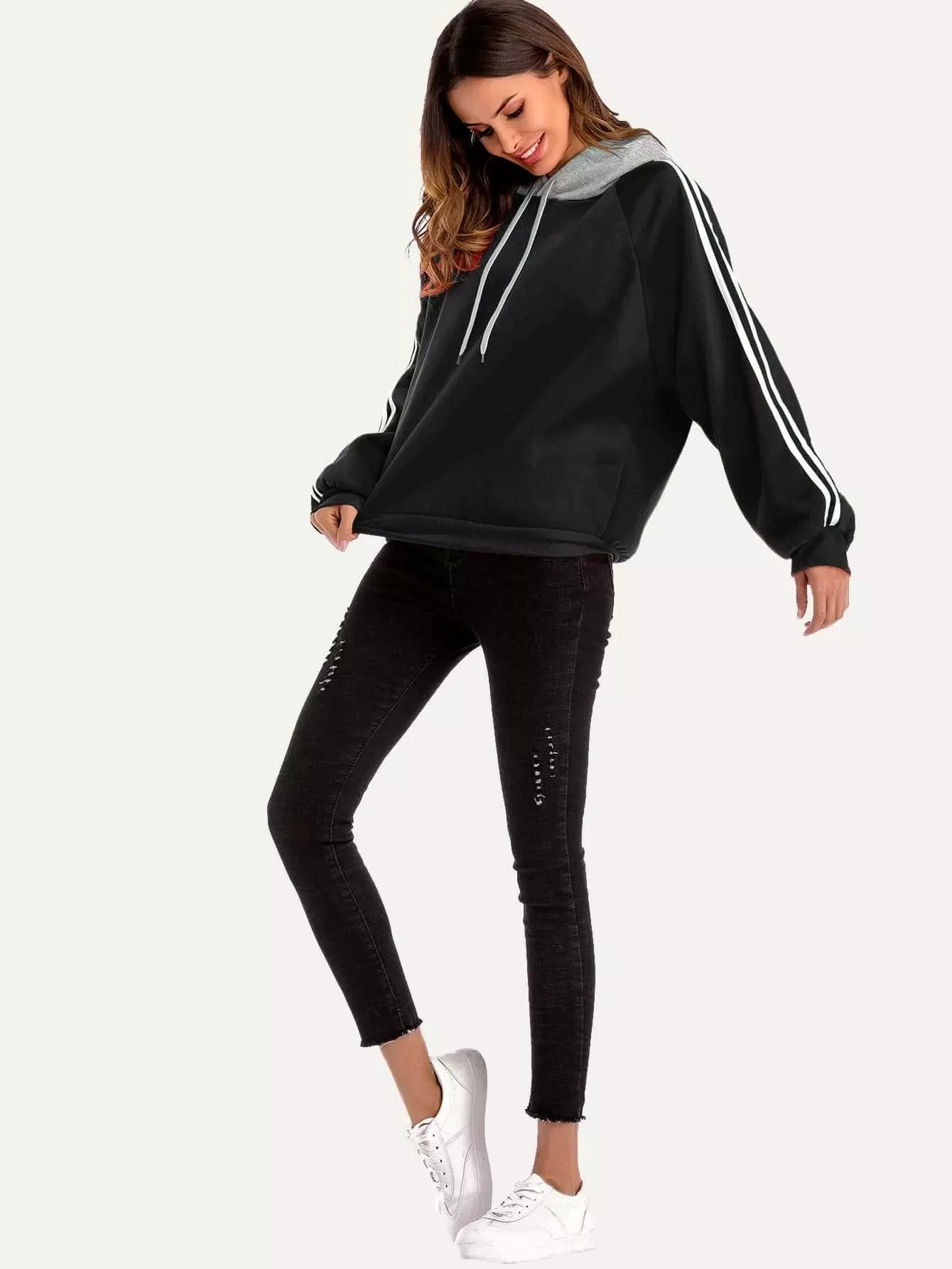 هودي بأكمام شريطية بأربطة بأكمام شريطية