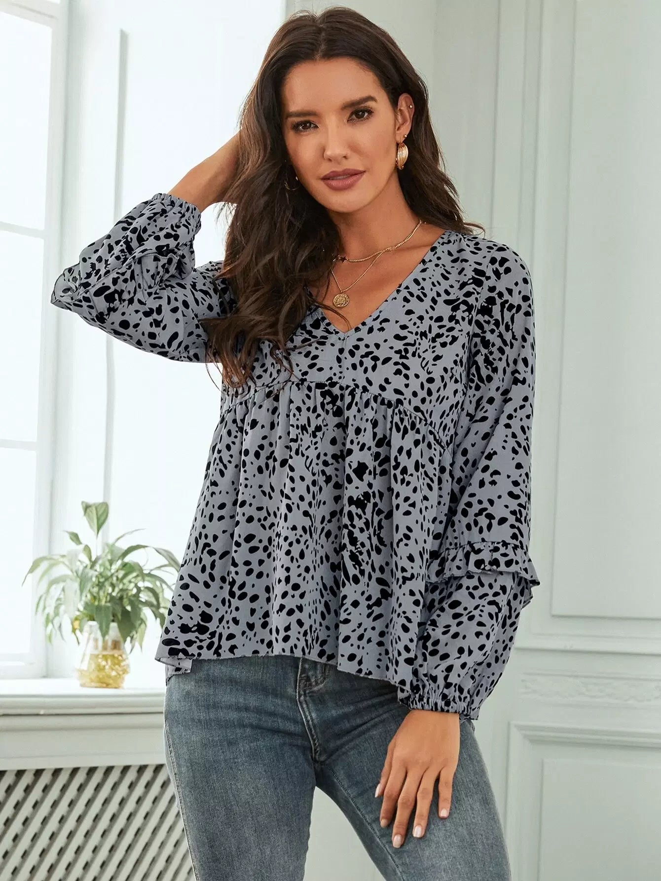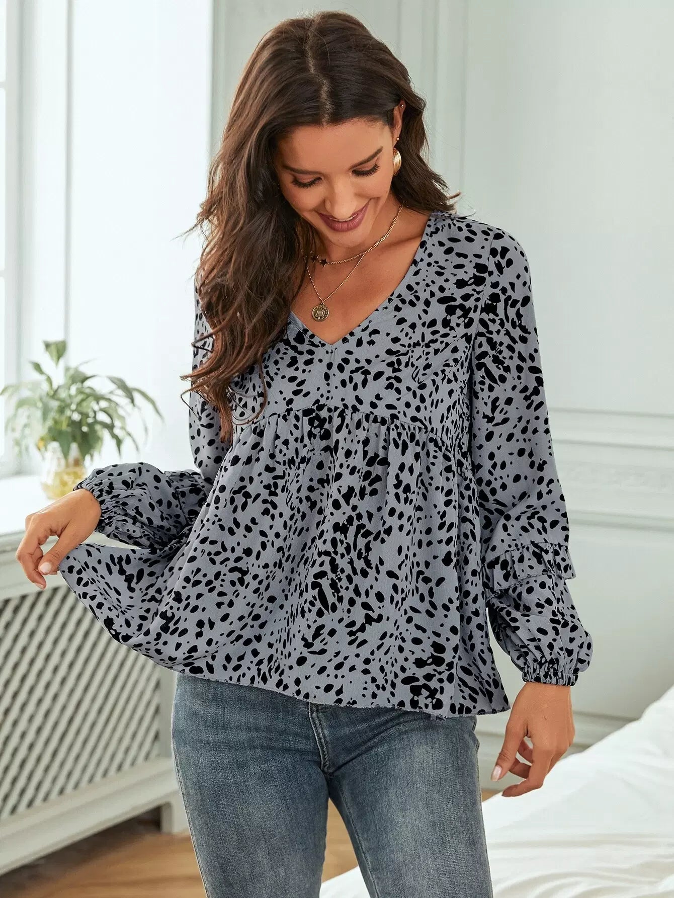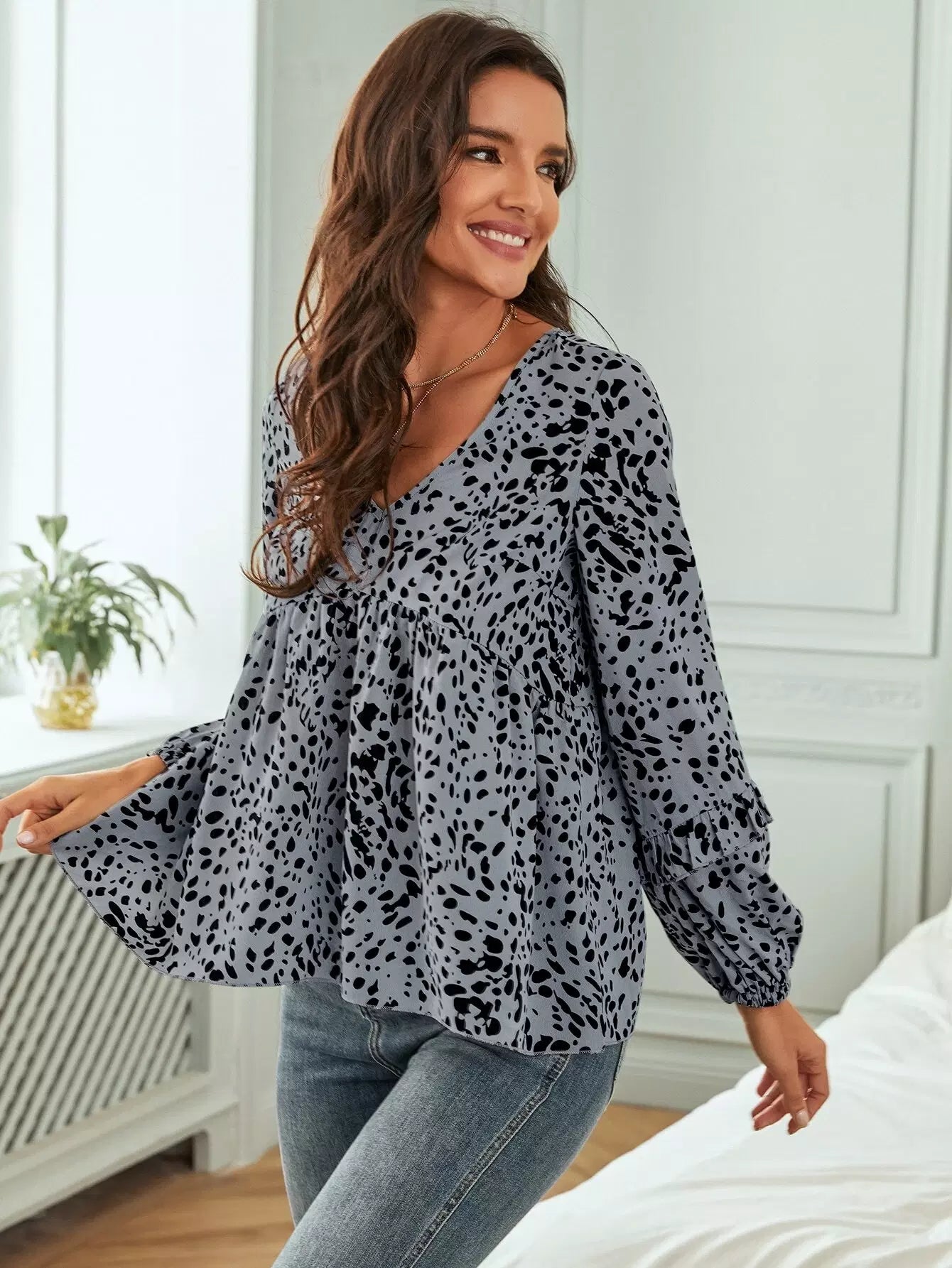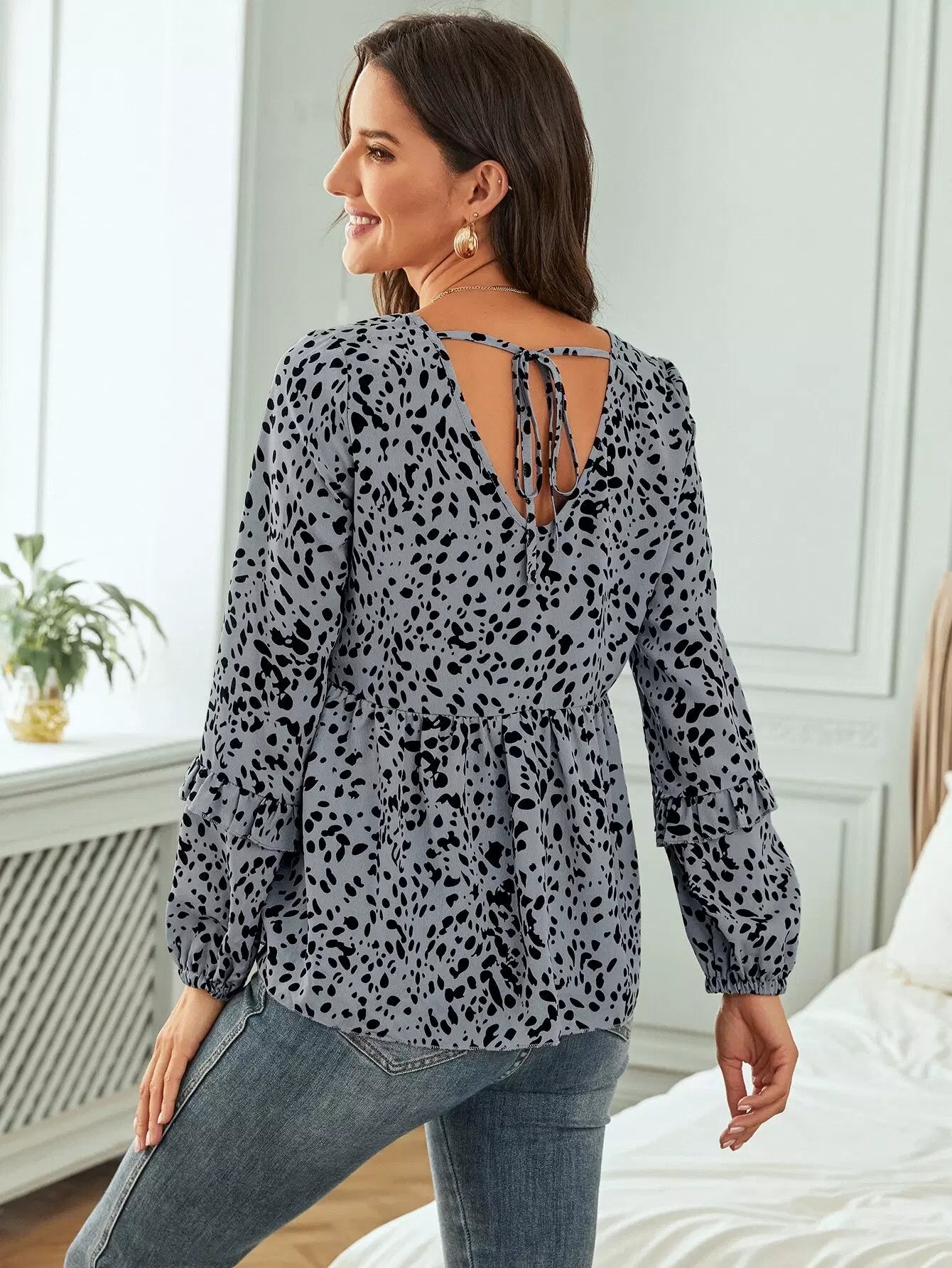 بلوزة ببلوم مطبوعة بالكامل مع رباط خلفي