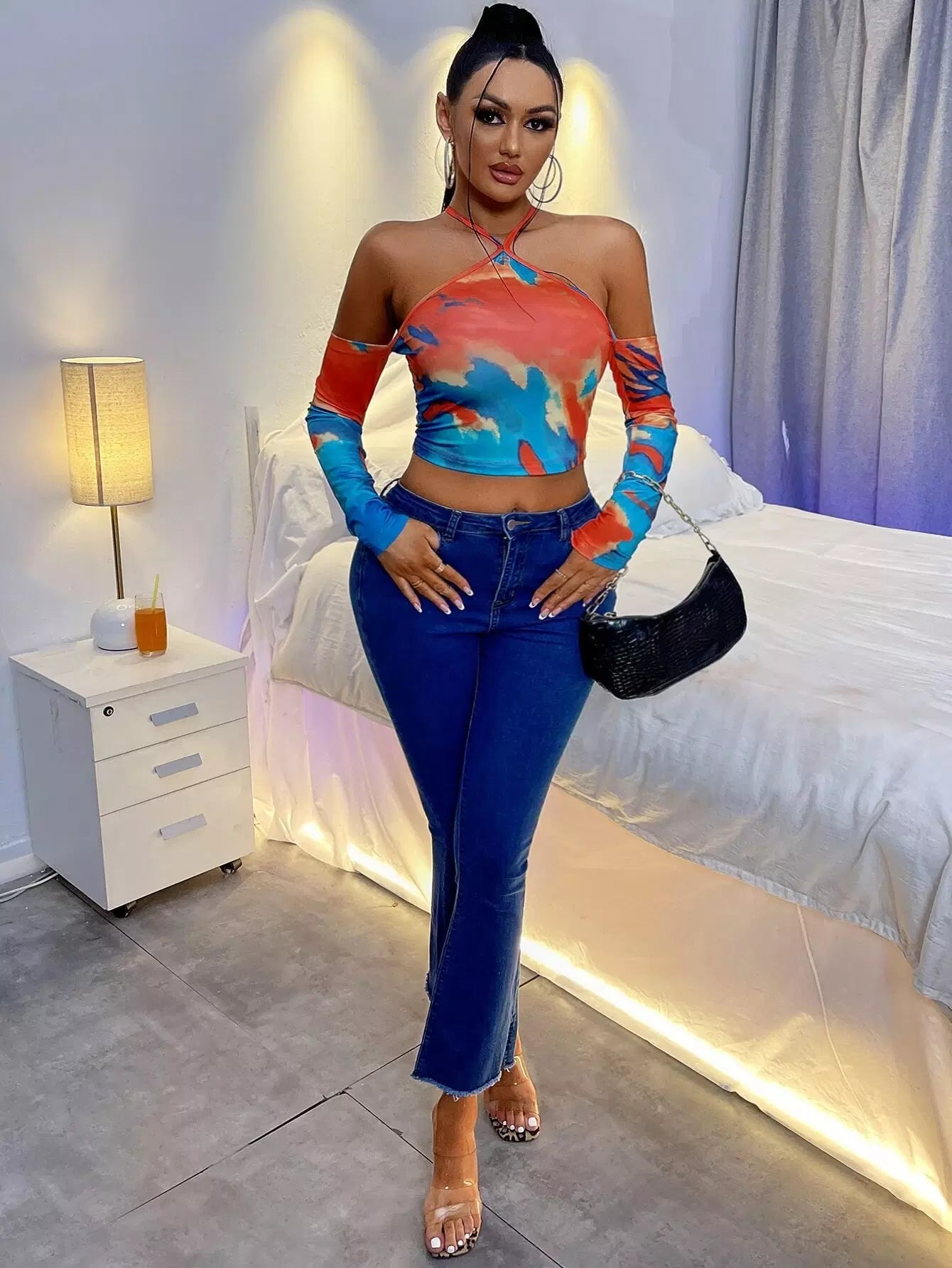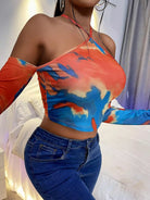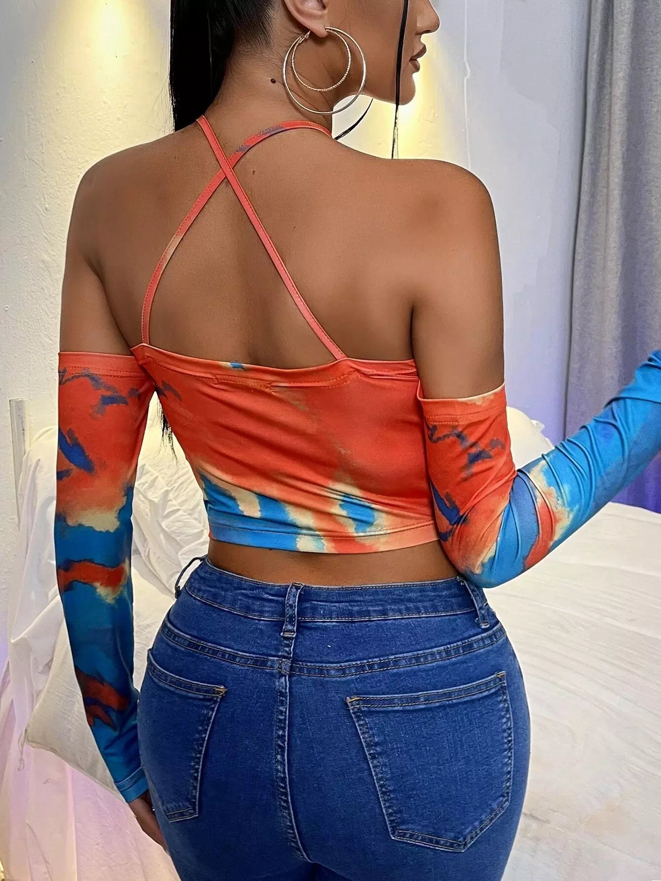 تي شيرت قصير بظهر متقاطع وصبغة التعادل
