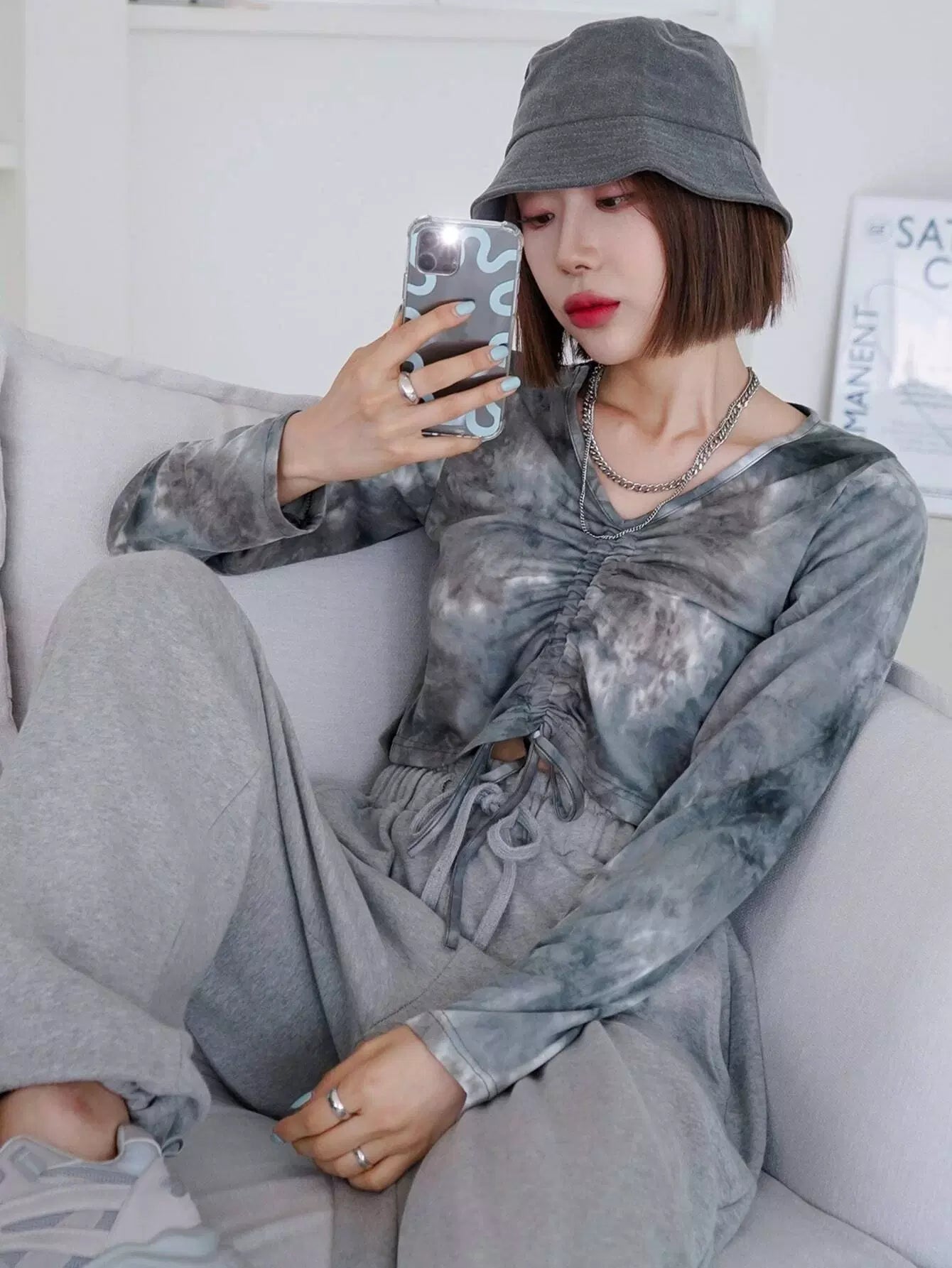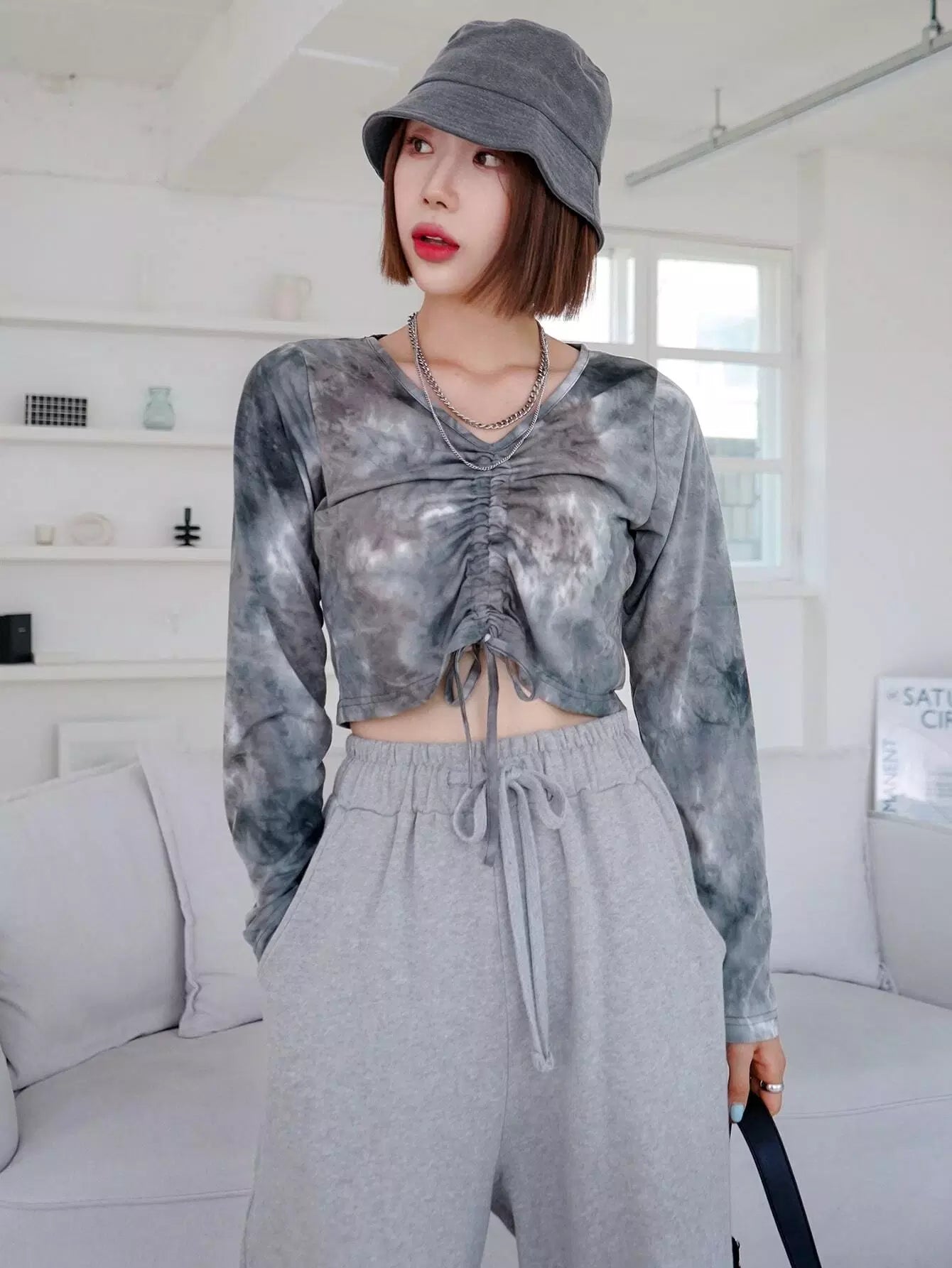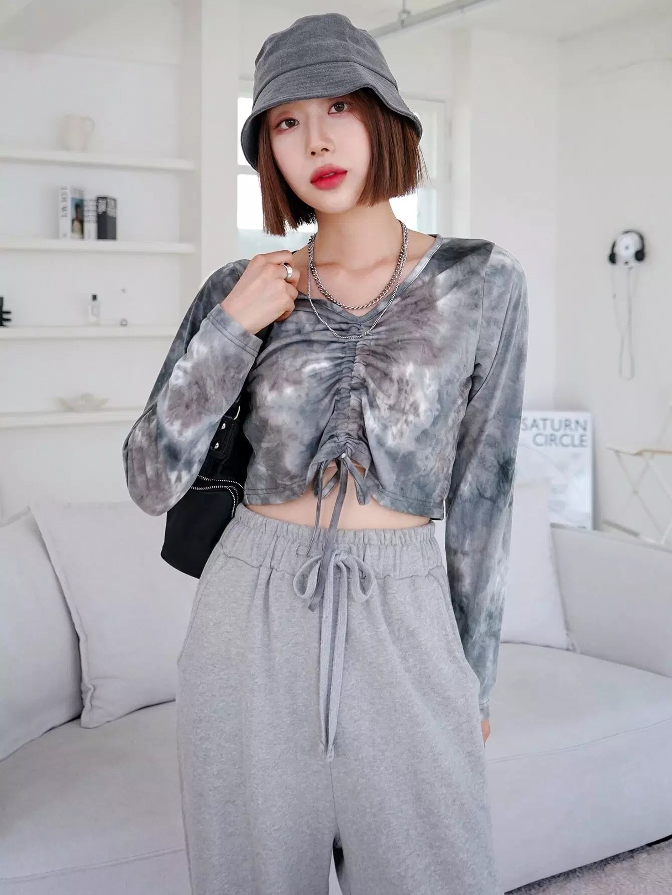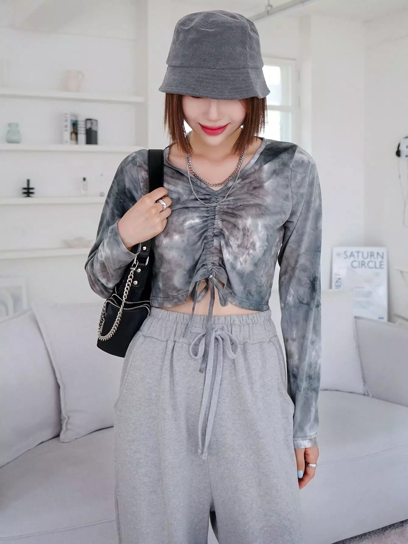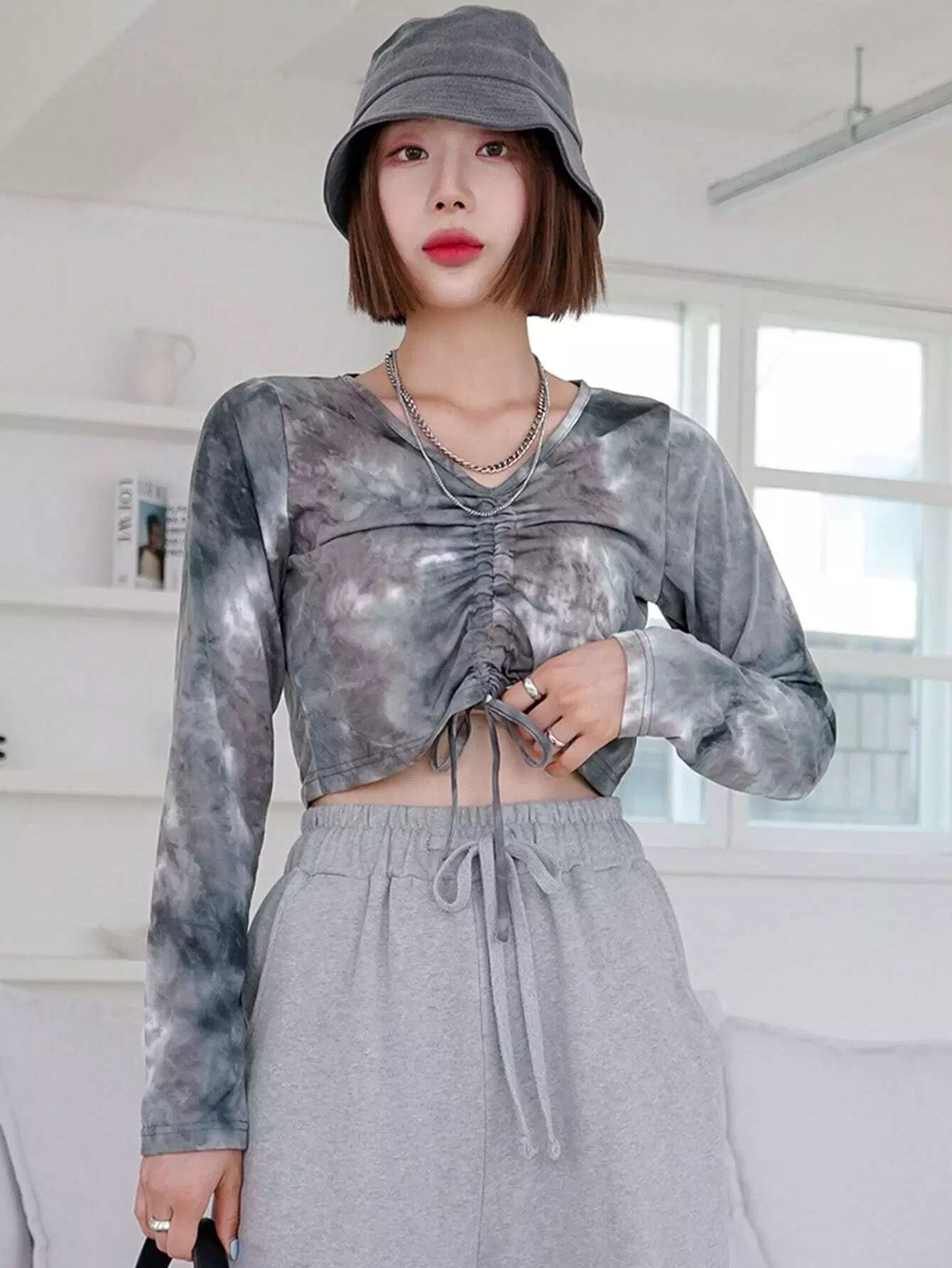 تي شيرت برباط أمامي برباط أمامي مصبوغ بربطة عنق