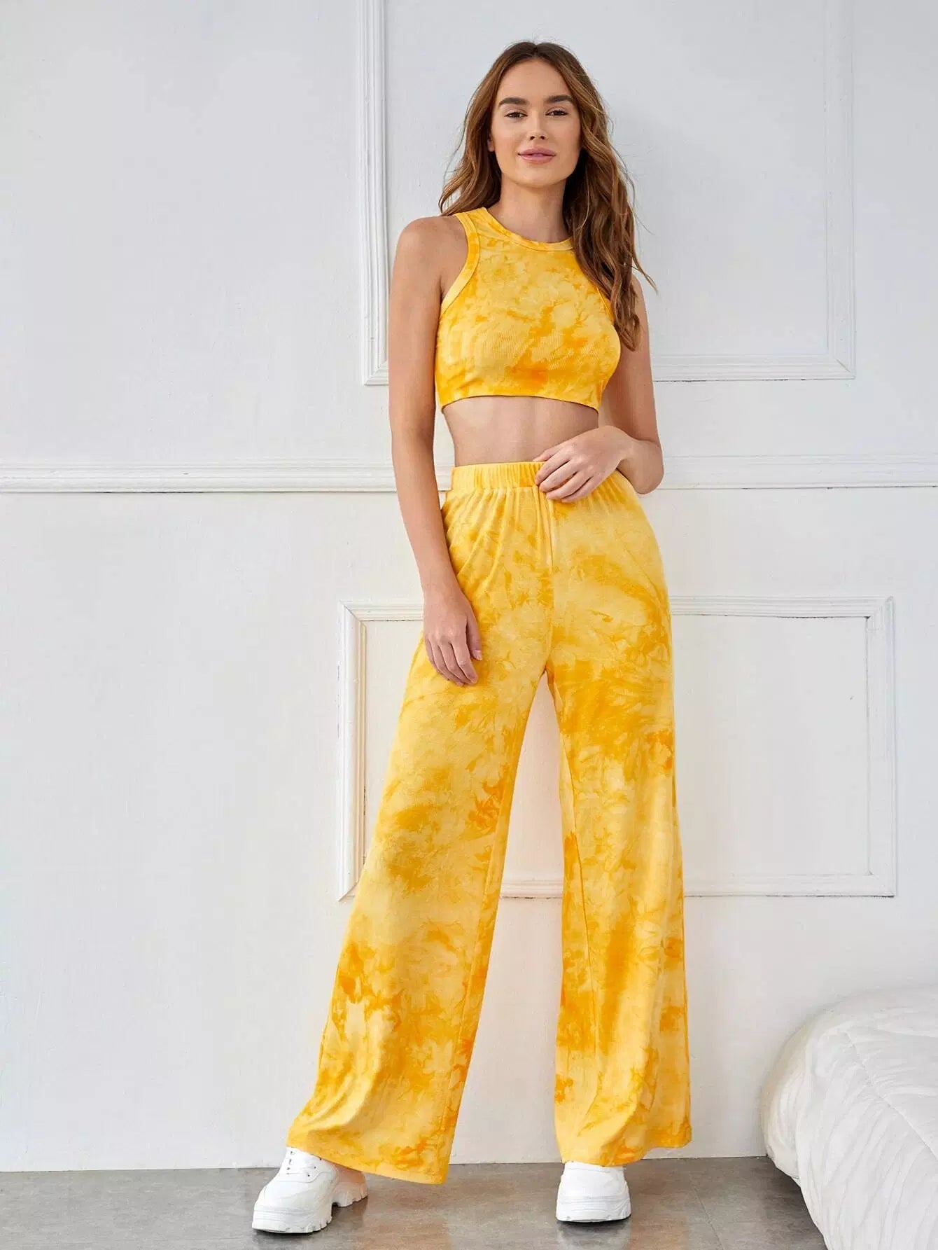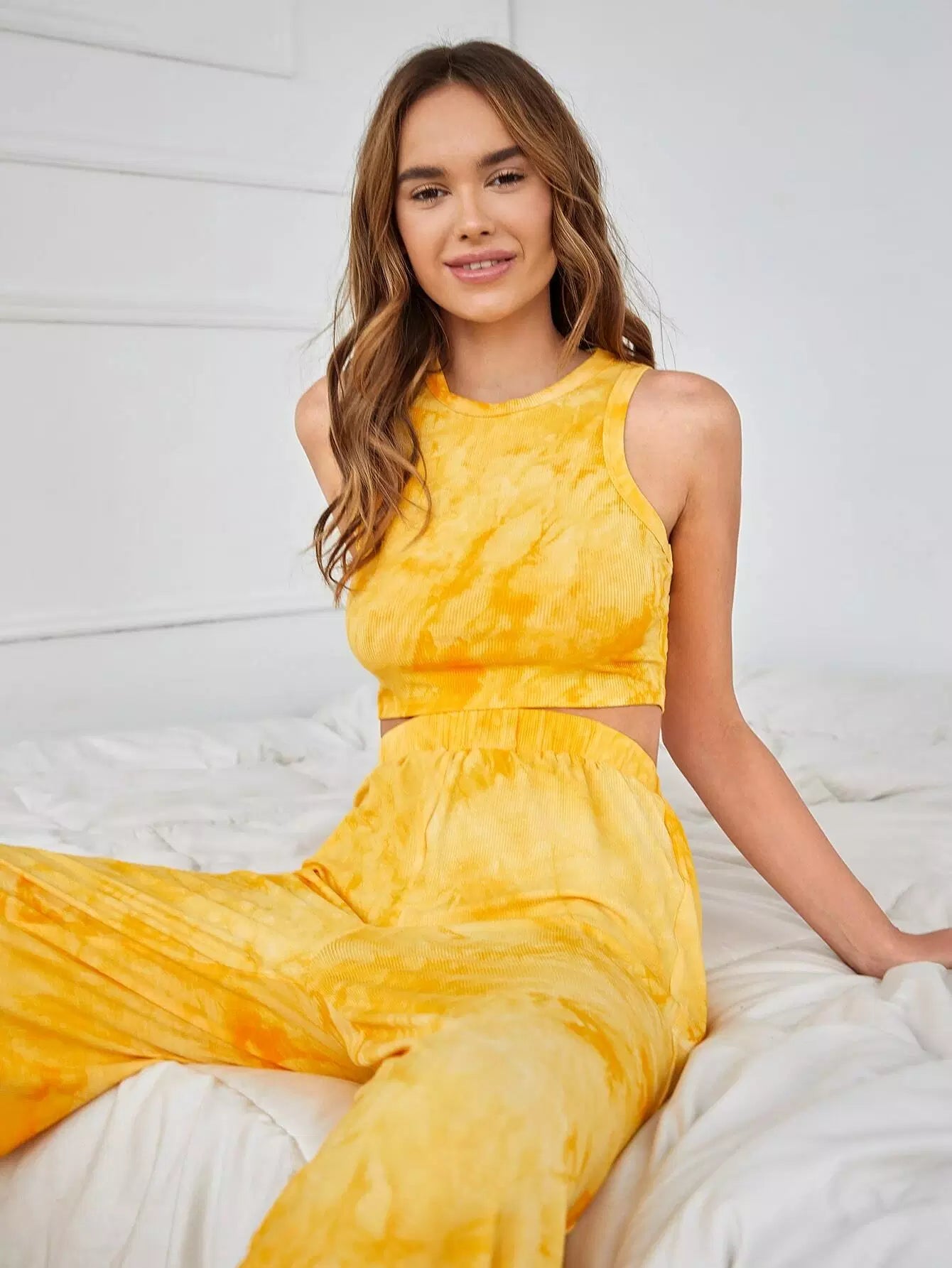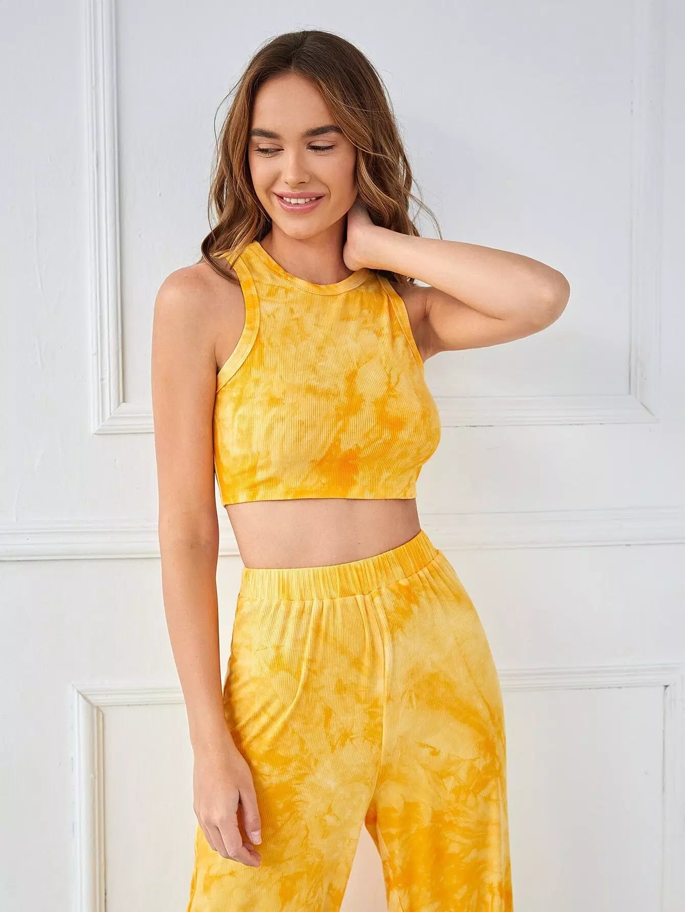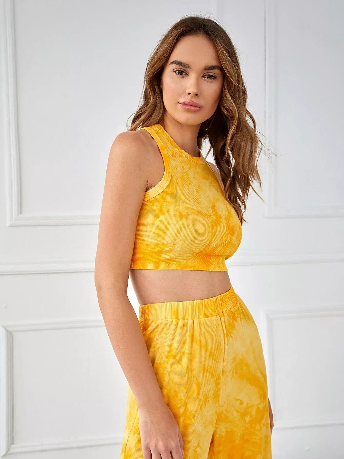 تانك قصير محبوك على شكل ضلع مصبوغ بربطة عنق محبوكة