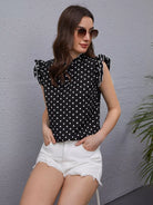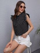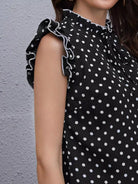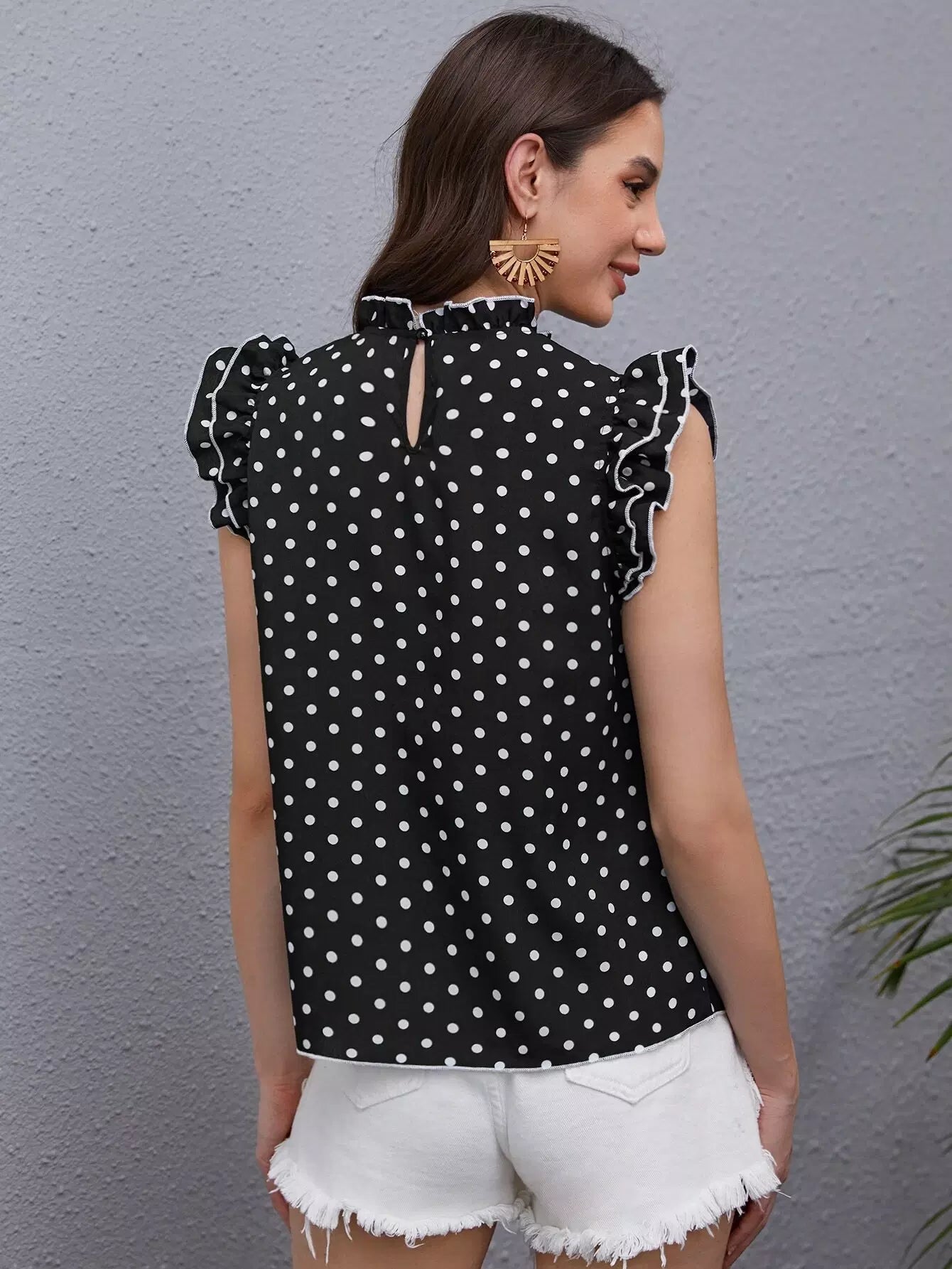 بلوزة منقطه برباط أمامي وحواف كشكشه