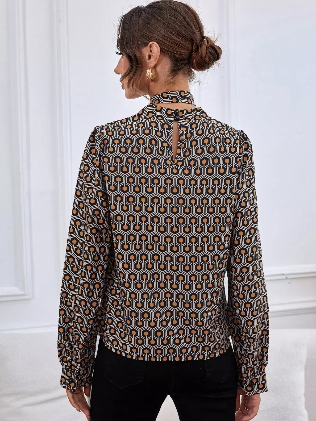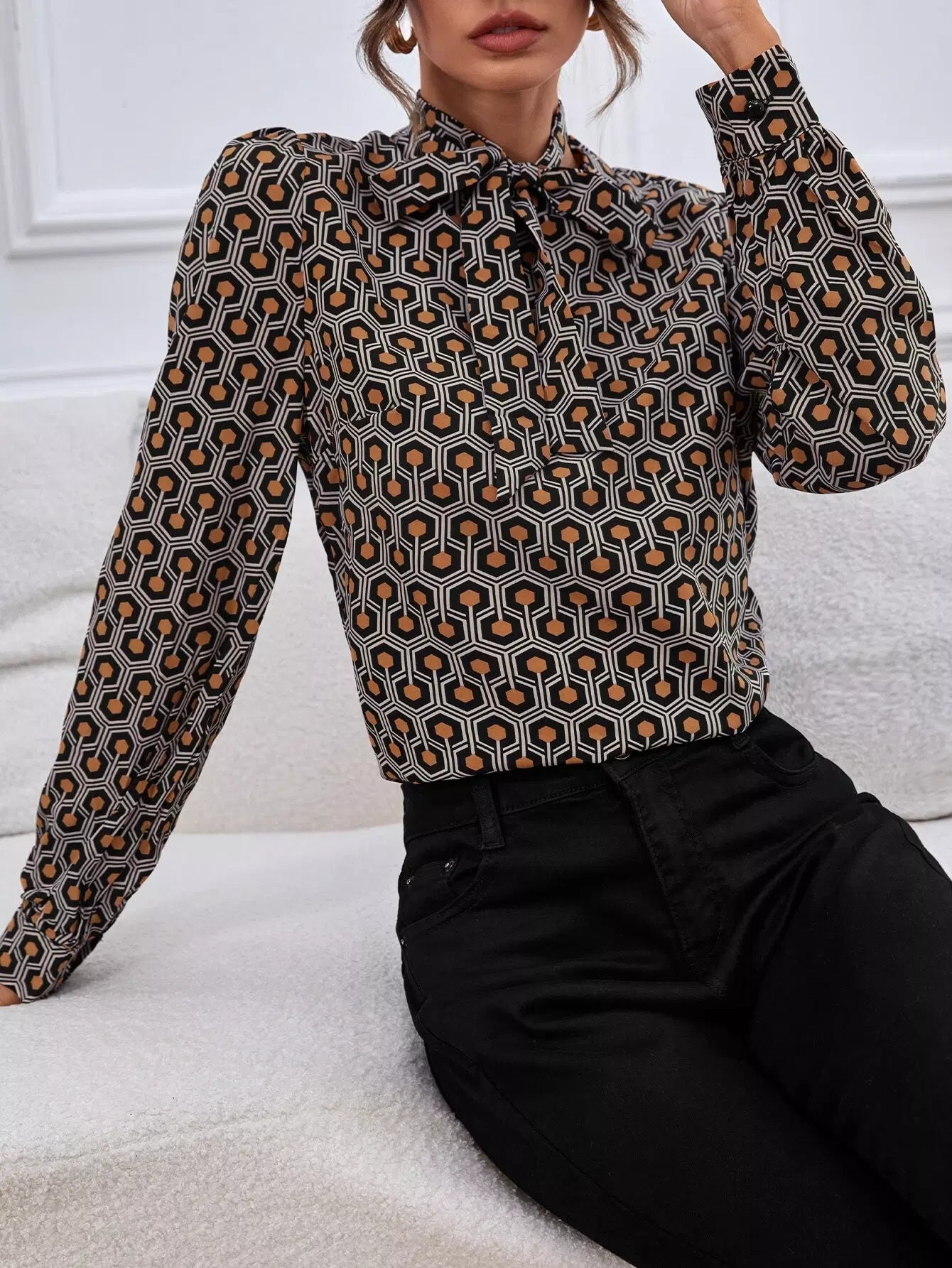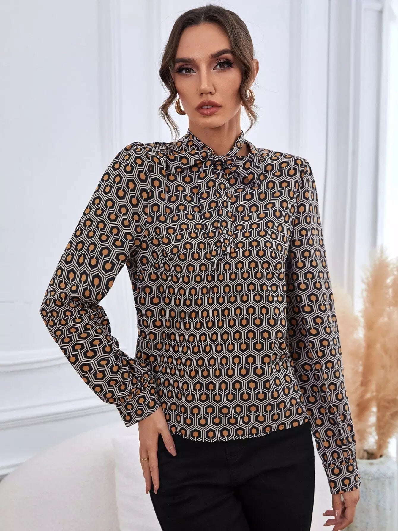 بلوزة بفتحة عنق ربطة عنق بفتحة ظهر جيو