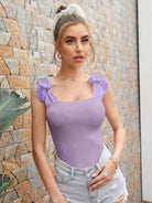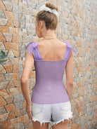 بلوزة كامي محبوكة بربطة كتف على شكل ضلع محبوكة