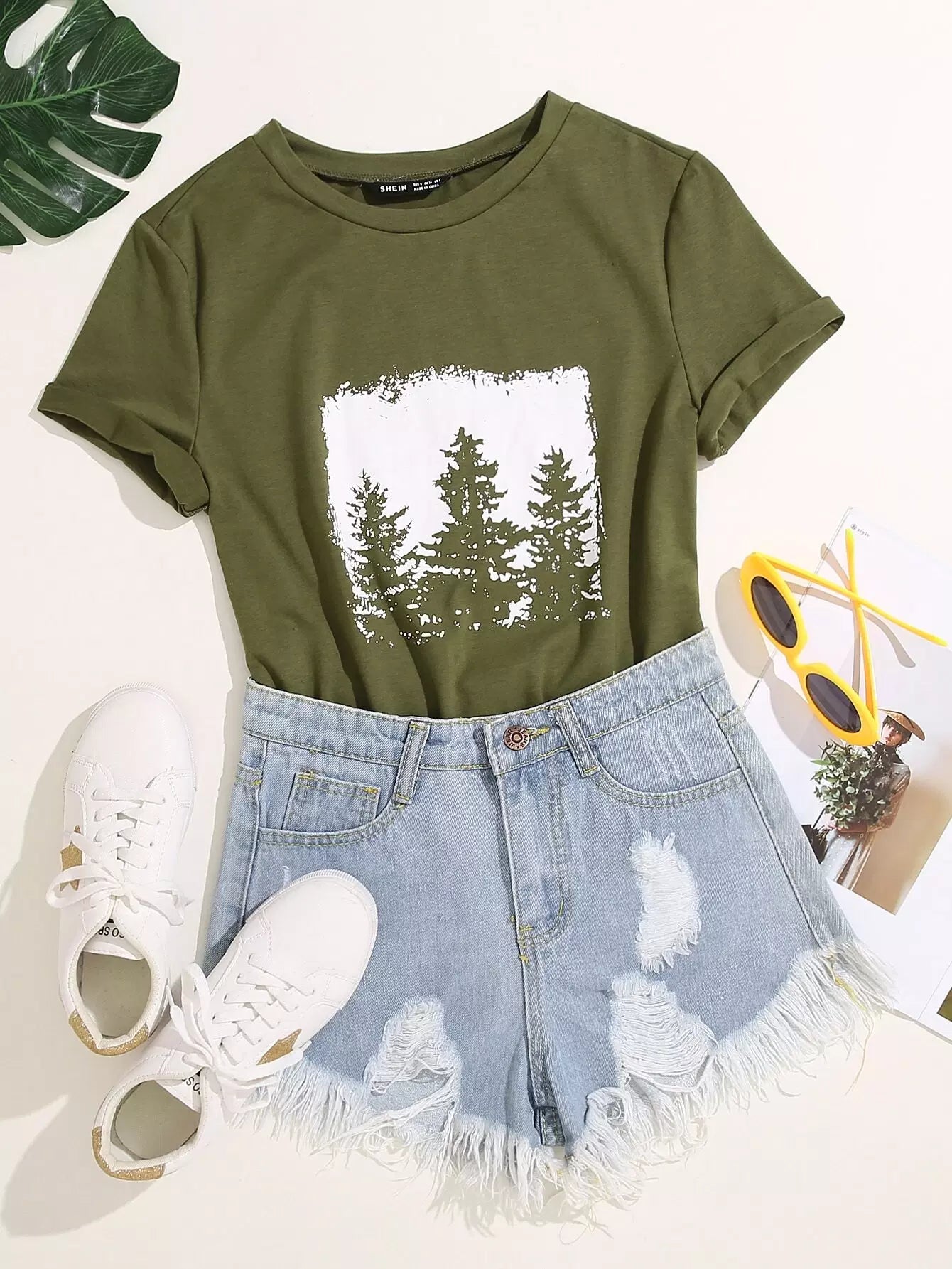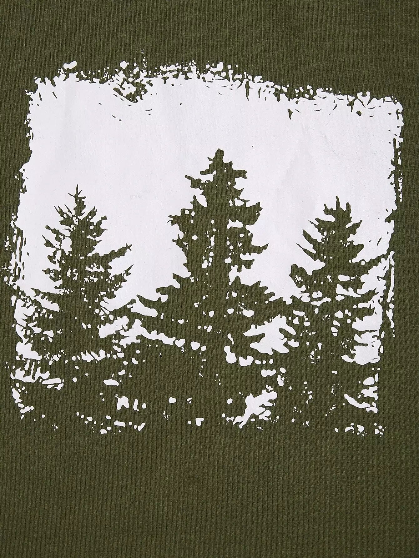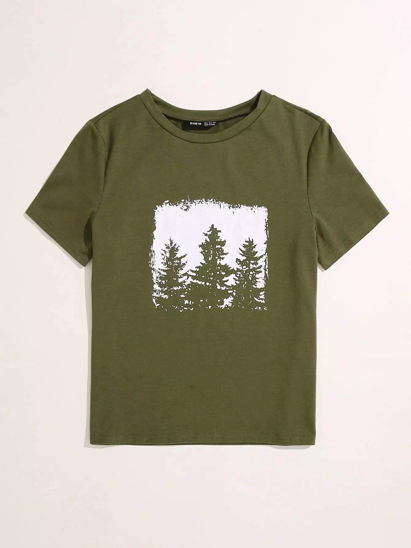 تي شيرت بأكمام قصيرة بطبعة شجرة