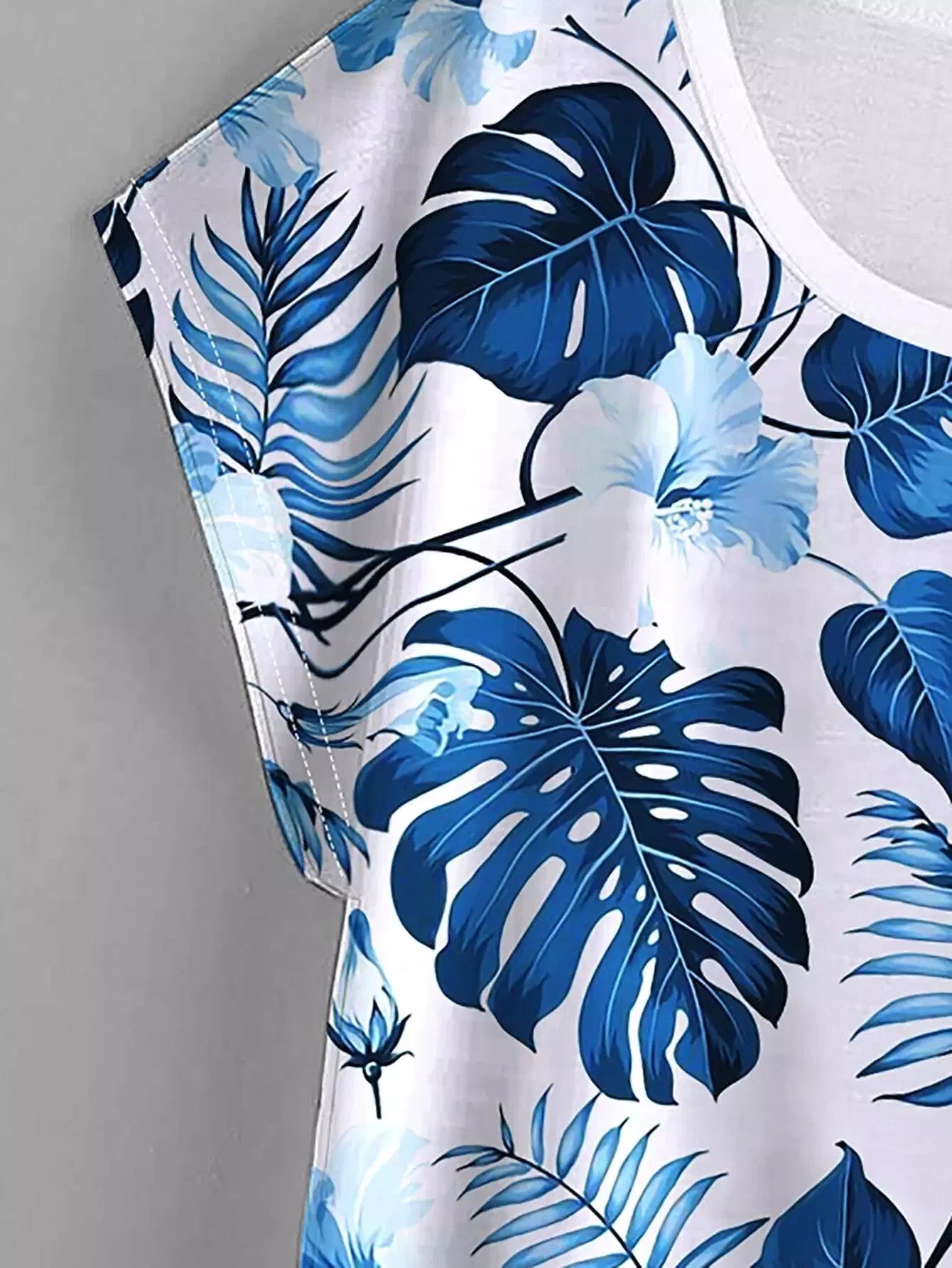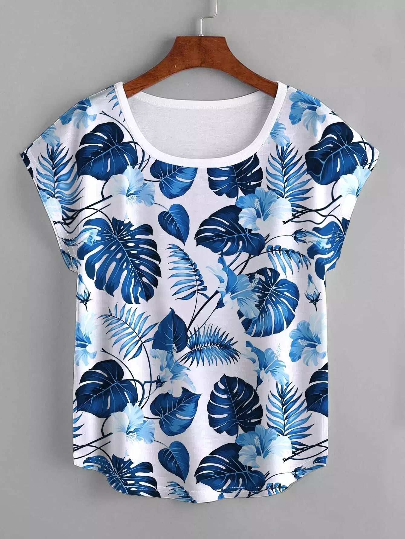 تي شيرت بأكمام بطبعة استوائية بأكمام باتوينغ