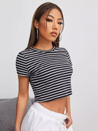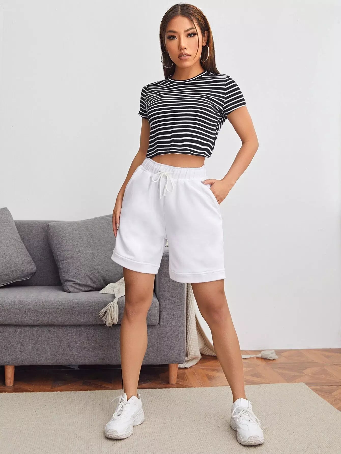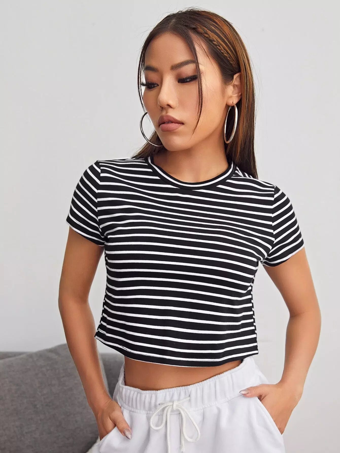 تي شيرت قصير مخطط بلونين مخطط بلونين