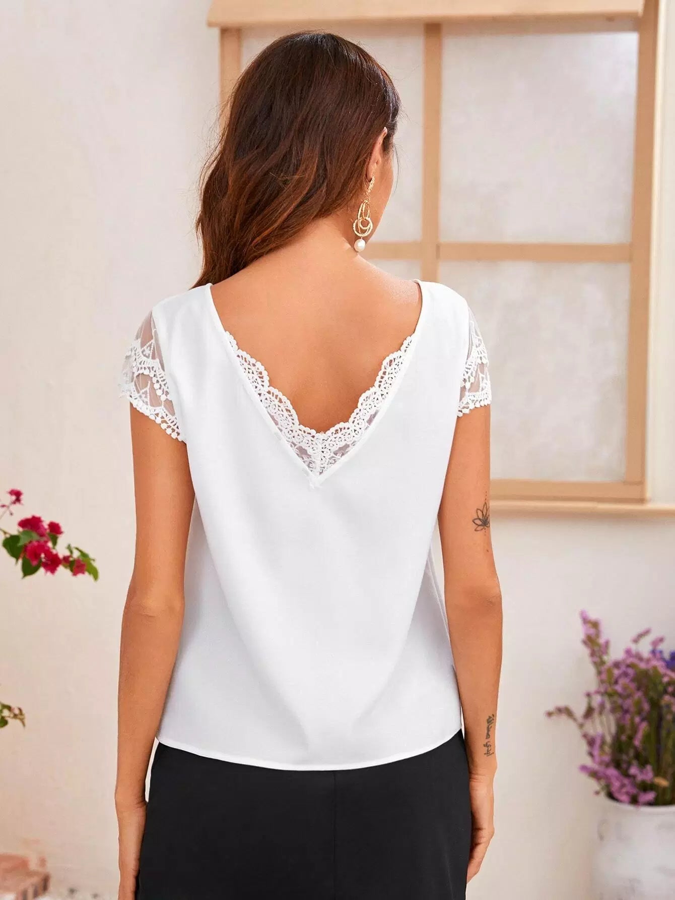 بلوزة مطرزة بتطريز شبكي على شكل حرف V من الخلف