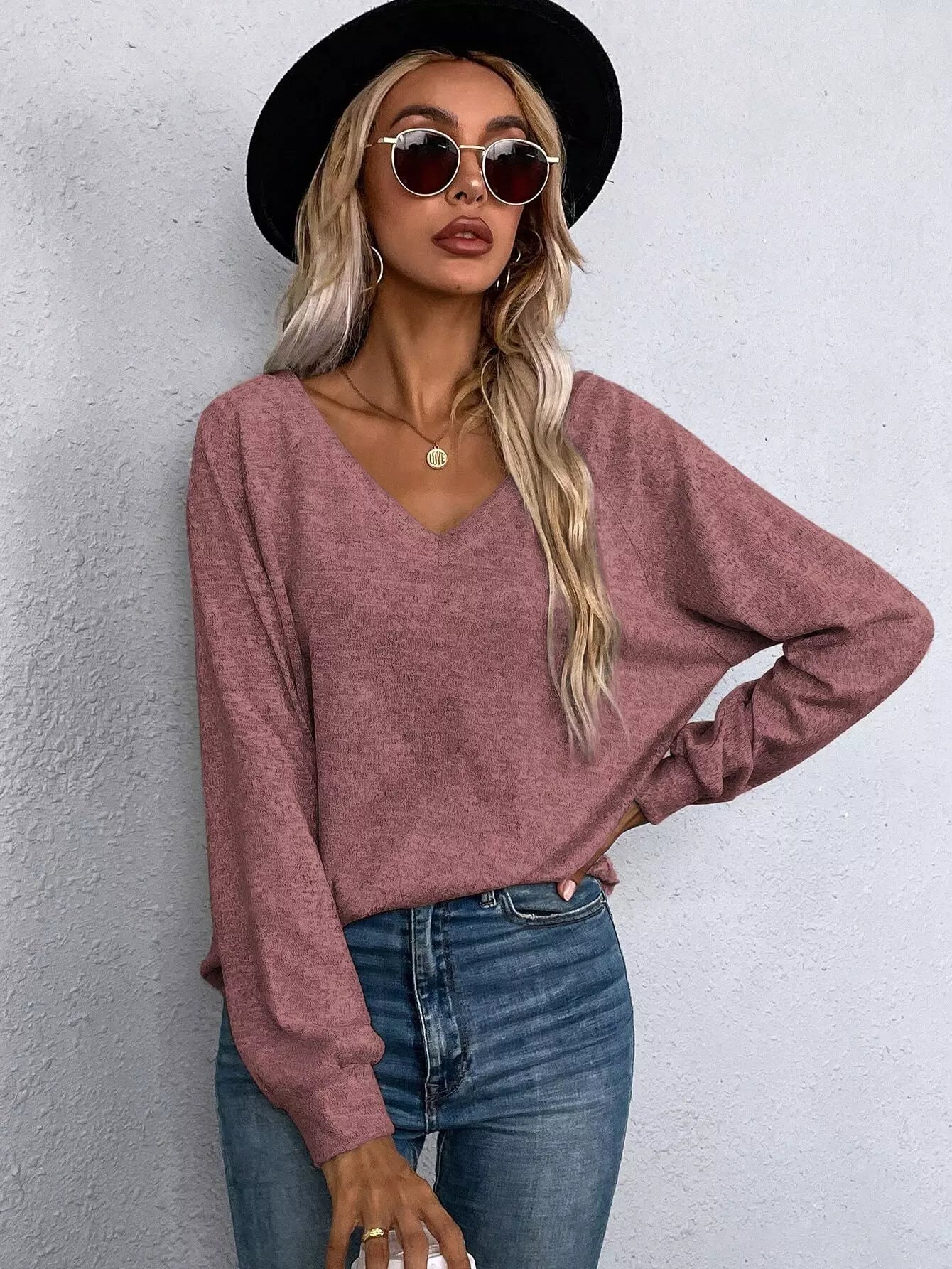 تي شيرت بأكمام راجلان برقبة على شكل V