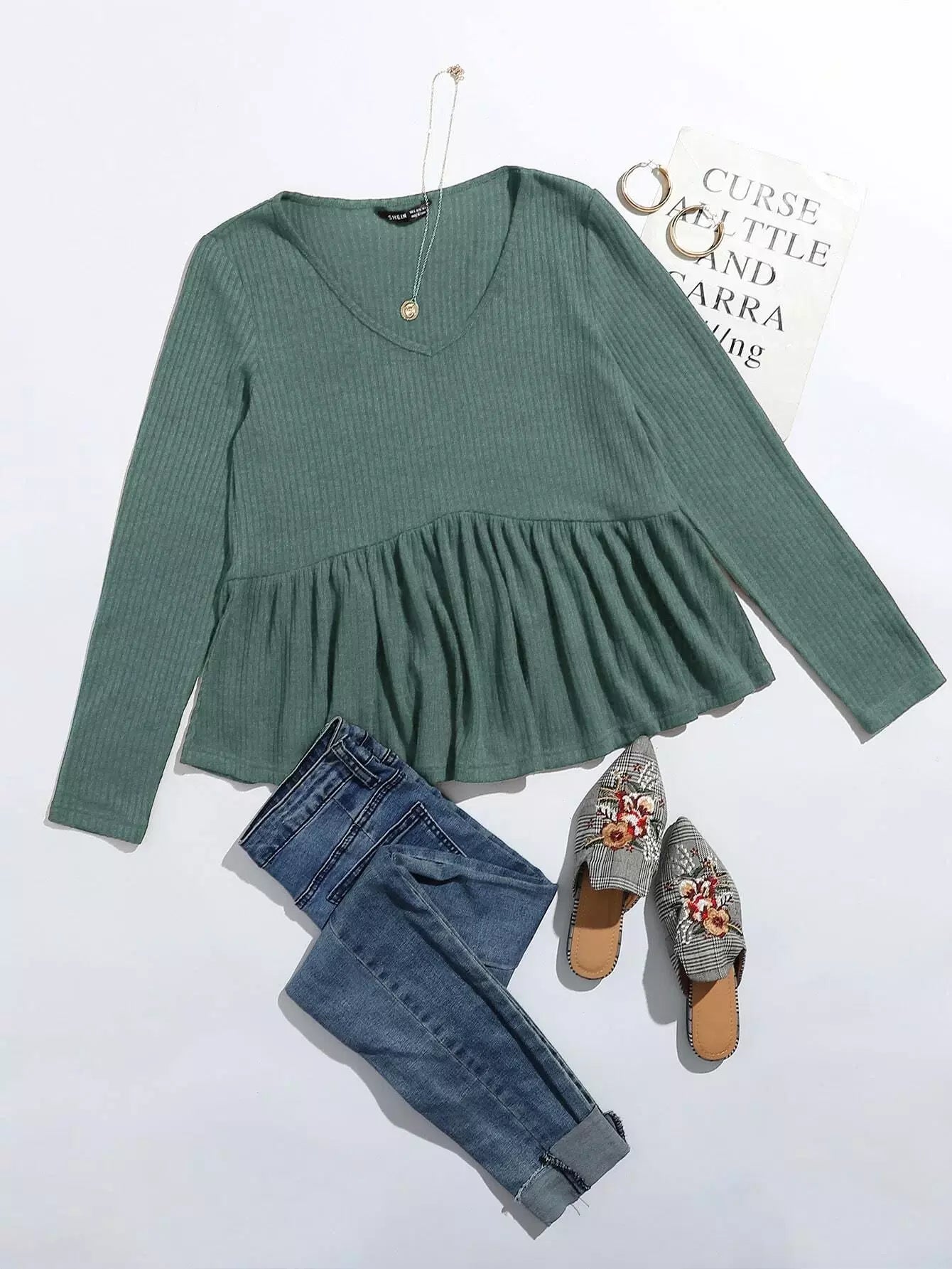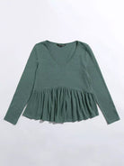 بلوزة بياقة على شكل V برقبة على شكل V سادة