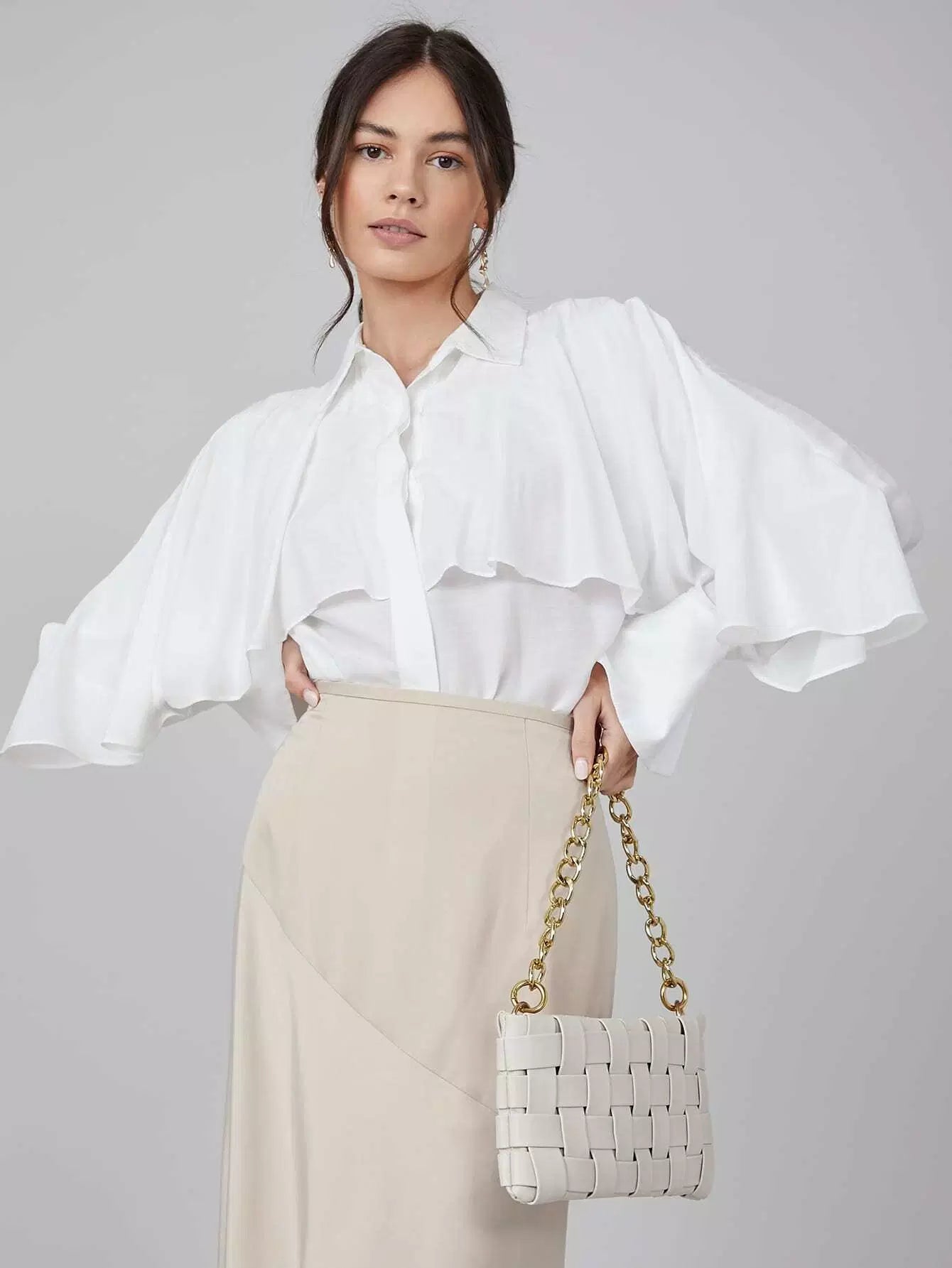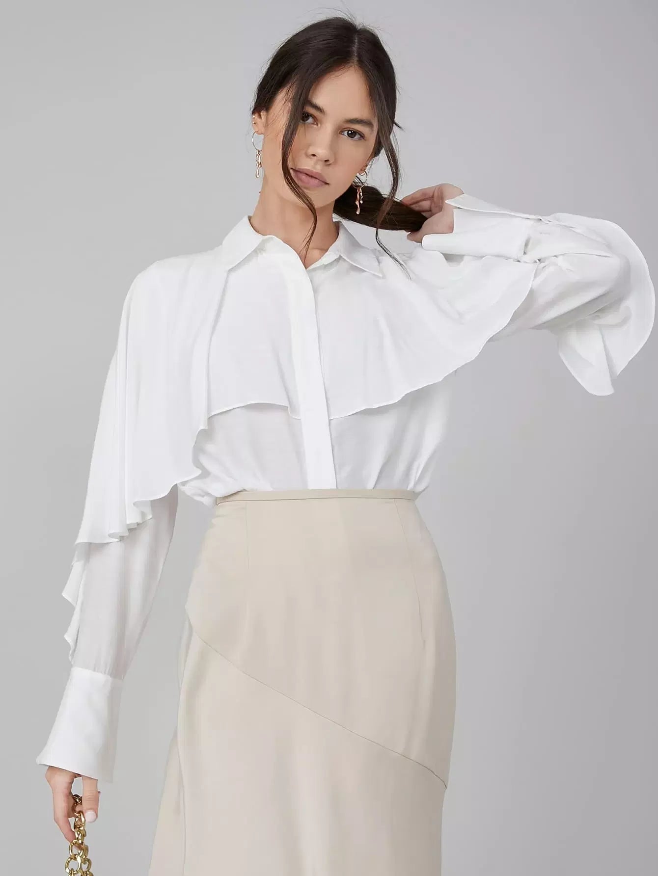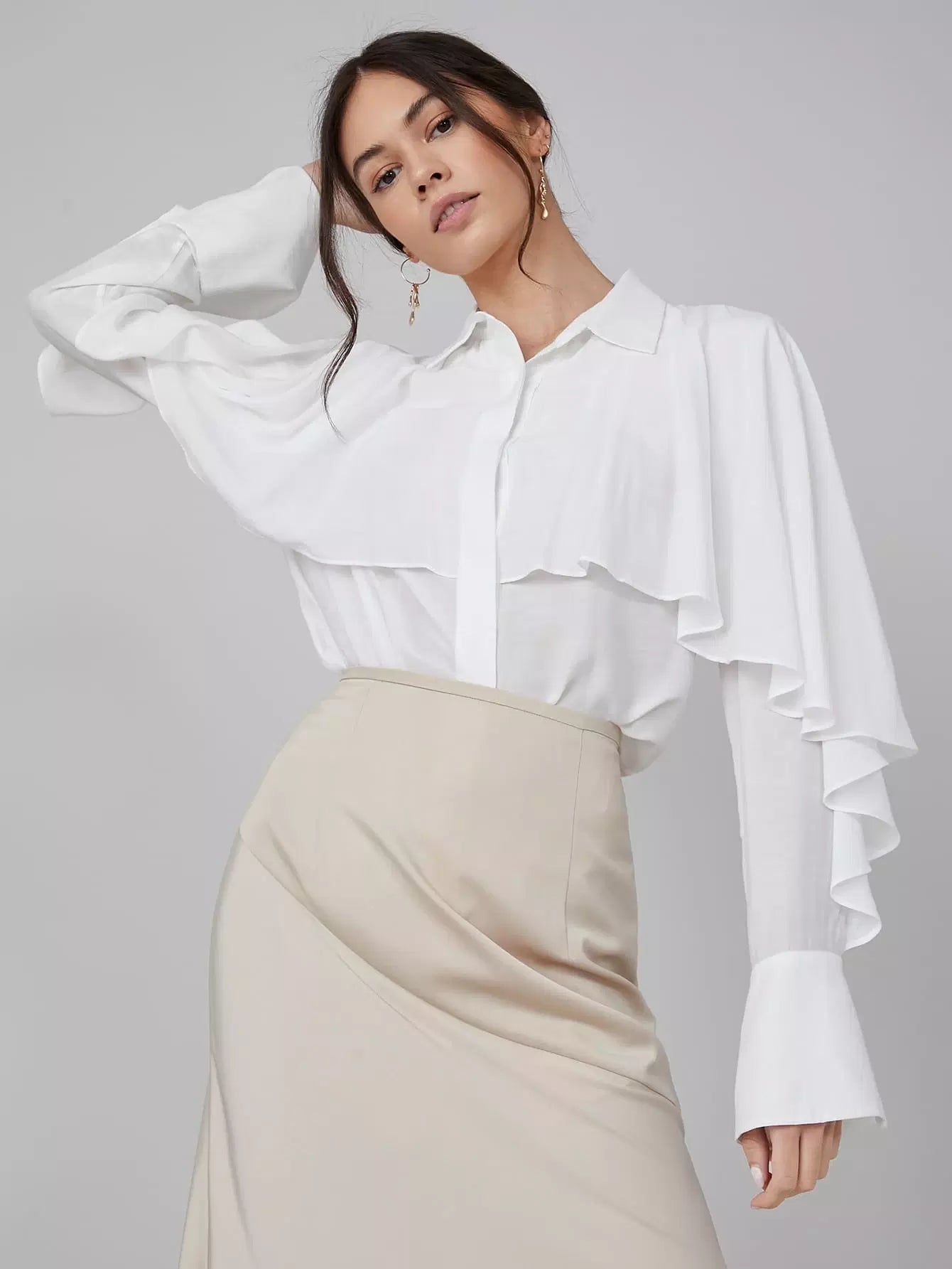 بلوزة طويلة مكشكشة من الفيسكوز