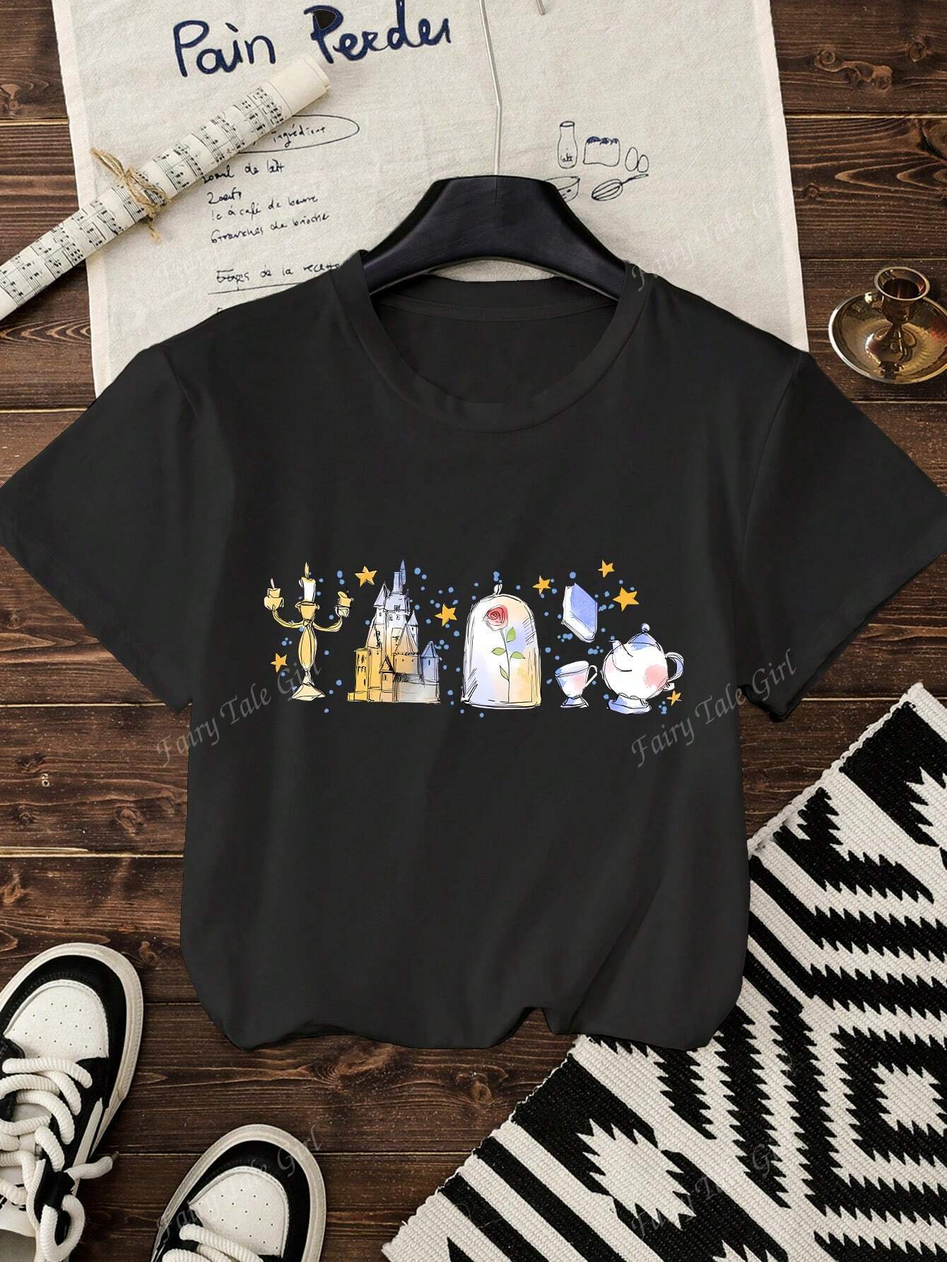 women Women's Summer Little Prince Rose Cartoon Pattern Print Casual Loose Simple Daily Round Neck Short-Sleeved T-Shirt Tops Summer Tops White Top Cute Tops Collaboration