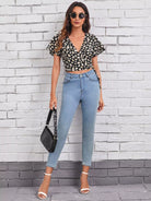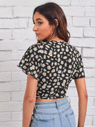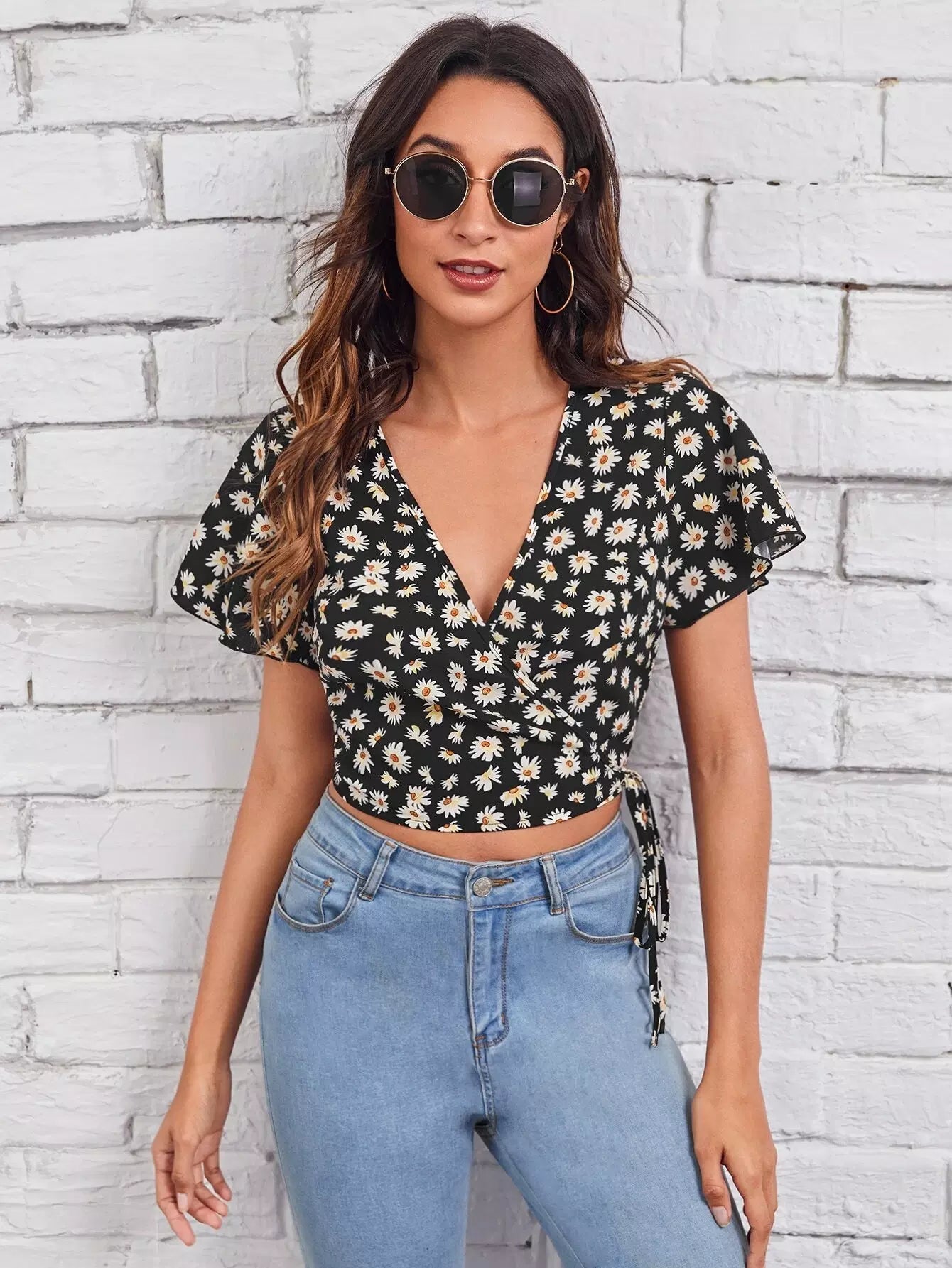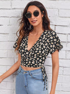 النساء - بلوزة زهور الأقحوان ملفوفة وأربطة جانبية