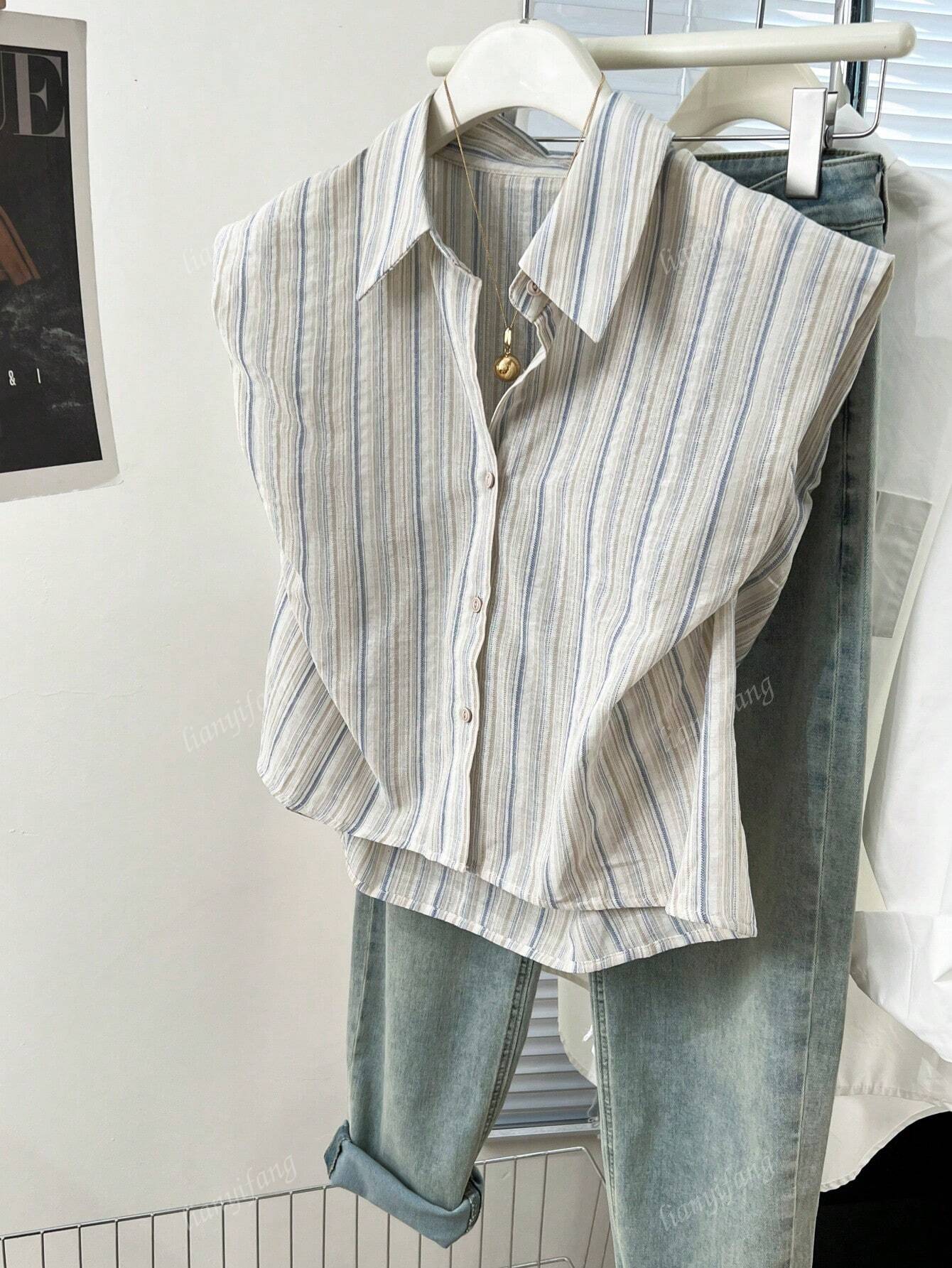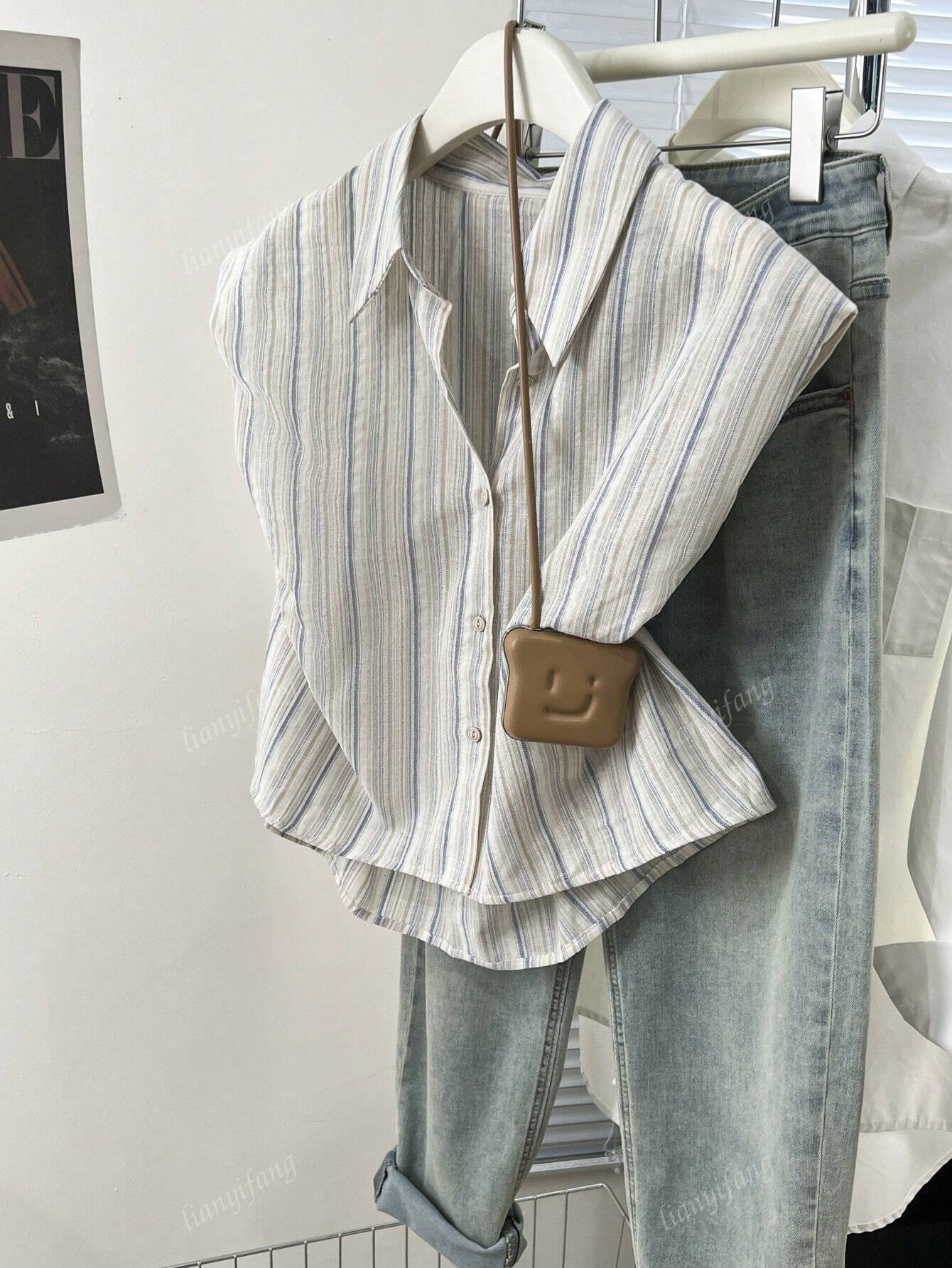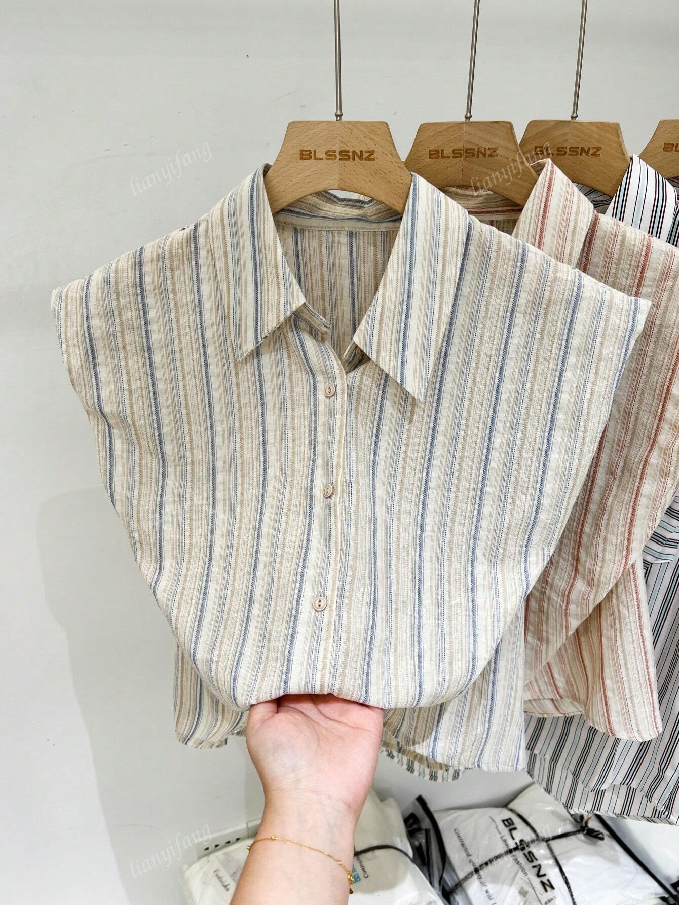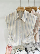 قميص نسائي كاجوال مخطط فضفاض بأكمام قصيرة من YUXIN، طراز صيفي جديد