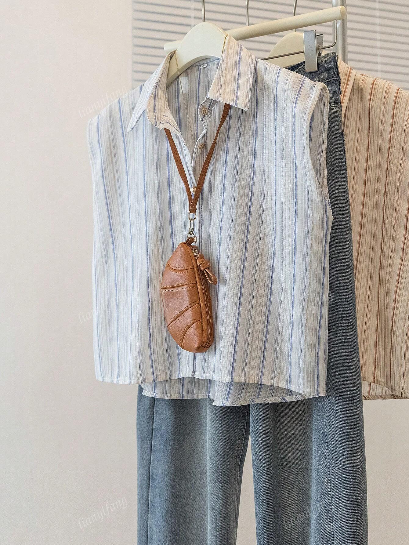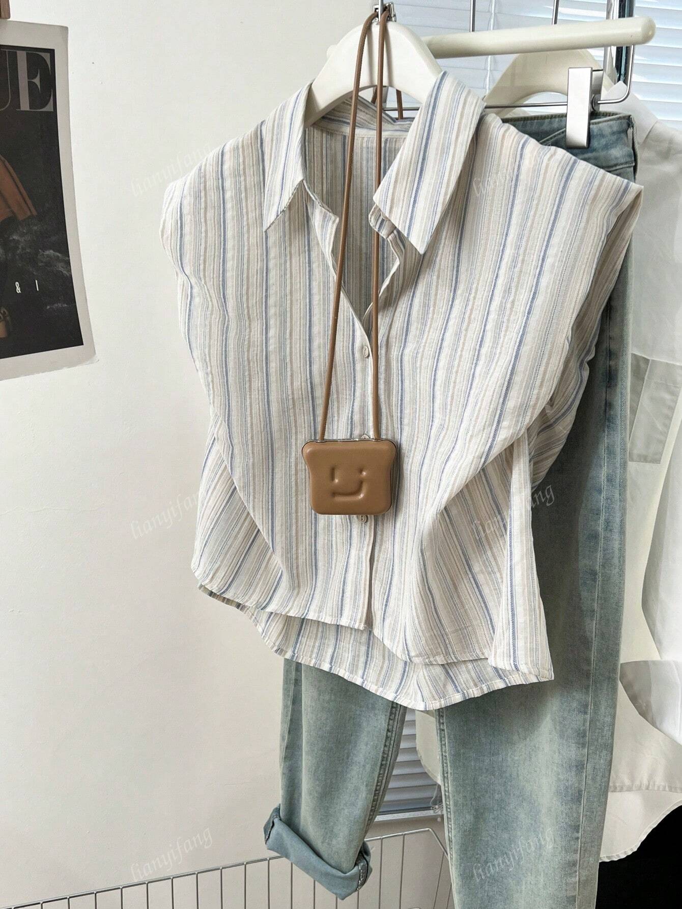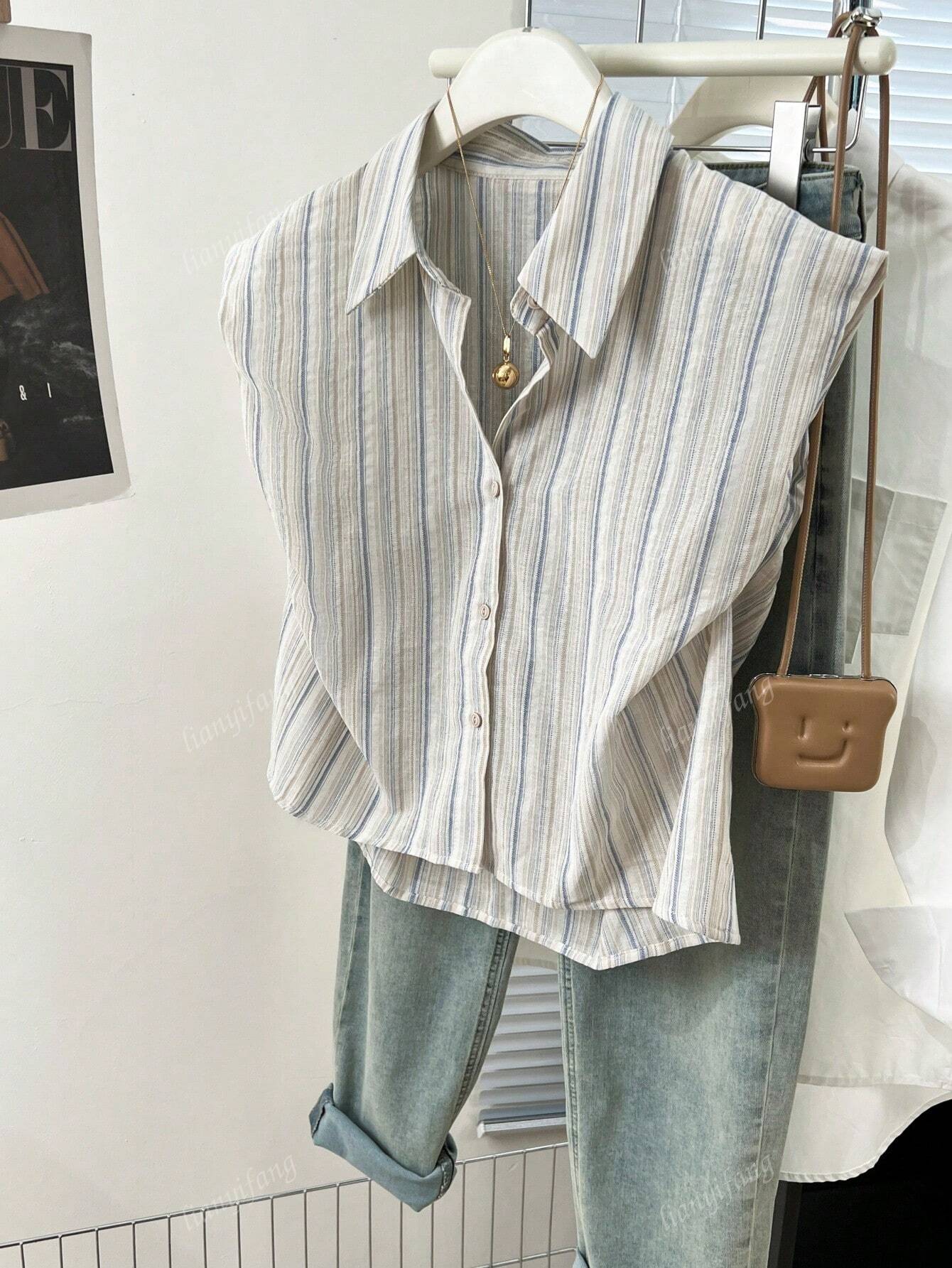 قميص نسائي كاجوال مخطط فضفاض بأكمام قصيرة من YUXIN، طراز صيفي جديد