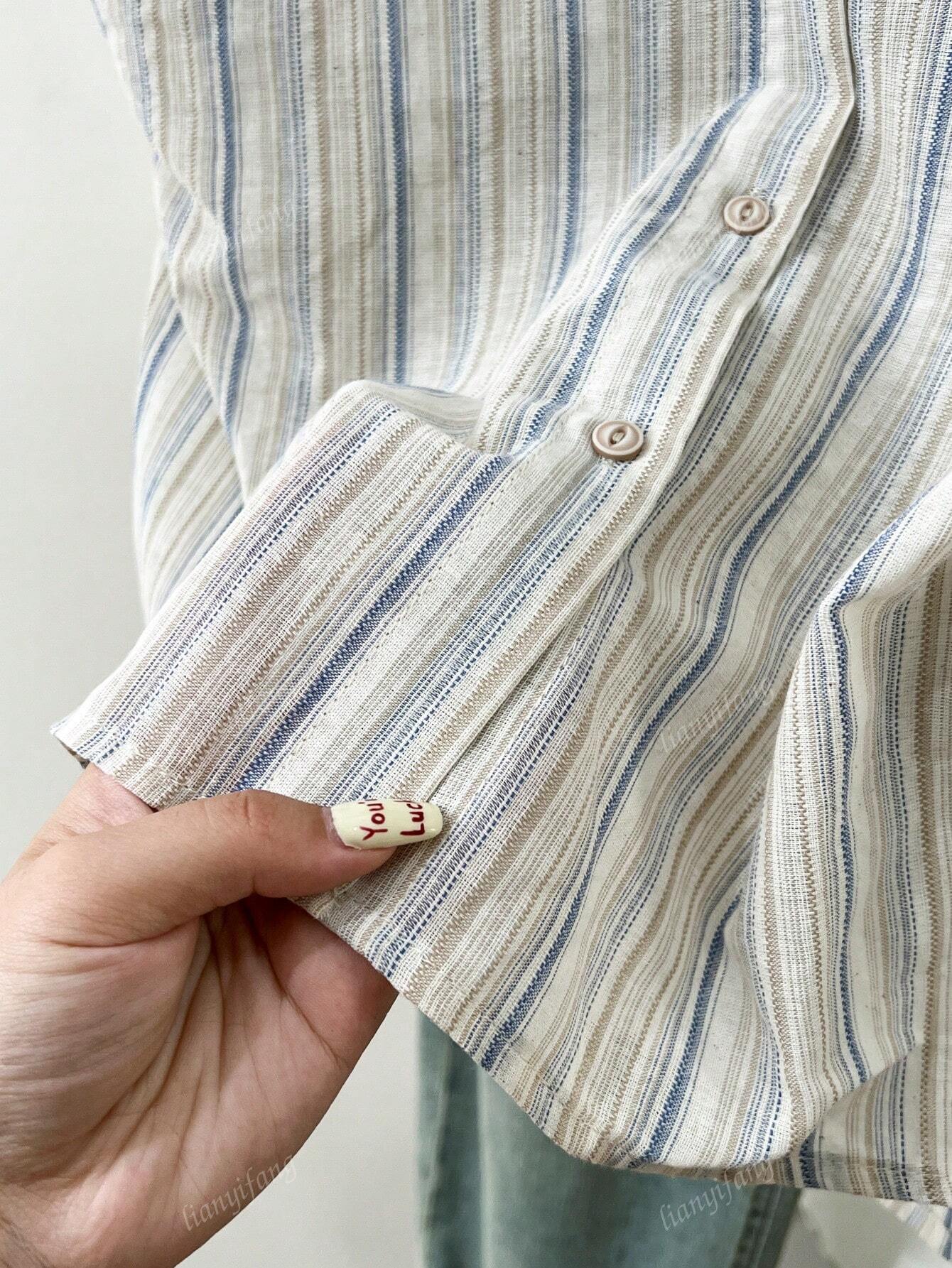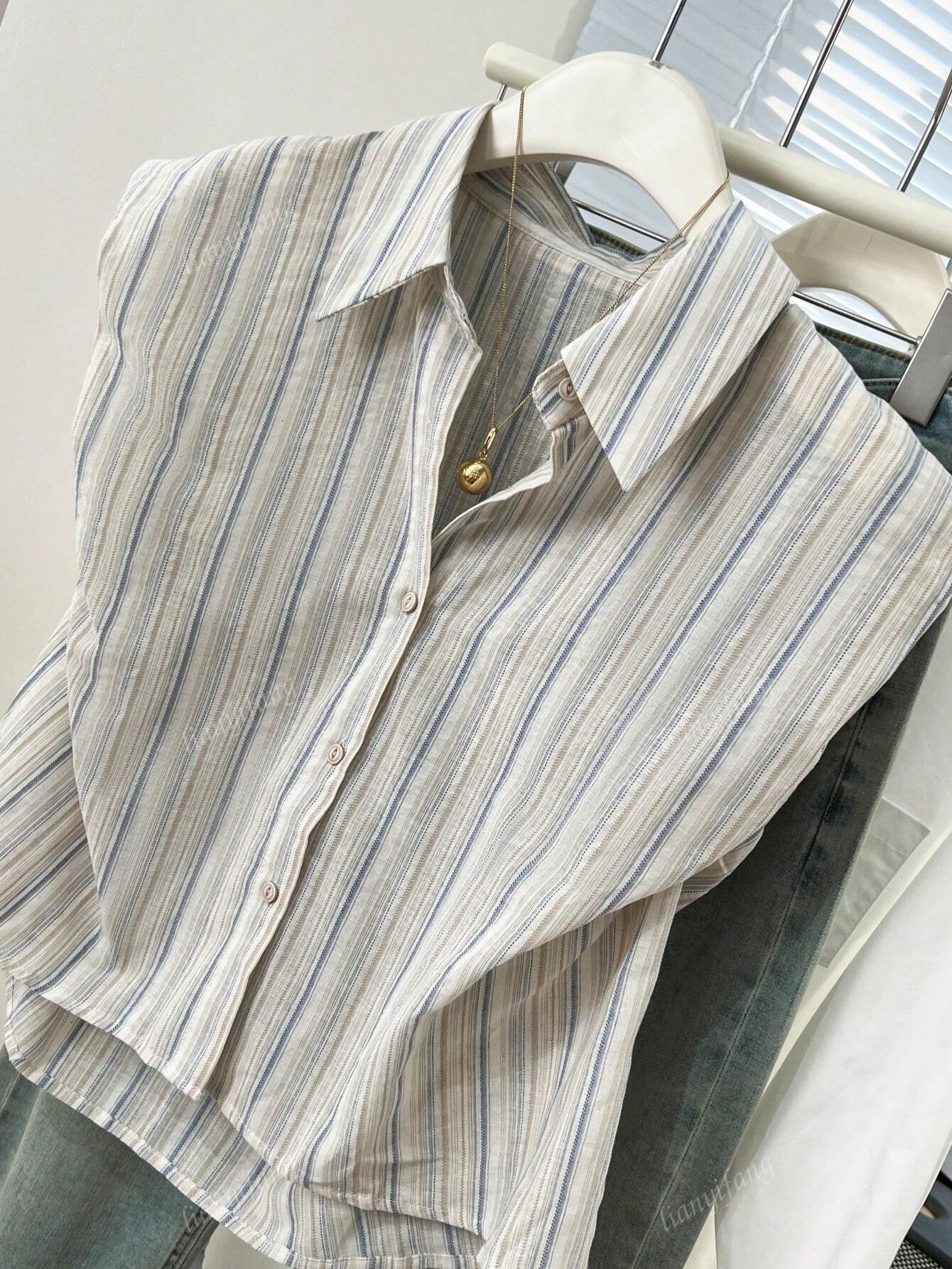 YUXIN Women's Casual Striped Loose Fit Short Sleeve Shirt, New Summer Style