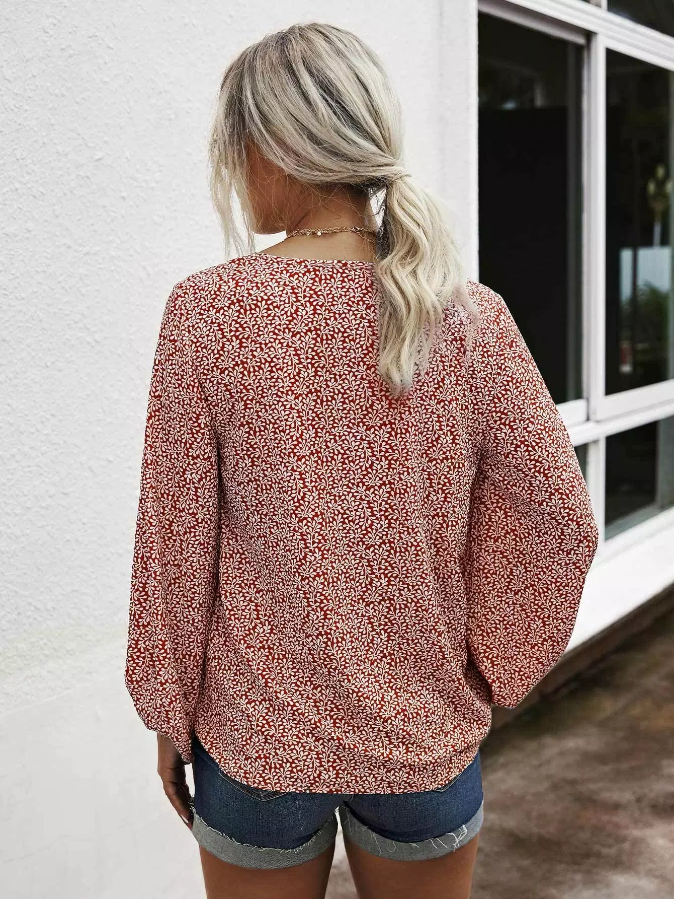 بلوزة بياقة على شكل V مطبوع عليها بالكامل