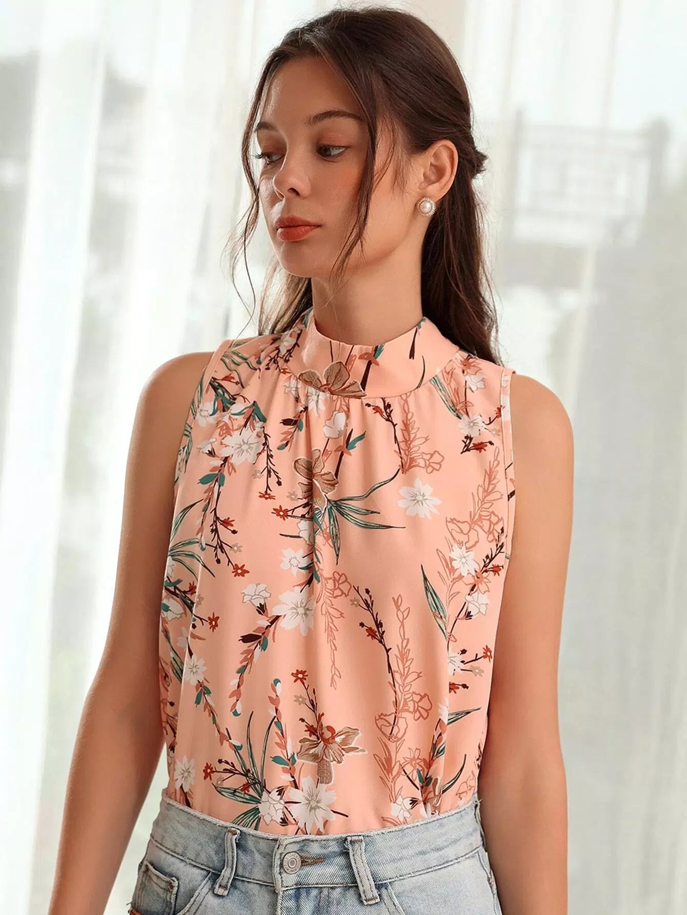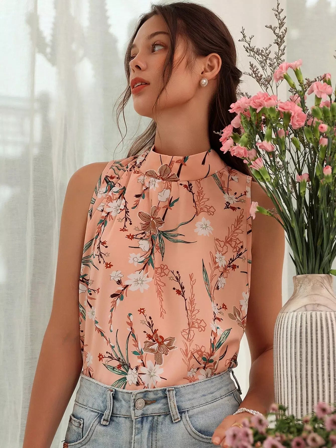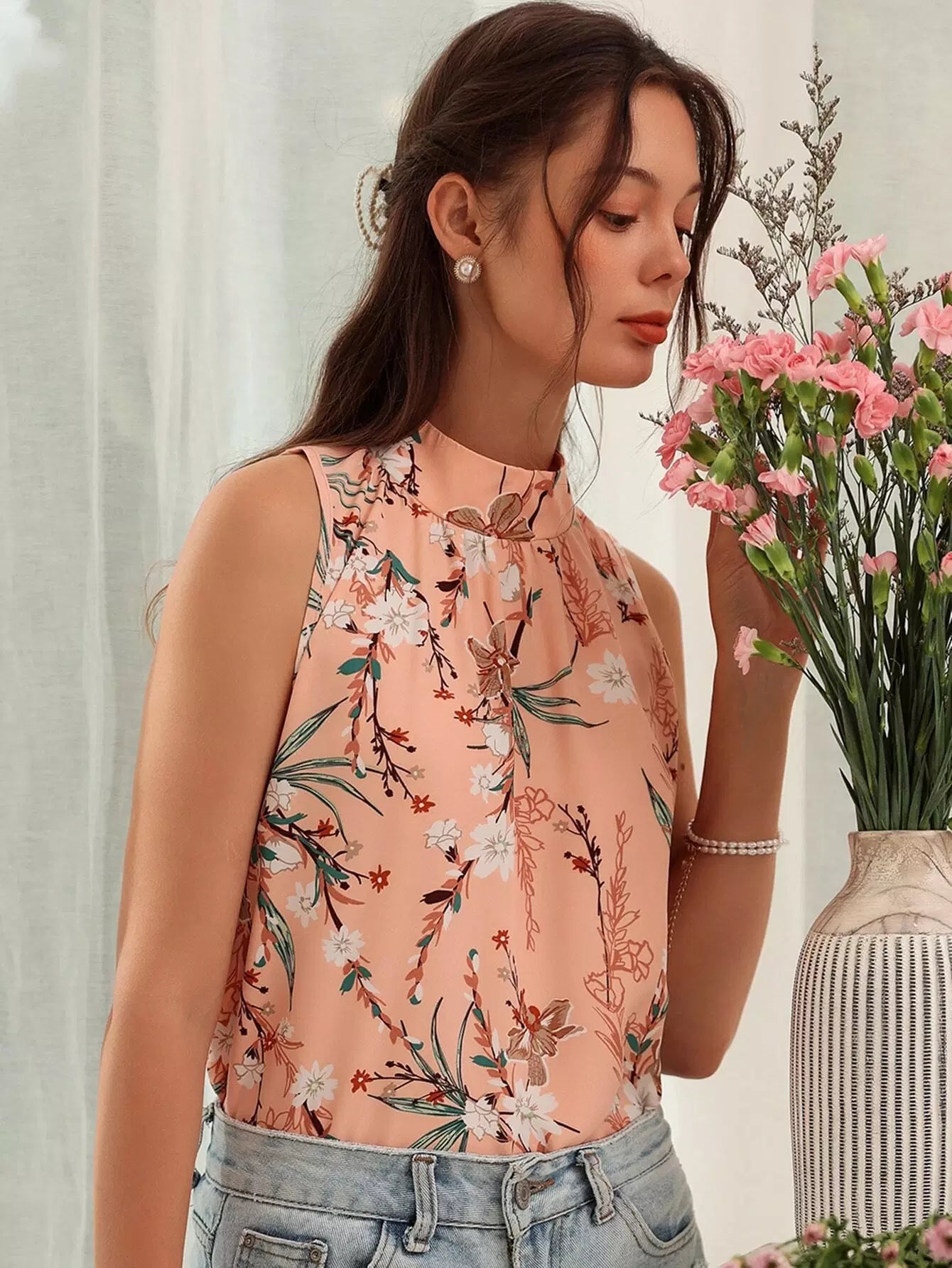 بلوزة مفتوحة من الخلف بربطة عنق زهرية