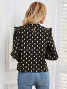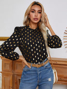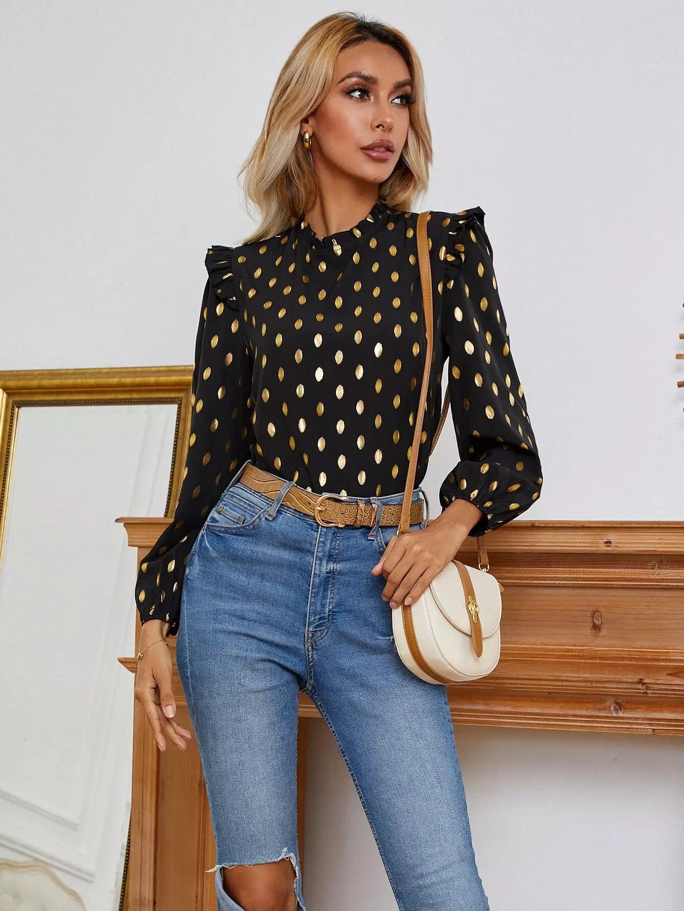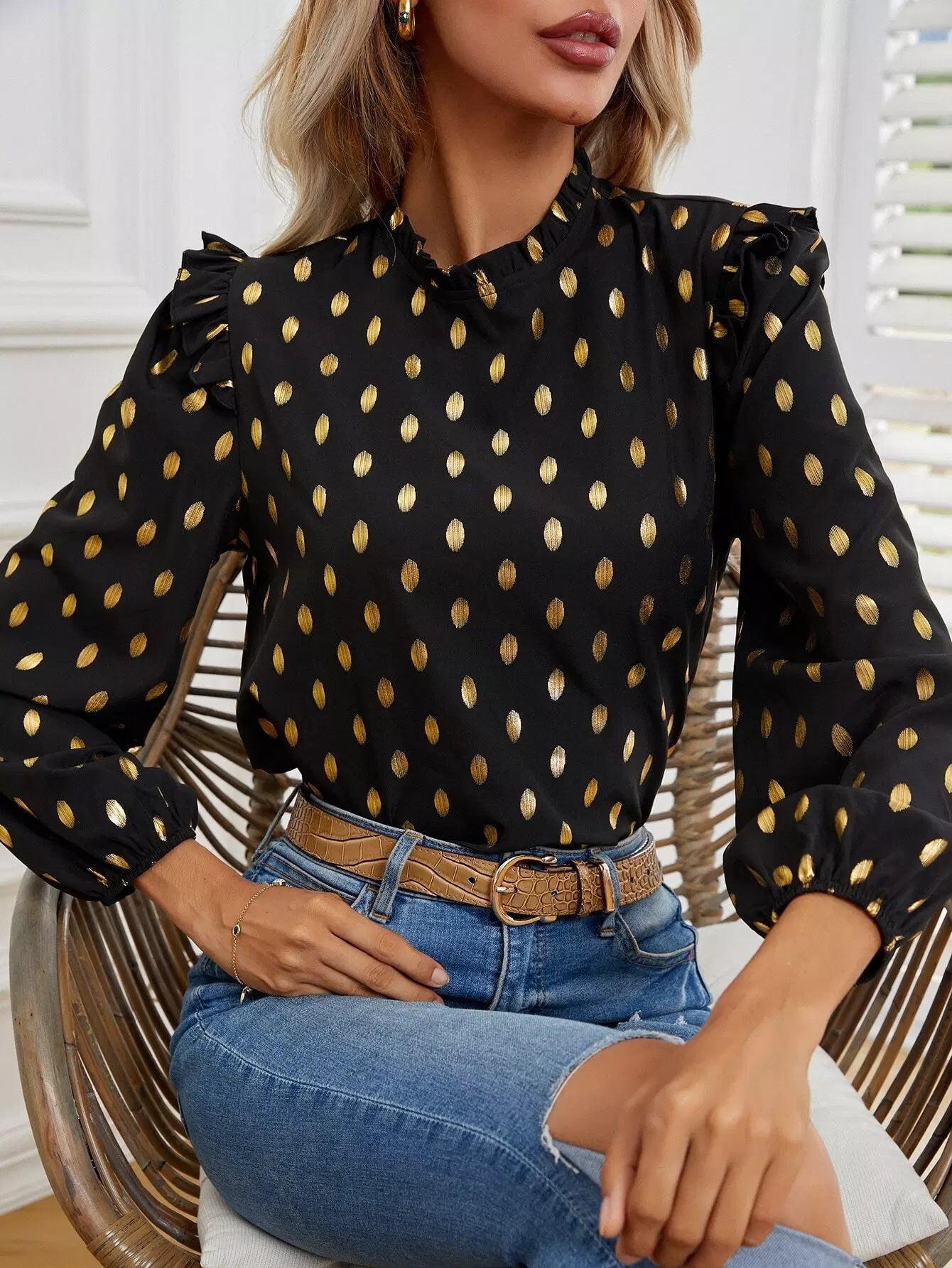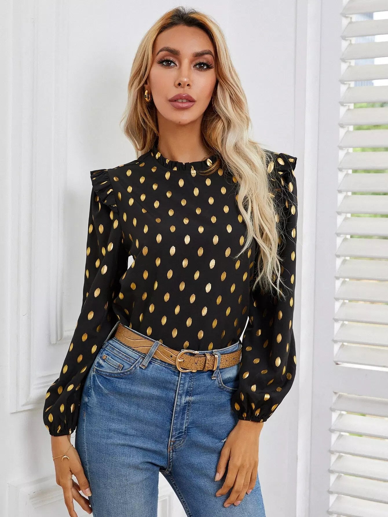 بلوزة بأكمام منفوشة بنقشة ذهبية منقوشة بالذهب بالكامل