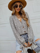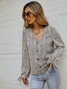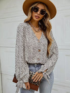 بلوزة مزينة بطبعات على شكل عقدة كُمّ فوق الكُمّ