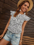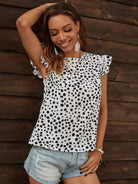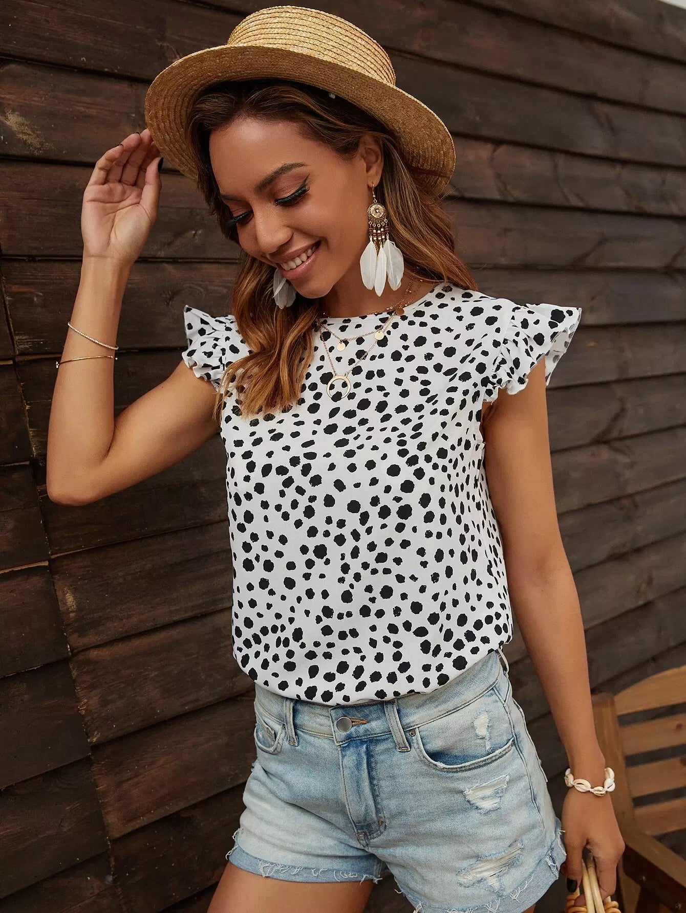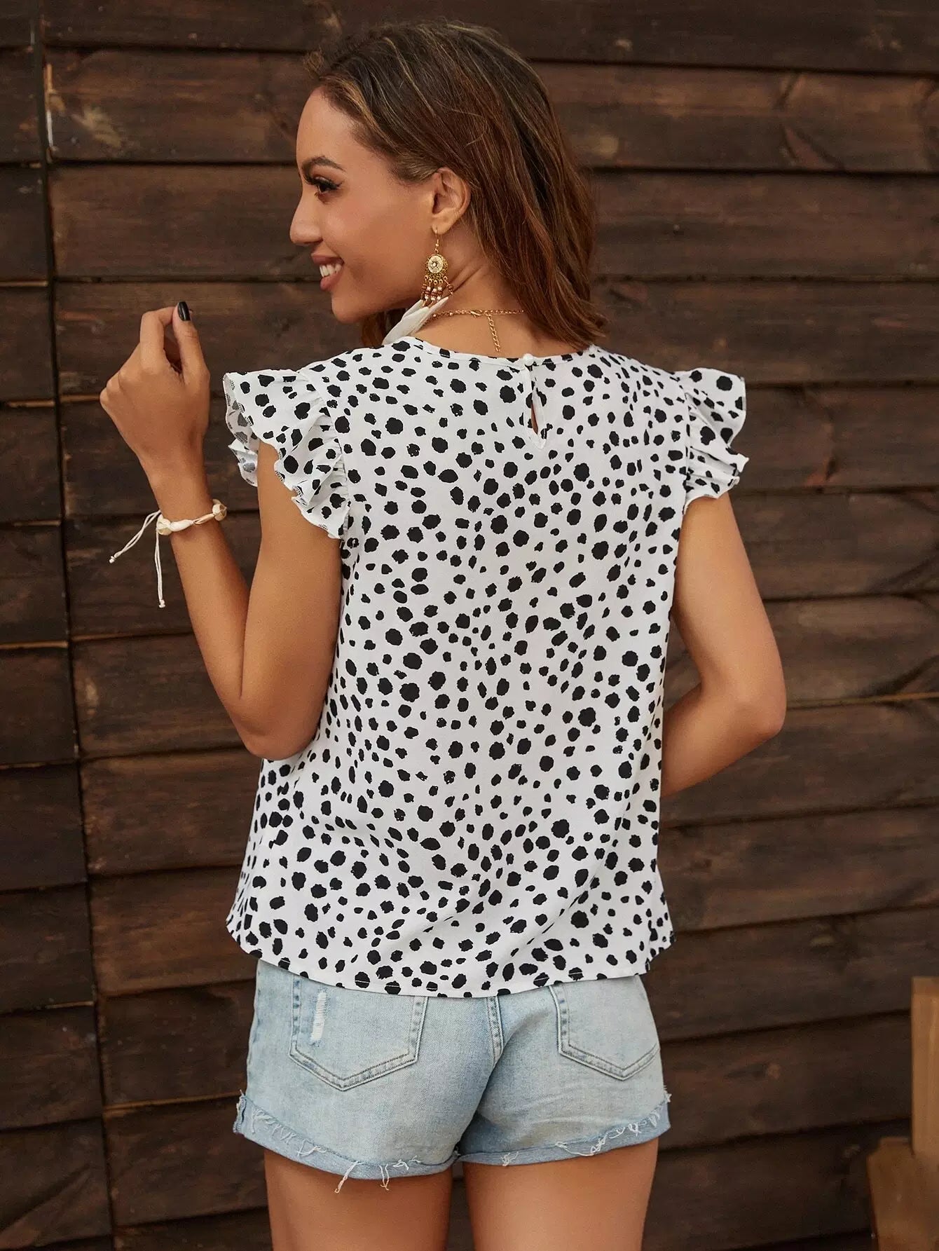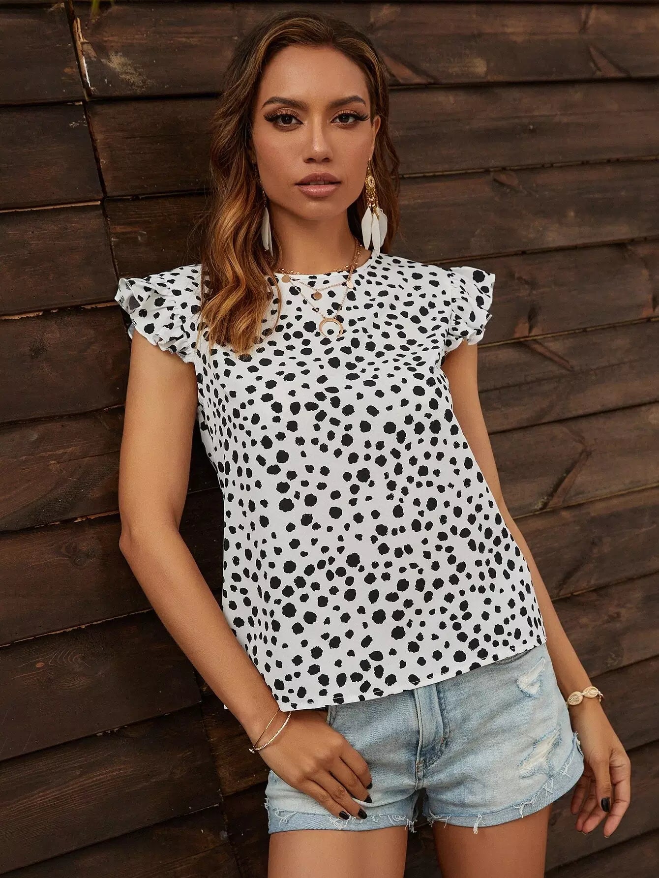 بلوزة بأكمام كشكش مطبوع عليها بالكامل