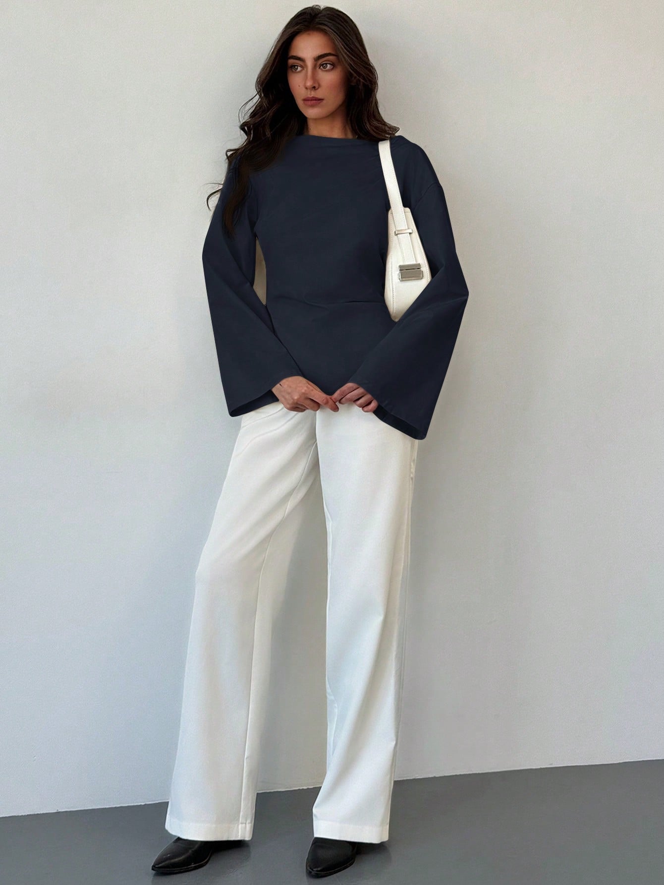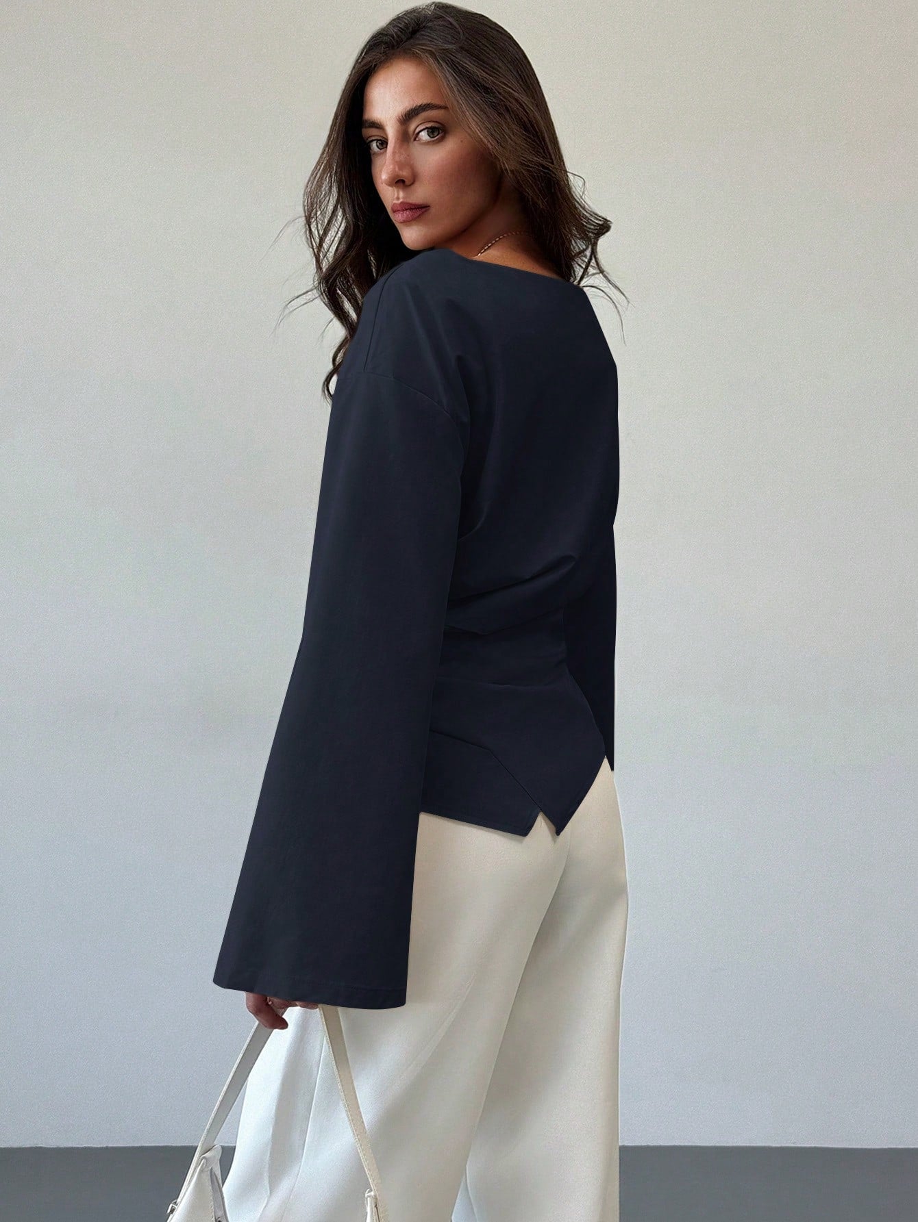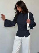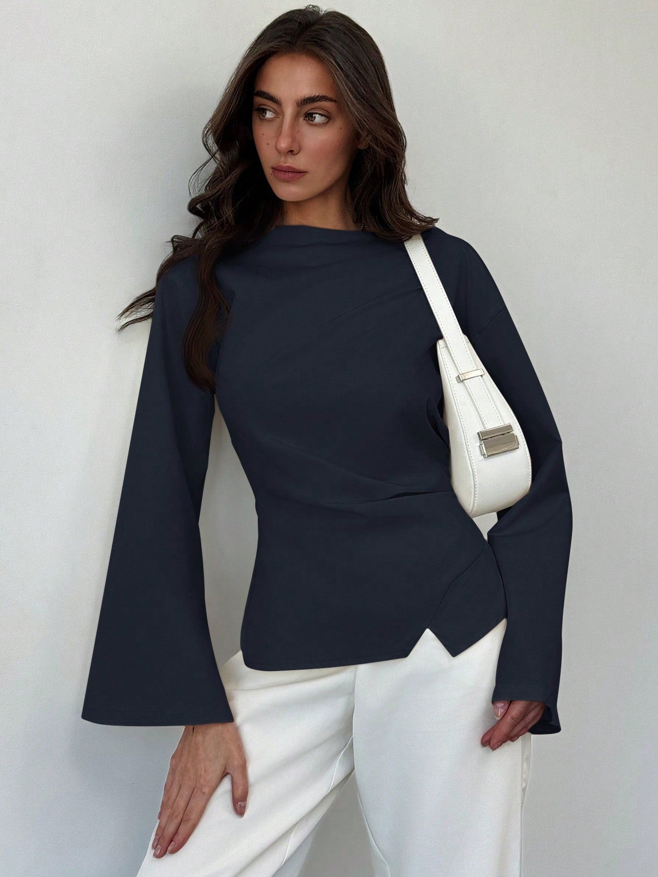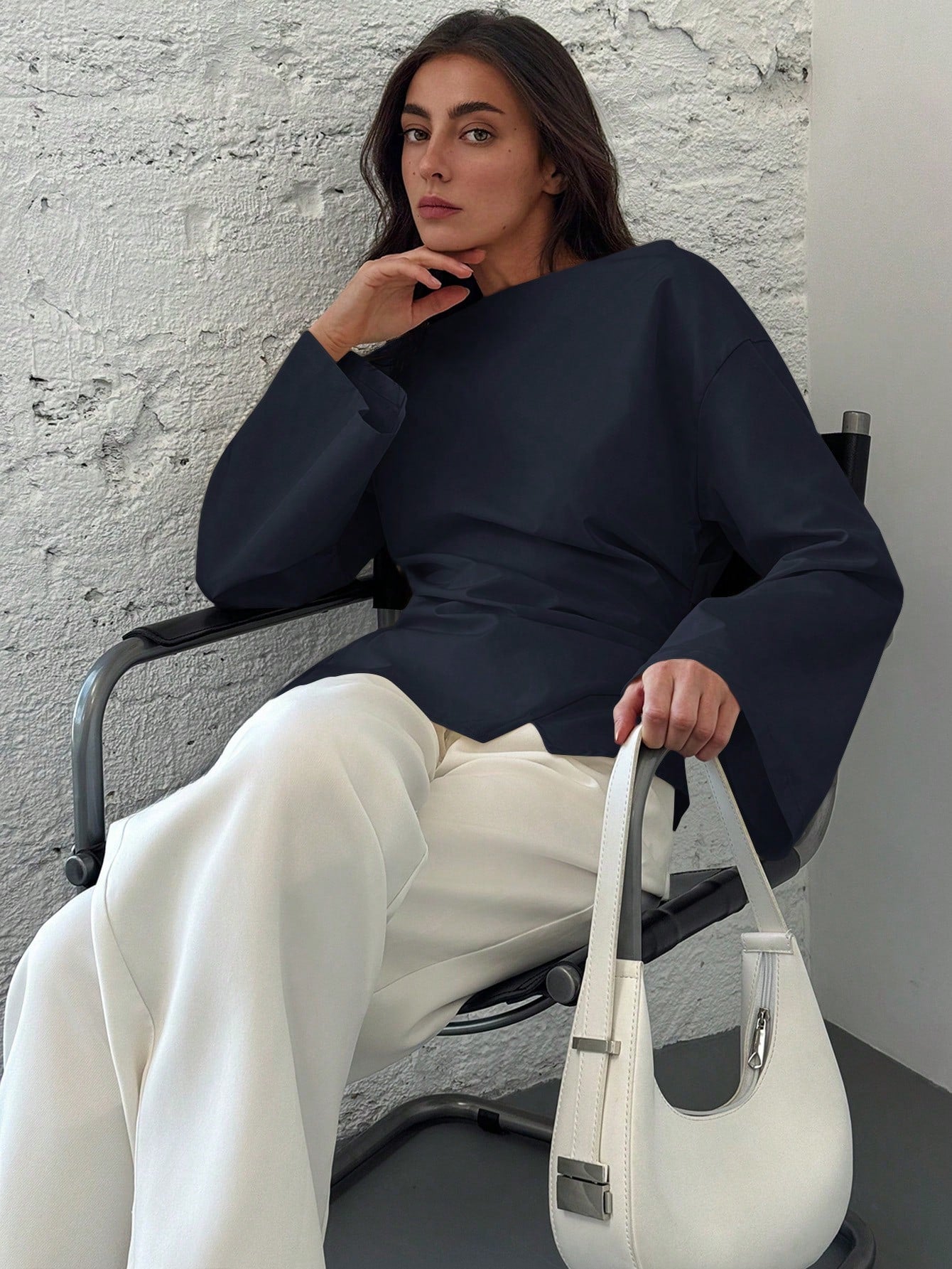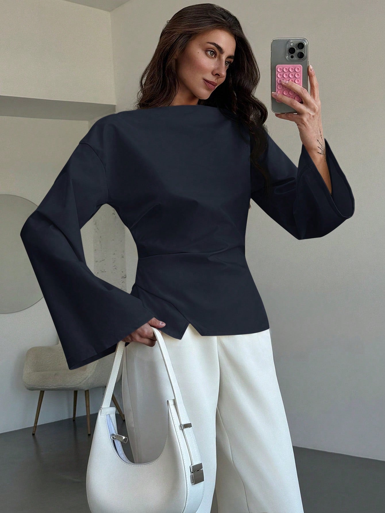 بلوزة نسائية قصيرة من Aloruh، بفتحة رقبة على شكل قارب، وأكمام منتفخة، ومناسبة للمكتب، بلون المشمش