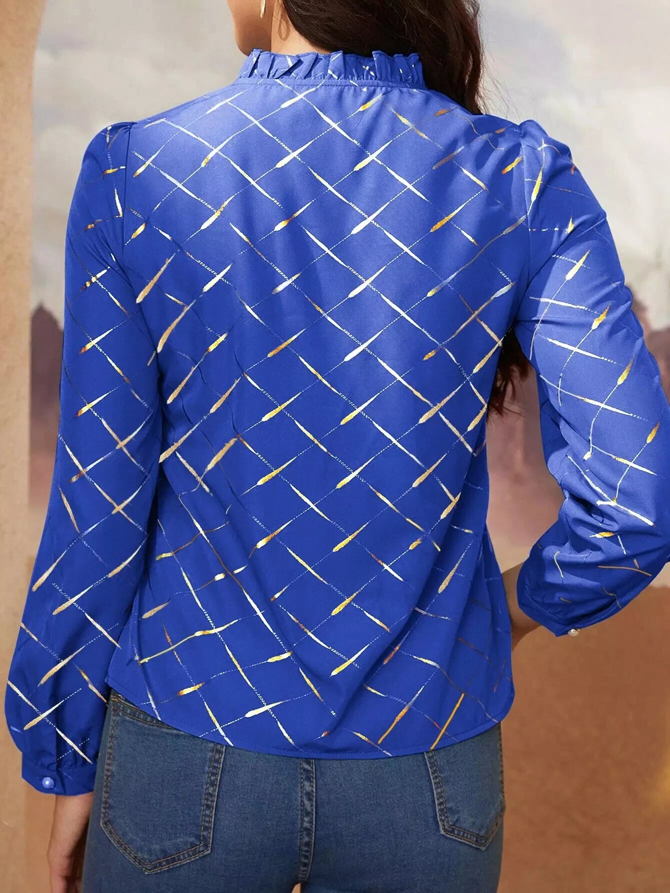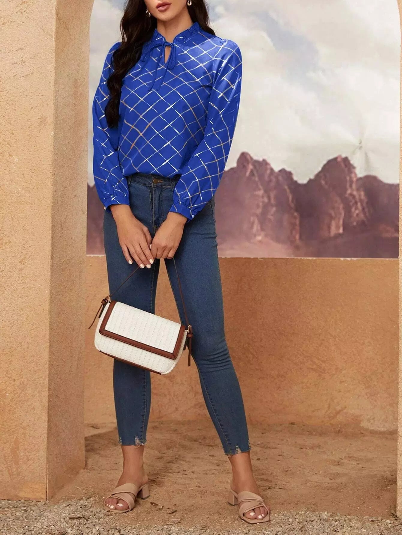 بلوزة بأكمام منفوخة بطبعة أرجيل برقبة على شكل ربطة عنق منفوخة